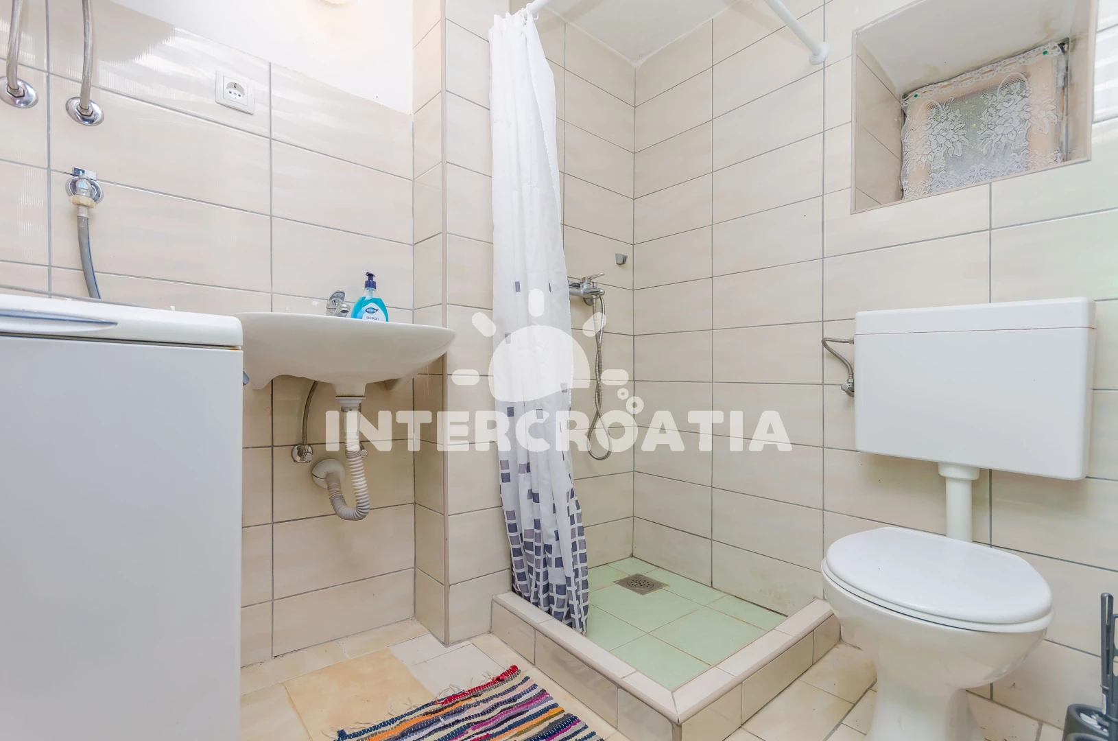Domek se nachází 5000 m od moře a pláže. Pláž je skalnatá, oblázková, větší kamení a betonové desky. U objektu je k dispozici společná zahrada s posezením a grilem. Parkování je 150m - 300 m od domu.