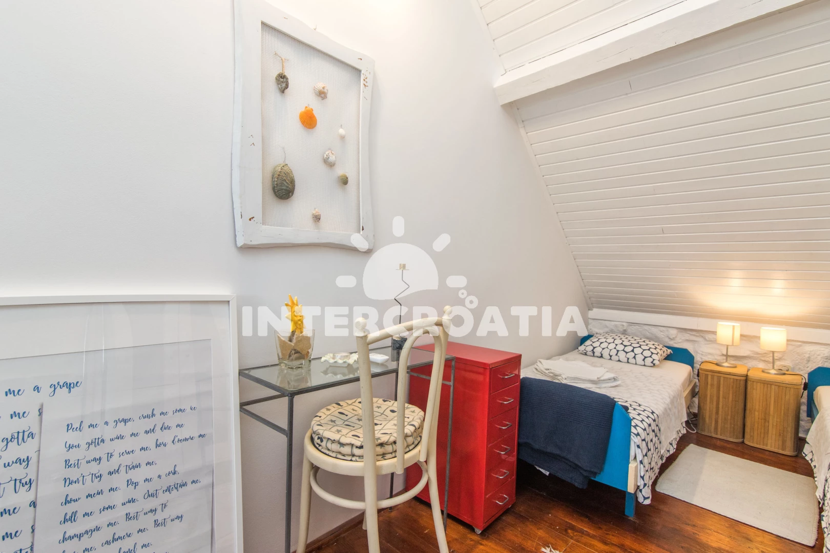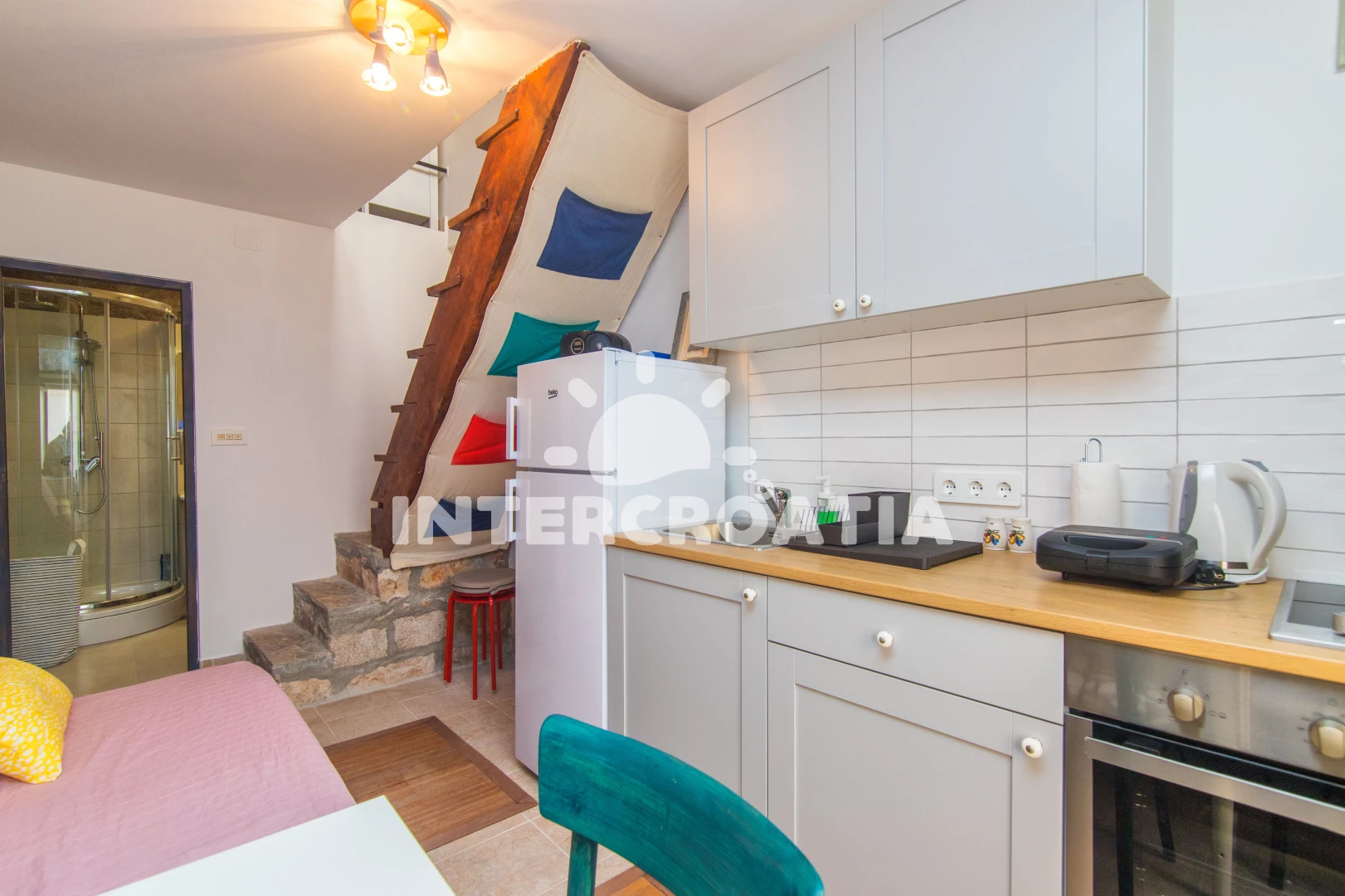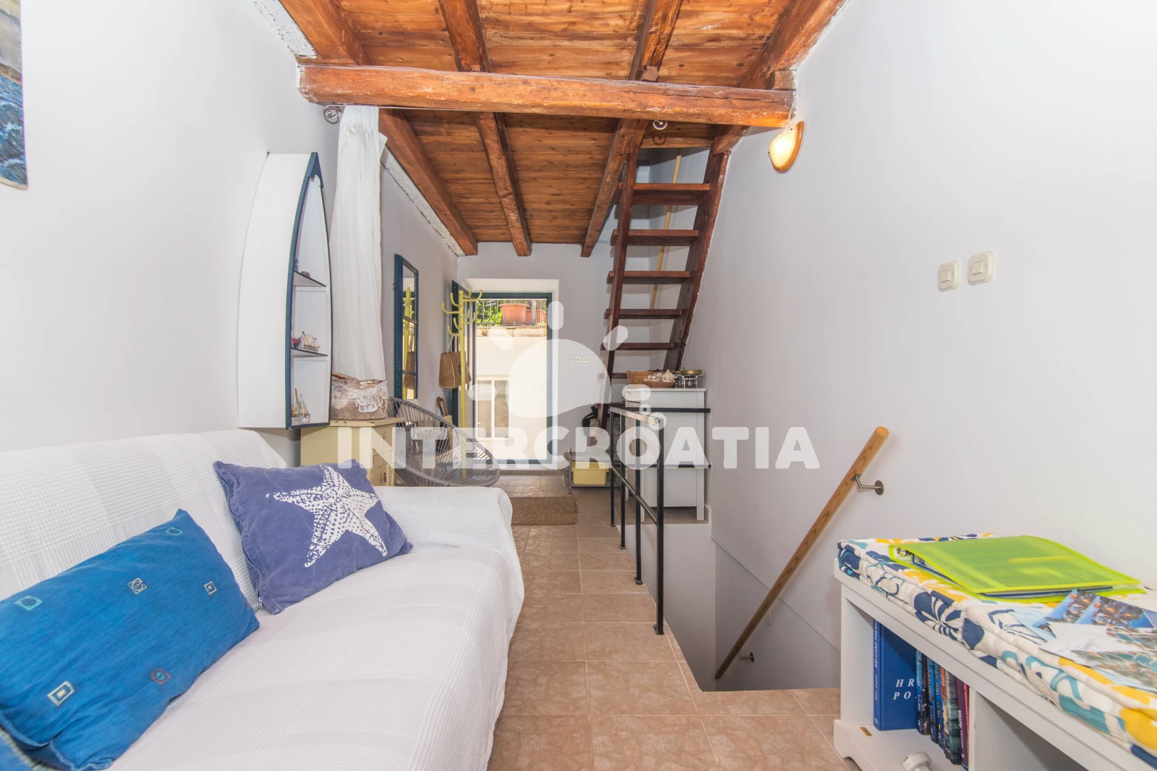Kućica je bila divno mjesto za ljetovanje, odmah blizu rive ali nekako okrenuta tako da nije bilo glasno. U njoj je bilo sve što nam je trebalo a i više od toga, plus uređena je preslatko i vidi se da se pazilo na svaki detalj. Vanjska kuhinja i dvije terase zaklonjene od pogleda su nam bile glavni benefit, puno smo uživali vani i to nam je bilo najbitnije. Sve u svemu preporuke svima! - Nije nužno negativno nego više generalna napomena, spavaća soba je u potkrovlju pa se trebalo često spavati sa klimom jer se inače dizala sparina gore. Ništa prestrašno ali za nekog tko ne može spavati u sobi gdje radi klima možda nešto znači. Bio je i ventilator na raspolaganju što također može pomoći.