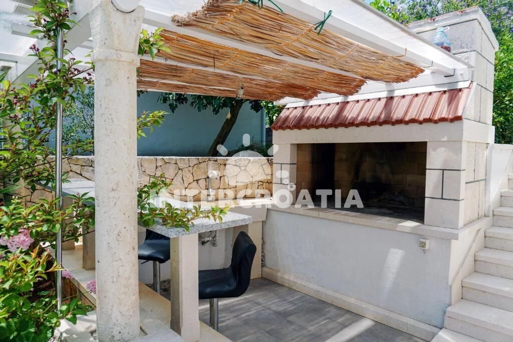 Vzdálenosti: Moře 10 m, pláž 1 km (oblázky), restaurace 200 m, bar 500 m, potápění 500 m, půjčovna kol 900 m, centrum 1 km, muzeum 1 km, banka 1 km, pošta 1 km, supermarket 1 km, diskotéka 1,1 km, trajekt 2,9 km, čerpací stanice 3 km, ambulance 3 km, tenisové kurty 3 km, lékárna 4 km, letiště (Split) 10 km, park Plitvice 26 km,