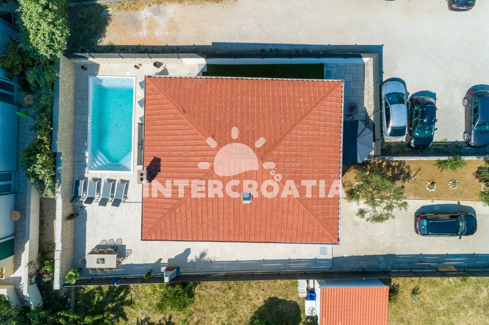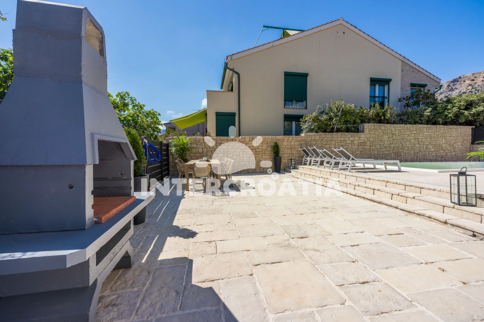 Domek se nachází 200 m od moře a pláže. Pláž je oblázková. Domek disponuje bazénem s lehátky pro ubytované hosty. U objektu je k dispozici společná zahrada s posezením a grilem. Parkování je před domem.