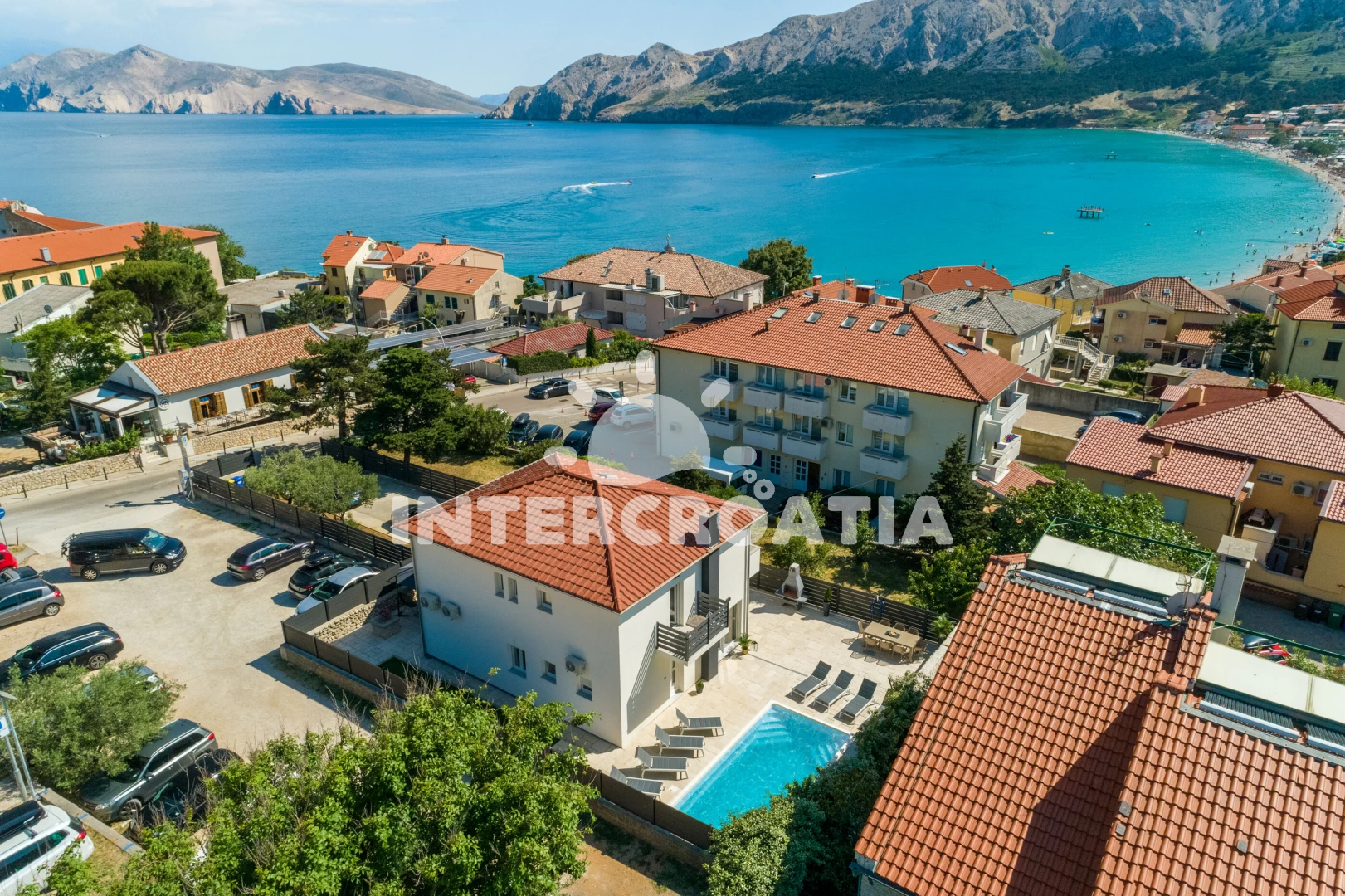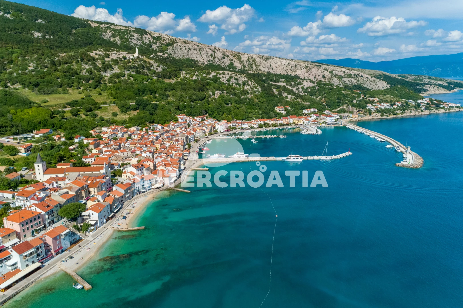 Vzdálenosti: centrum 0 m, Moře 100 m, pláž 200 m (oblázky), pošta 50 m, restaurace 80 m, lékárna 100 m, půjčovna motorových člunů 150 m, banka 180 m, bar 180 m, veřejná doprava 180 m, supermarket 200 m, ambulance 220 m, muzeum 300 m, půjčovna kol 750 m, čerpací stanice 1,2 km, diskotéka 20 km, trajekt (Valbiska (Krk)) 30 km, letiště (Rijeka) 44 km,