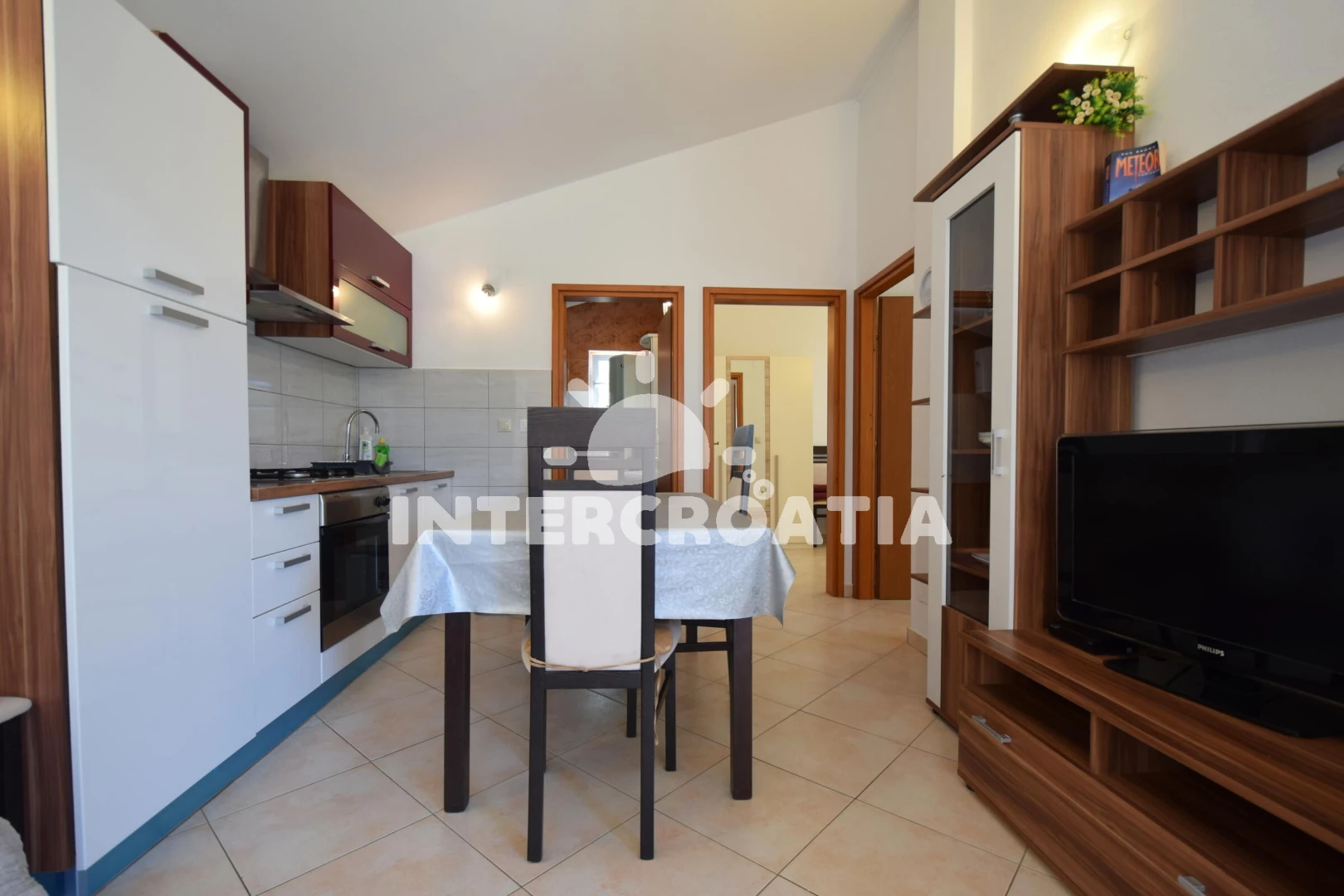 Vzdálenosti: Moře 600 m, pláž 600 m (oblázky), restaurace 600 m, supermarket 1 km, bar 1,5 km, veřejná doprava 1,5 km, ambulance 2 km, potápění 2 km, čerpací stanice 2,1 km, lékárna 2,1 km, diskotéka 2,1 km, centrum 2,2 km, muzeum 2,2 km, banka 2,2 km, směnárna 2,2 km, pošta 2,5 km,