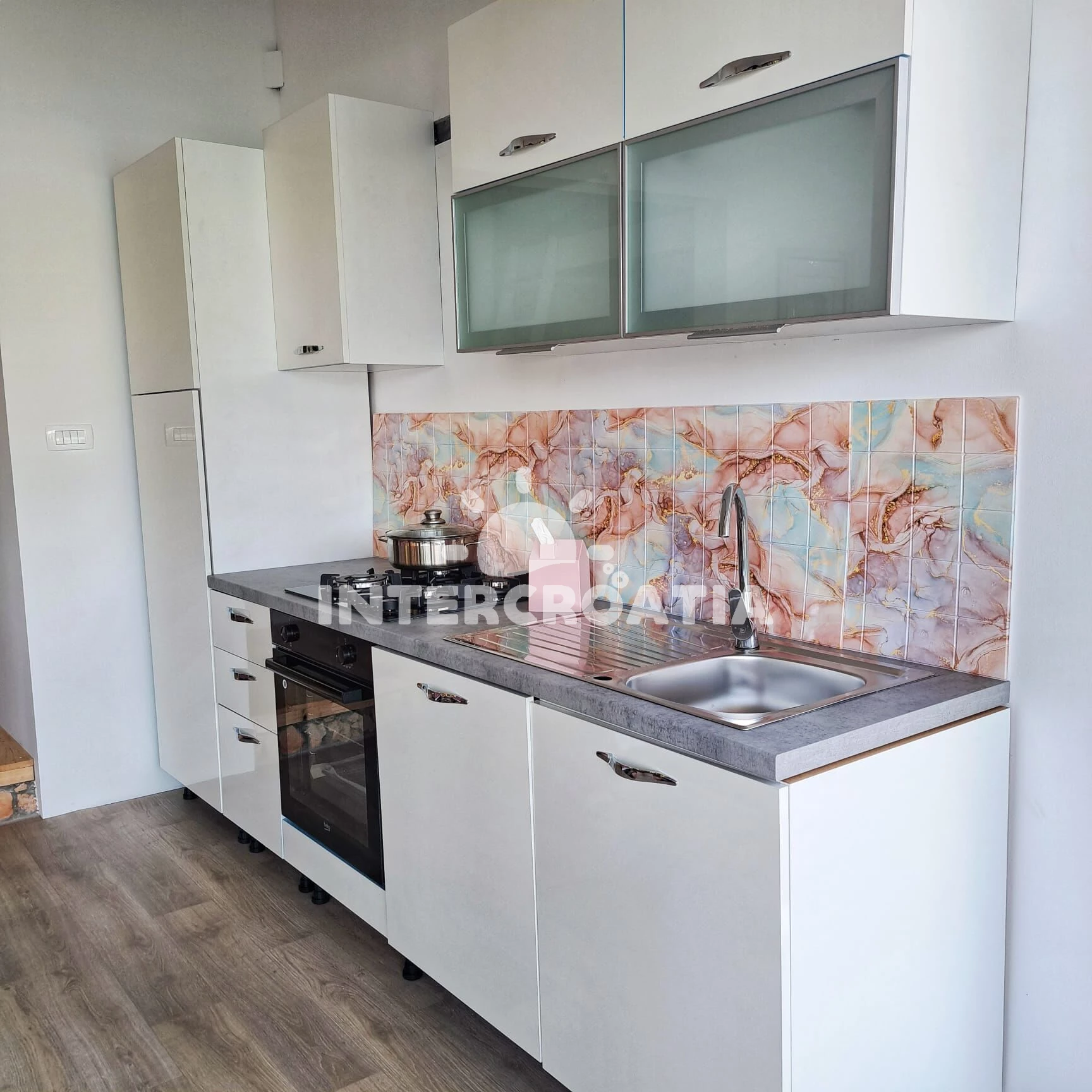 Domek (40 m2) s výhledem na moře. Nachází se v přízemí objektu. Domek má 1 ložnici a je vhodný pro až 4 osoby. Kuchyňská linka je vybavena varnou deskou, myčkou na nádobí, nádobím, lednicí, mrazákem.…