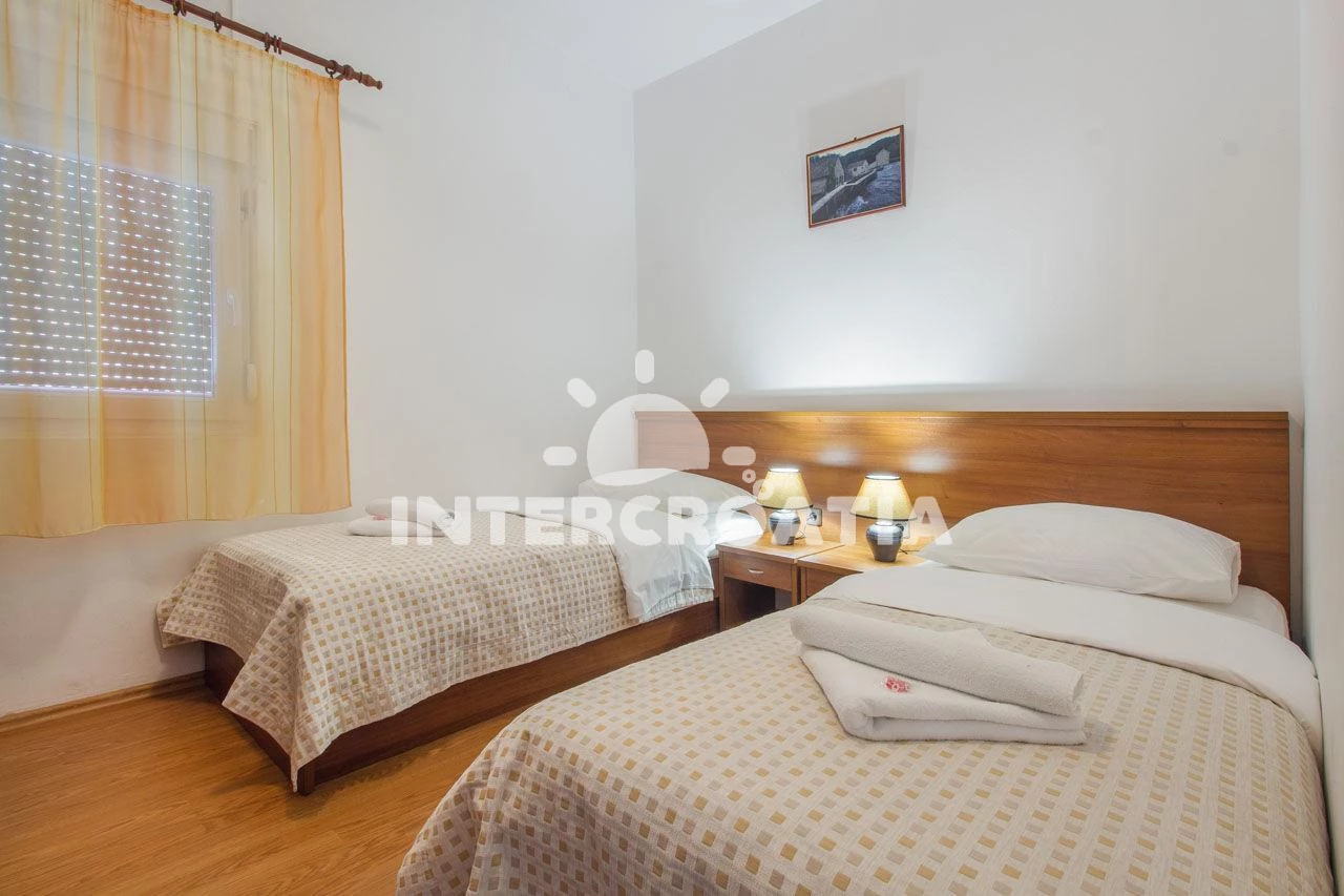 Vzdálenosti: Moře 10 m, pláž 1 km (oblázky), restaurace 100 m, bar 100 m, banka 550 m, směnárna 550 m, lékárna 550 m, centrum 550 m, supermarket 700 m, pošta 800 m, čerpací stanice 8 km, park Plitvice 35 km, trajekt (Zadar) 57 km, letiště (Zadar) 67 km,