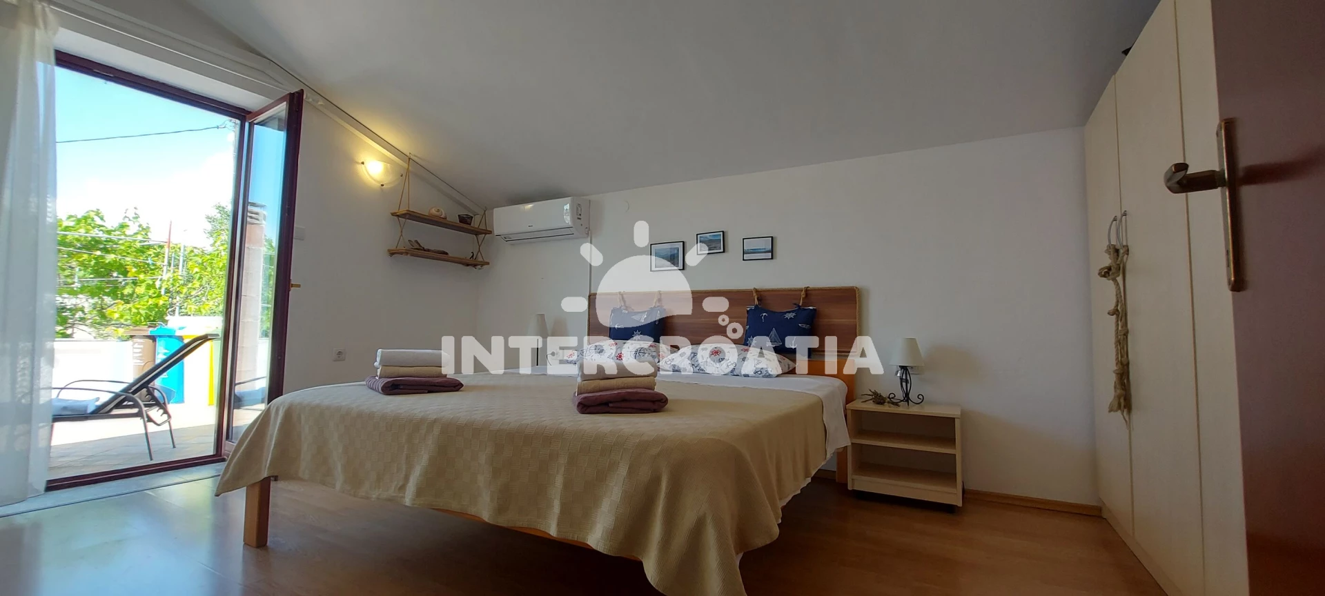 Vzdálenosti: Moře 4 m, pláž 4 m (písek), bar 50 m, park Plitvice 50 m, veřejná doprava 50 m, supermarket 50 m, potápění 100 m, půjčovna motorových člunů 100 m, restaurace 100 m, centrum 100 m, pošta 4 km, půjčovna kol 4 km, ambulance 14 km, banka 14 km, muzeum 14 km, směnárna 14 km, lékárna 14 km, diskotéka 14 km, čerpací stanice 14 km, trajekt (Žigljen) 17 km, letiště (Zadar) 100 km,