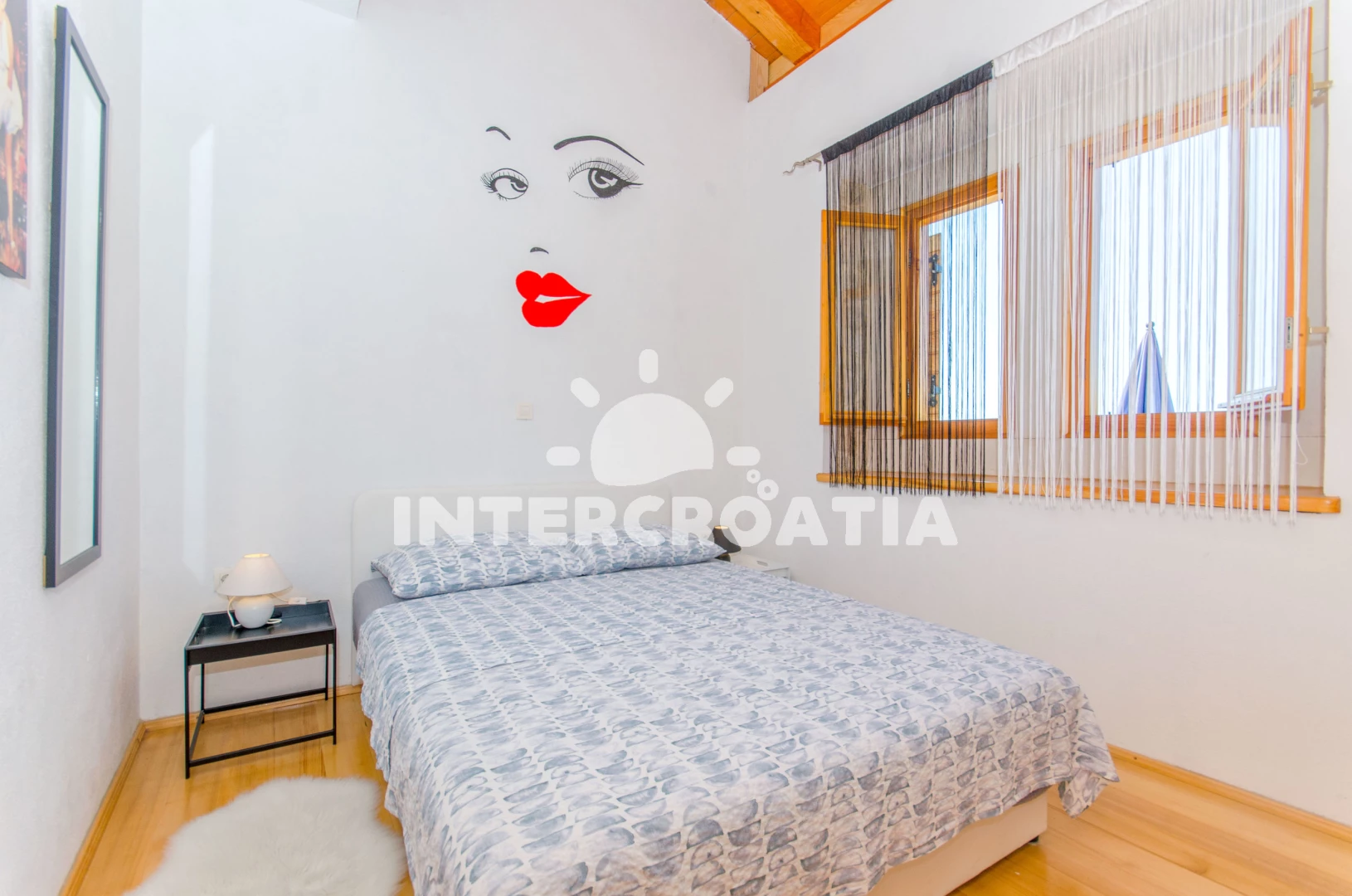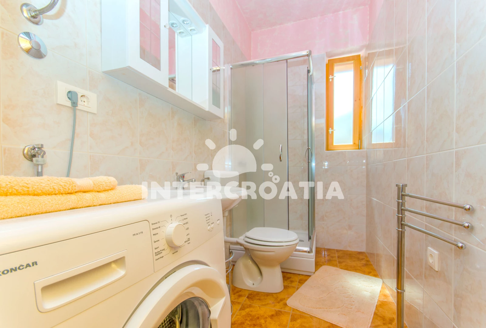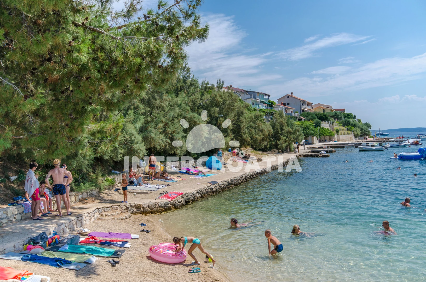 Vzdálenosti: Moře 50 m, pláž 80 m (oblázková a betonové desky), centrum 50 m, kotviště pro čluny 100 m, veřejná doprava 100 m, bar 100 m, supermarket 4 km, restaurace 4 km, pošta 13 km, lékárna 18 km, ambulance 18 km, směnárna 18 km, čerpací stanice 18 km, banka 18 km, trajekt (Zadar) 35 km, letiště (Zadar) 40,0 km,