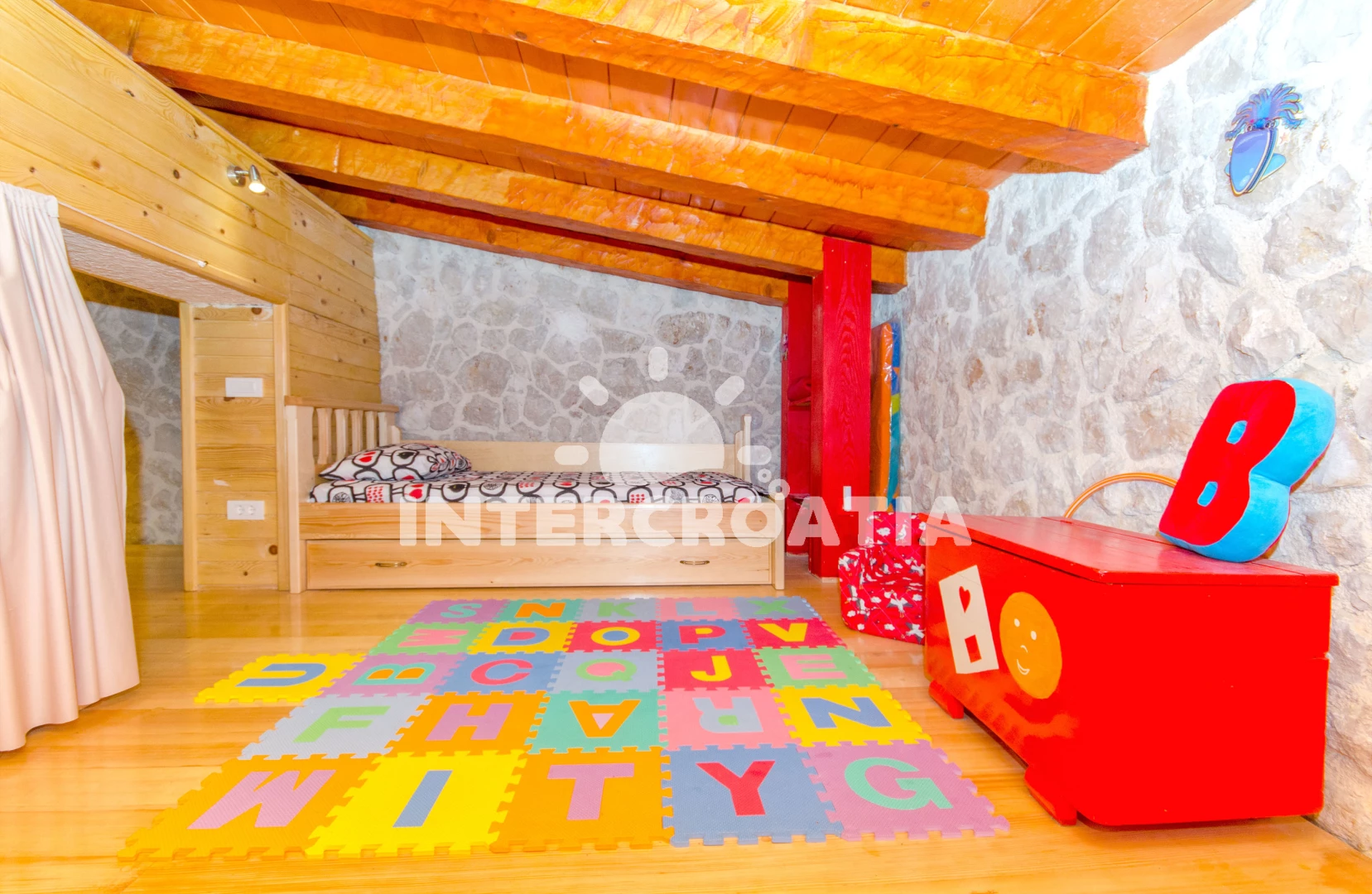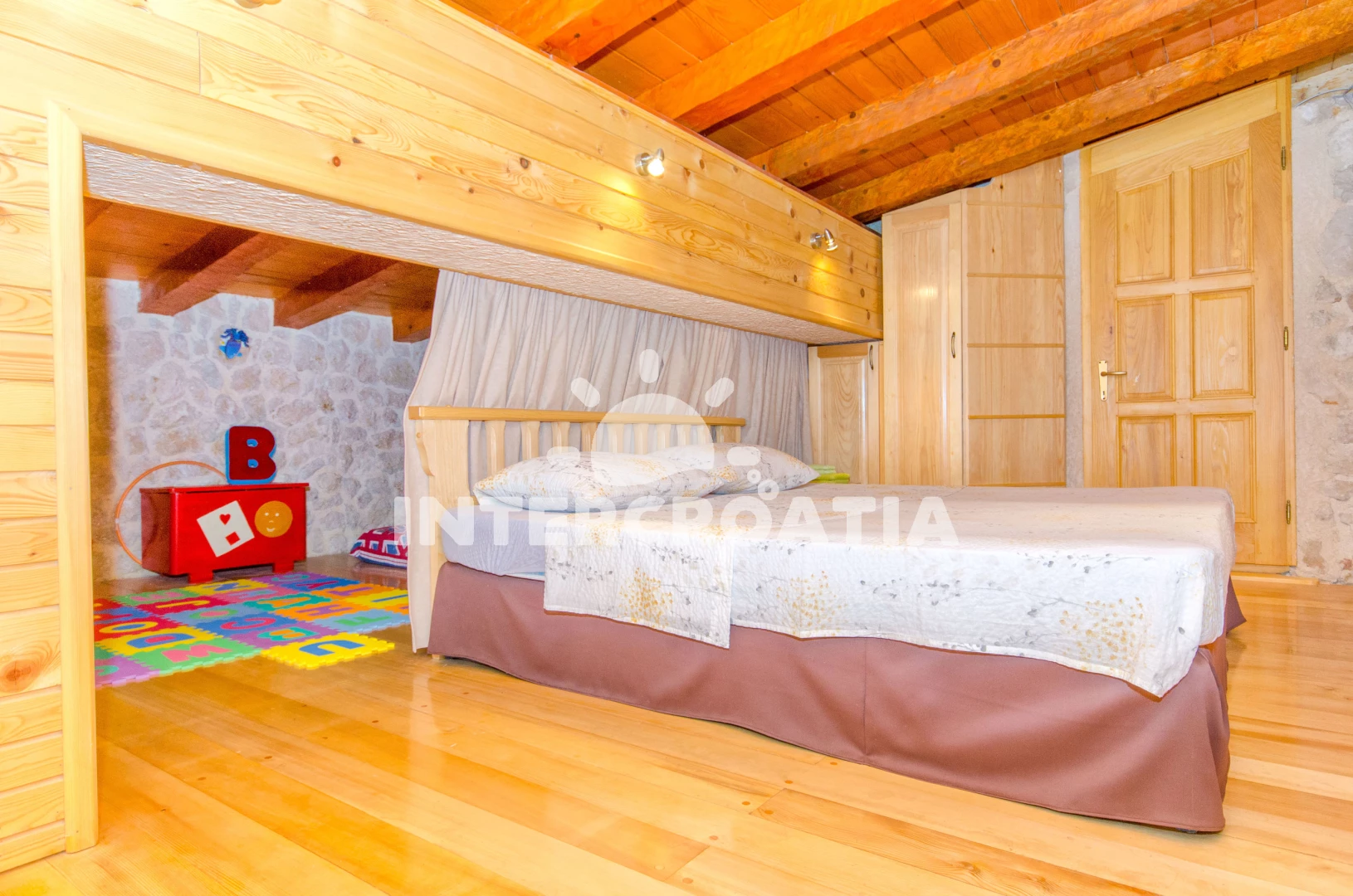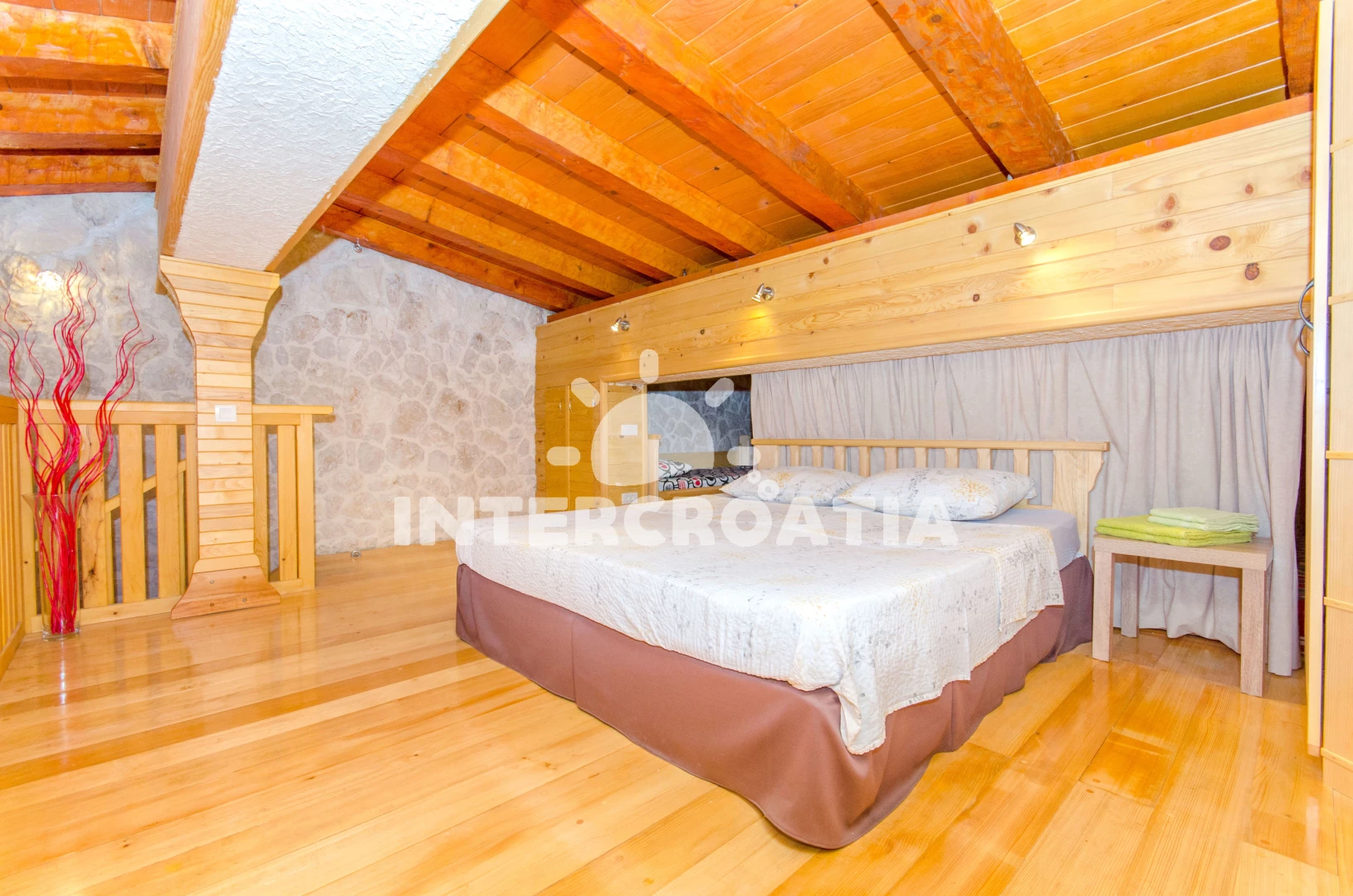 Domek (120 m2) s výhledem na moře. Nachází se ve dvou patrech objektu. Domek má 3 ložnice a je vhodný pro až 7 osob. Kuchyňská linka je vybavena varnou deskou, toustovačem, troubou, kávovarem, myčkou…