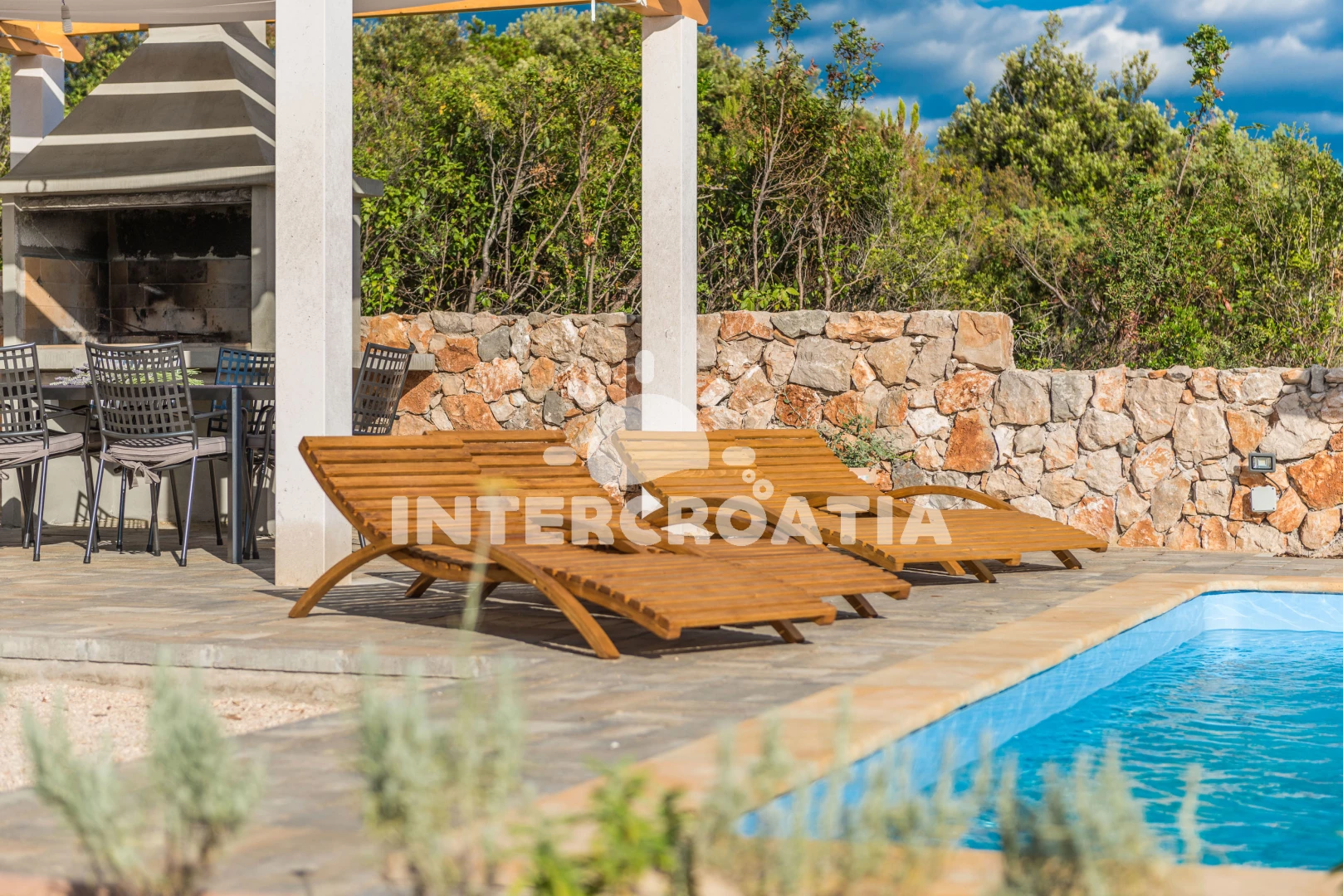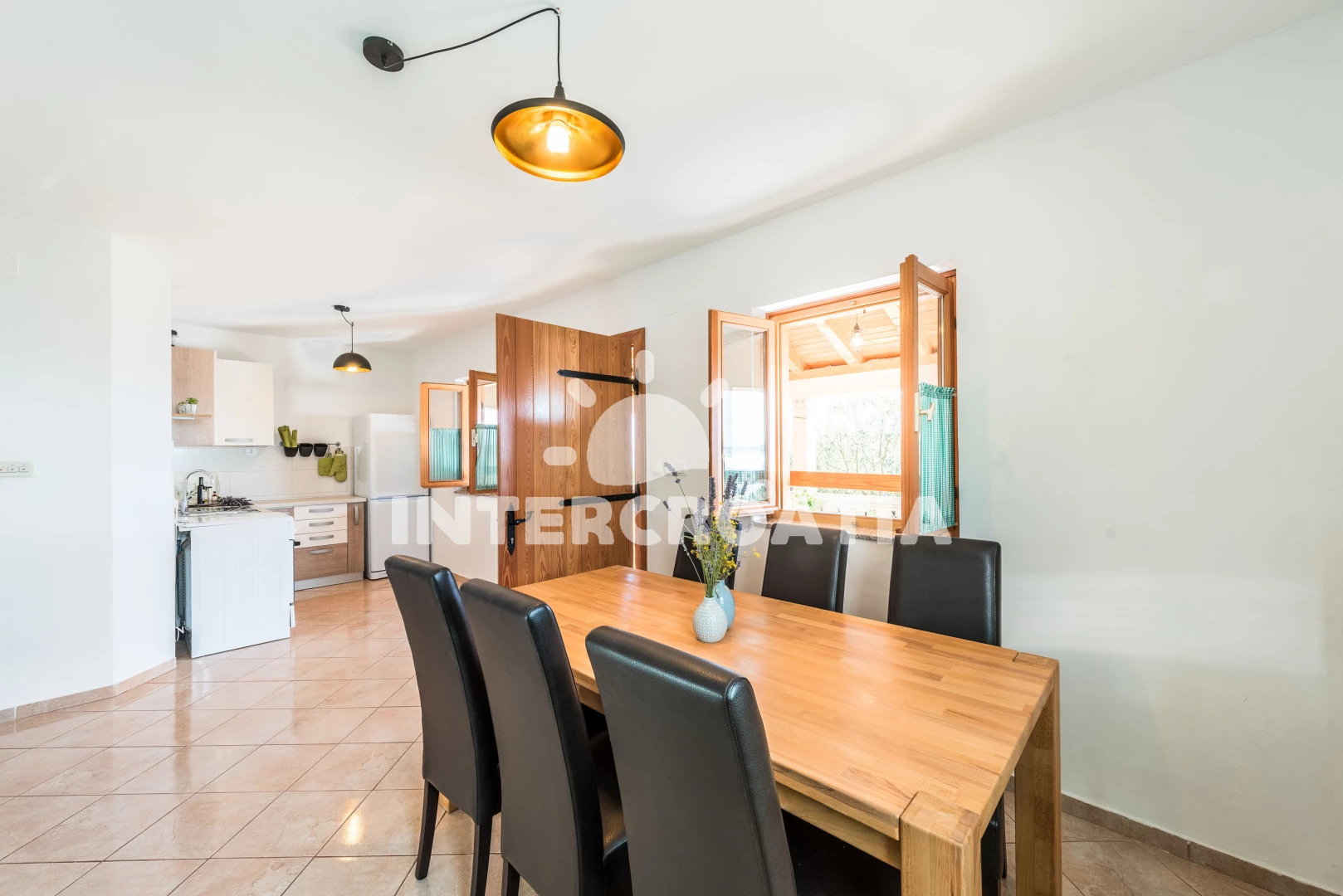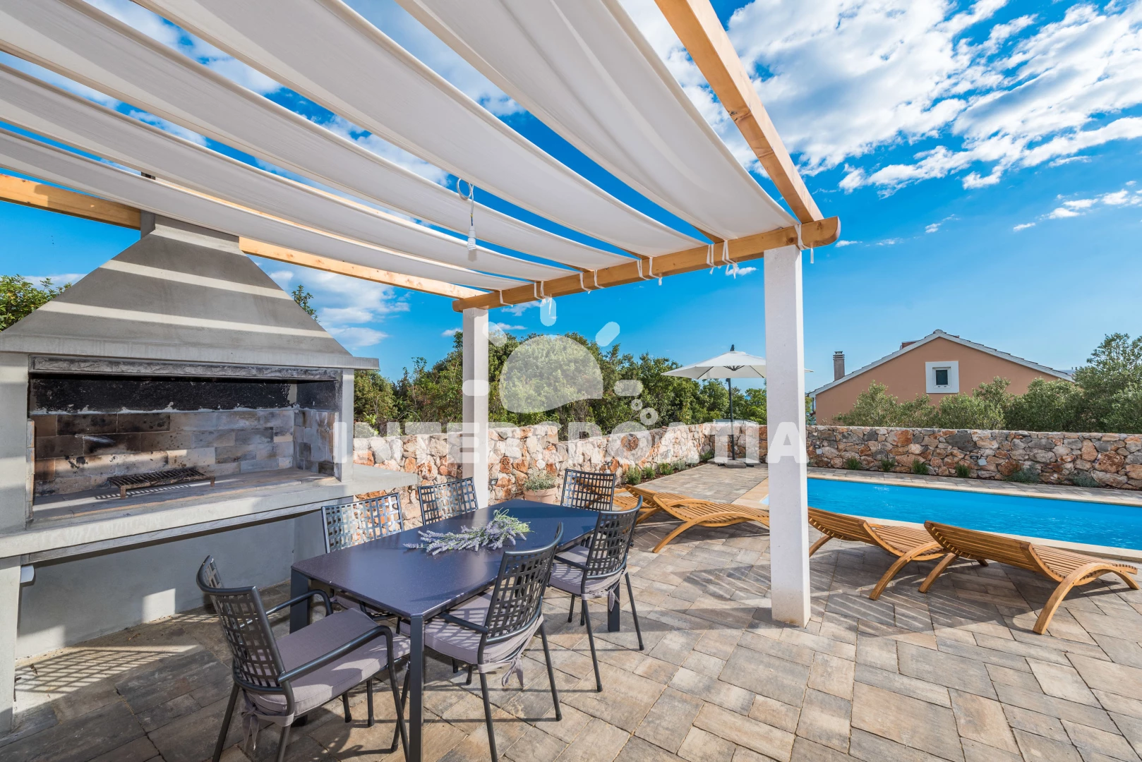 Domek se nachází 50 m od moře a pláže. Pláž je oblázková a betonové desky. Domek disponuje bazénem s lehátky pro ubytované hosty. U objektu je k dispozici společná zahrada s posezením a grilem. Parkování je před domem.