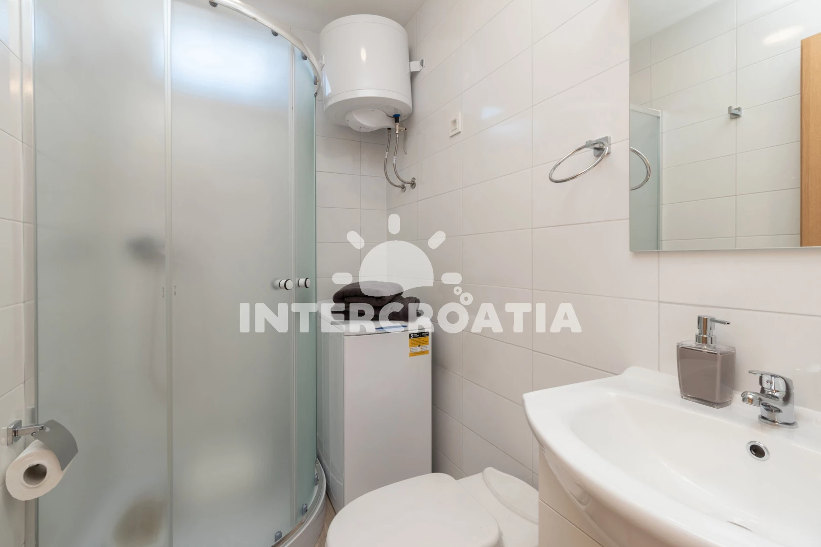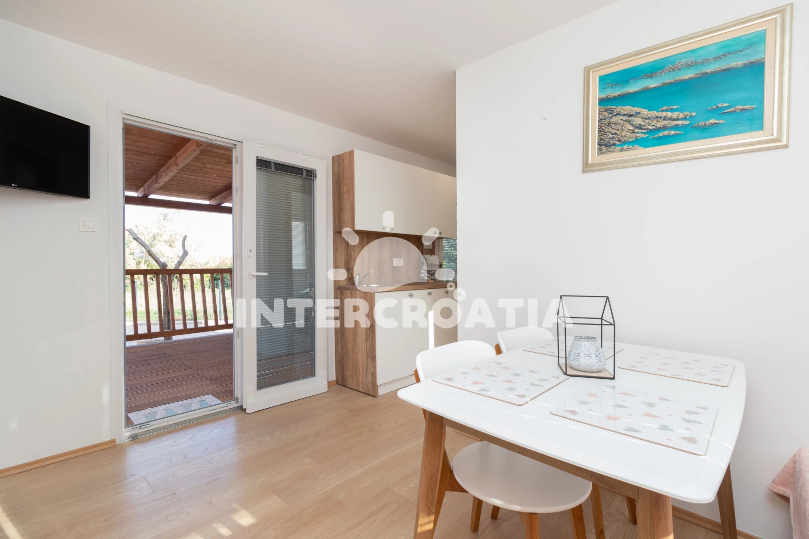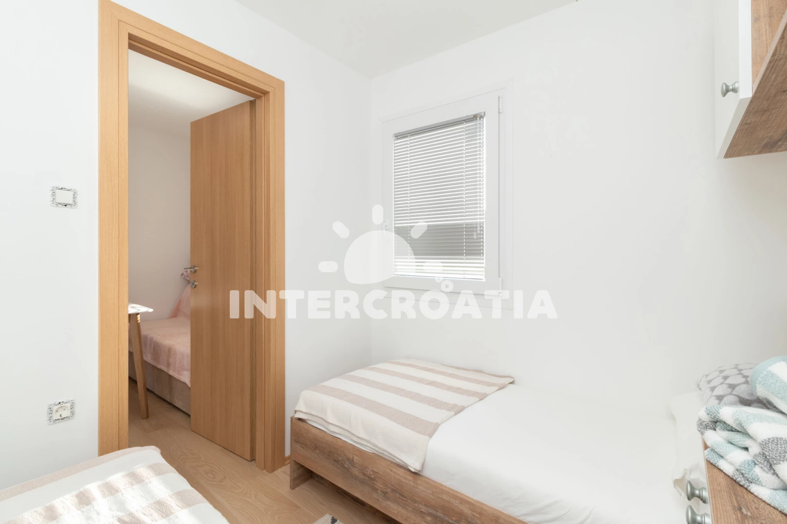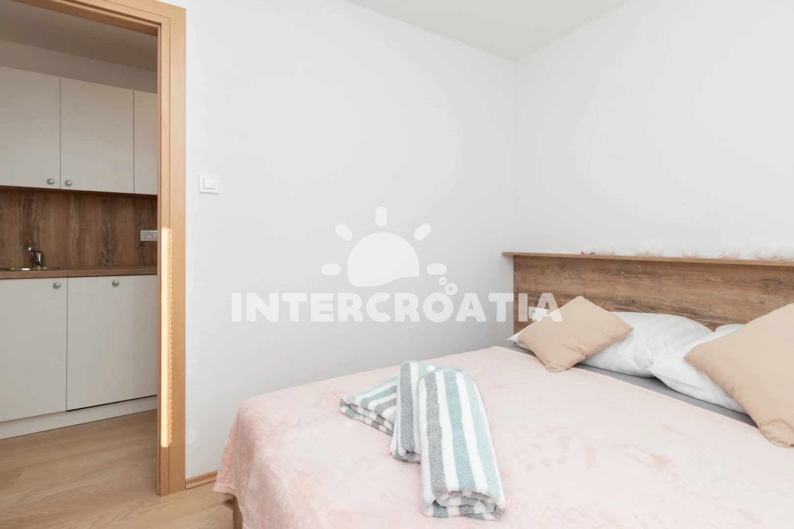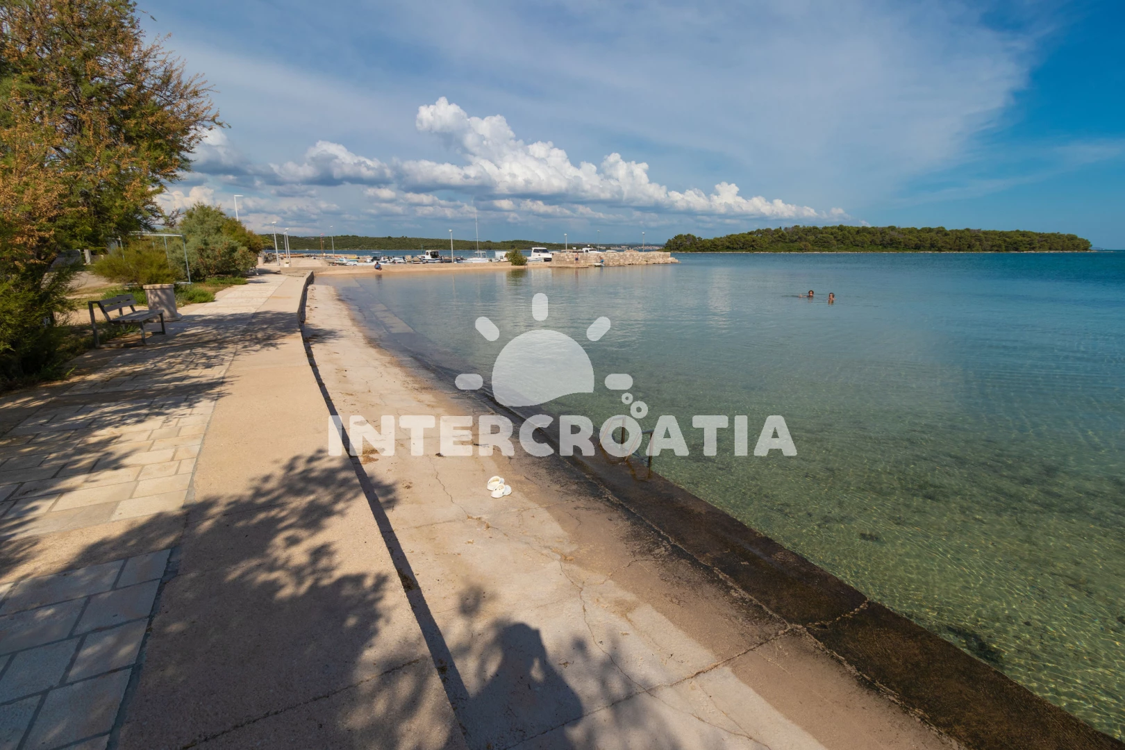 Vzdálenosti: Moře 65 m, pláž 65 m (písčitá a oblázková), supermarket 1 km, směnárna 1 km, veřejná doprava 1 km, bar 1 km, centrum 1 km, restaurace 1 km, trajekt (Tkon) 8 km, ambulance 8 km, lékárna 8 km, pošta 8 km, park Plitvice 30 km, letiště (Zadar) 40 km,