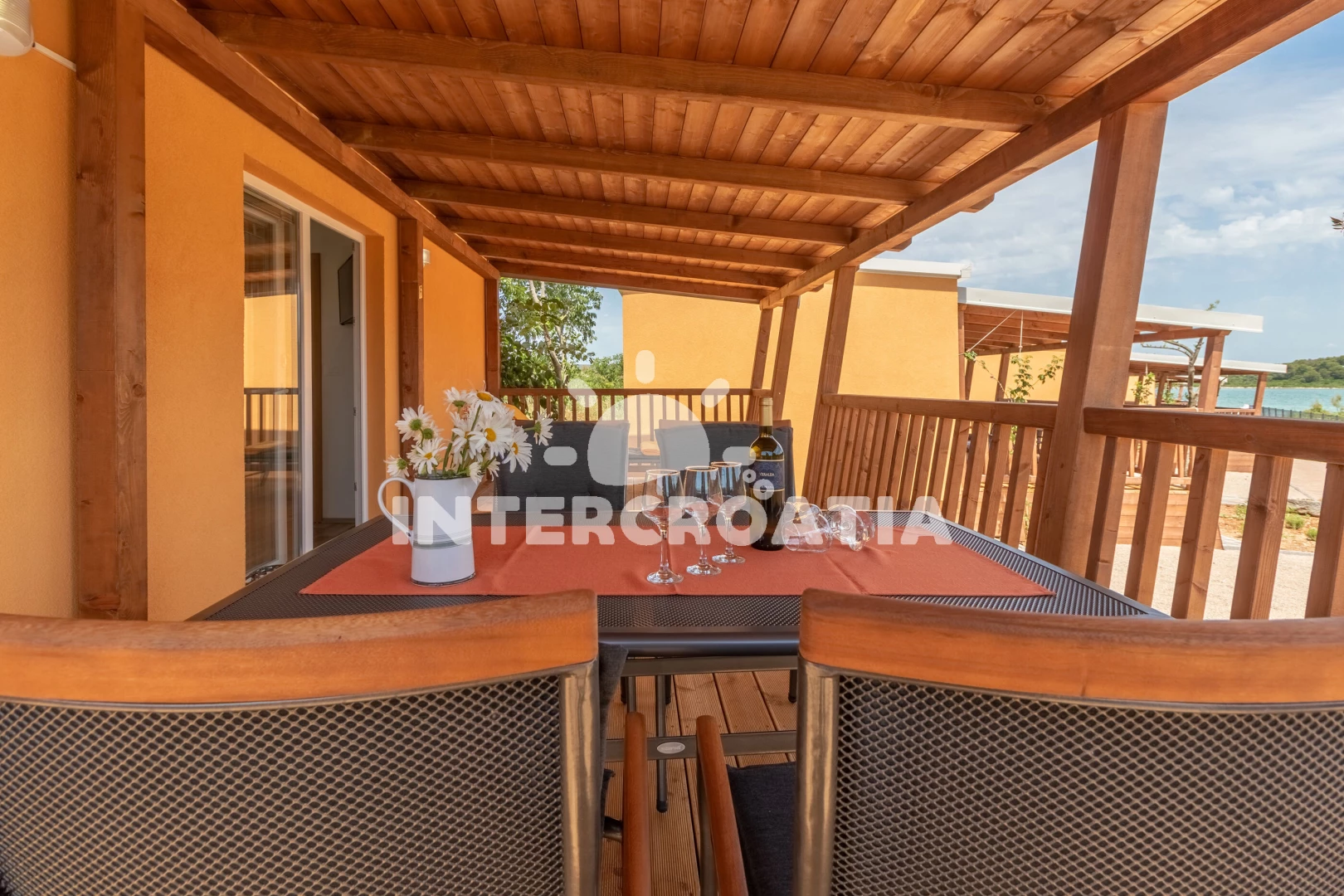 Domek (32 m2). Nachází se v přízemí objektu. Domek má 2 ložnice a je vhodný pro až 6 osob. Kuchyňská linka je vybavena varnou deskou, myčkou na nádobí, nádobím, lednicí, mrazákem. V obývací místnosti je rozložitelná pohovka (extra lůžko pro 2 osoby). K dispozici televize. První ložnice s dvoulůžkem. Druhá ložnice se 2 jednolůžky. Koupelna se sprchovým koutem, umyvadlem, WC. Hostům je k dispozici parkování u objektu zdarma.