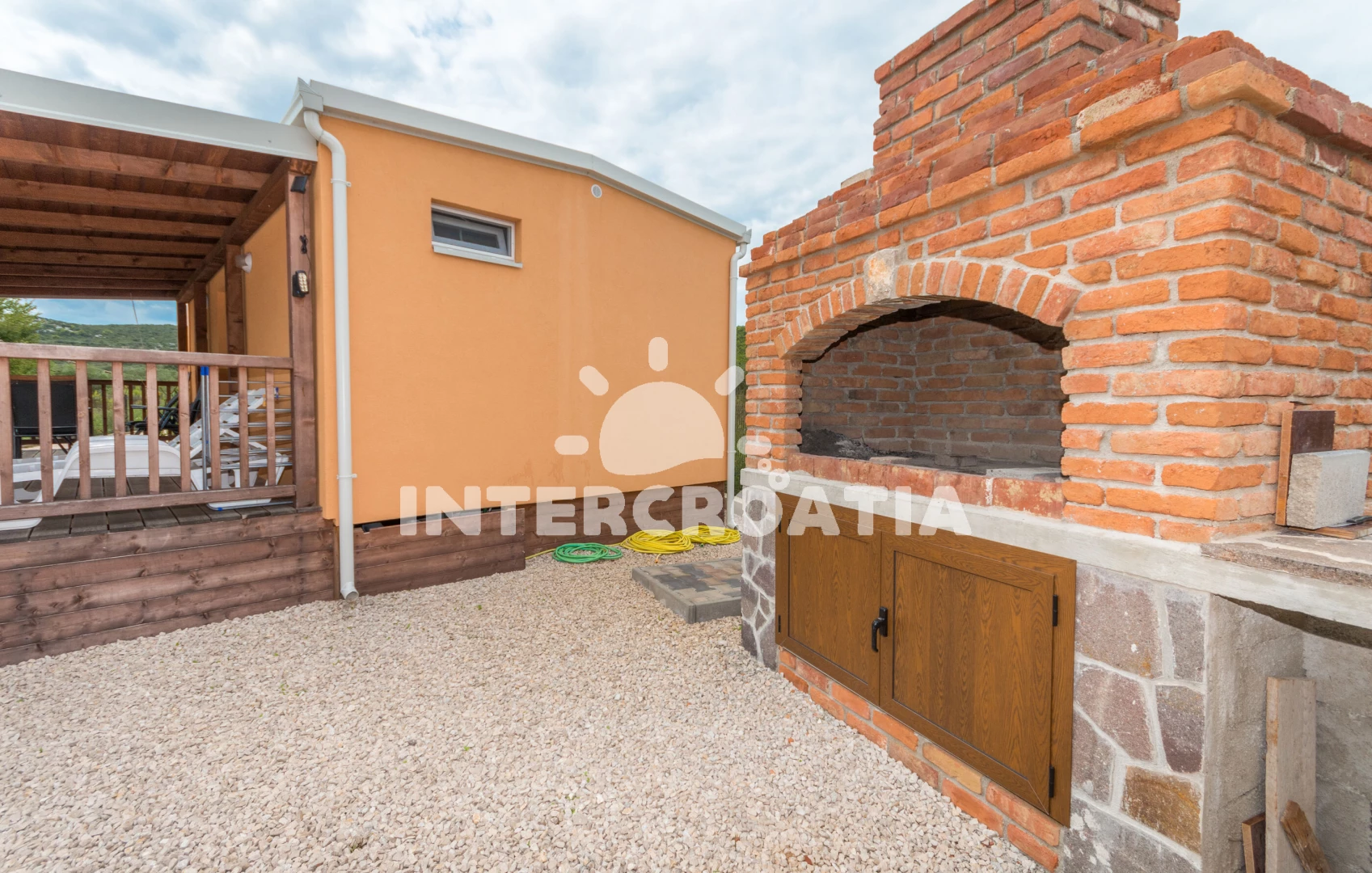 Domek se nachází 65 m od moře a pláže. Pláž je písčitá a oblázková. U objektu je k dispozici společná zahrada s posezením a grilem. Parkování je před domem.