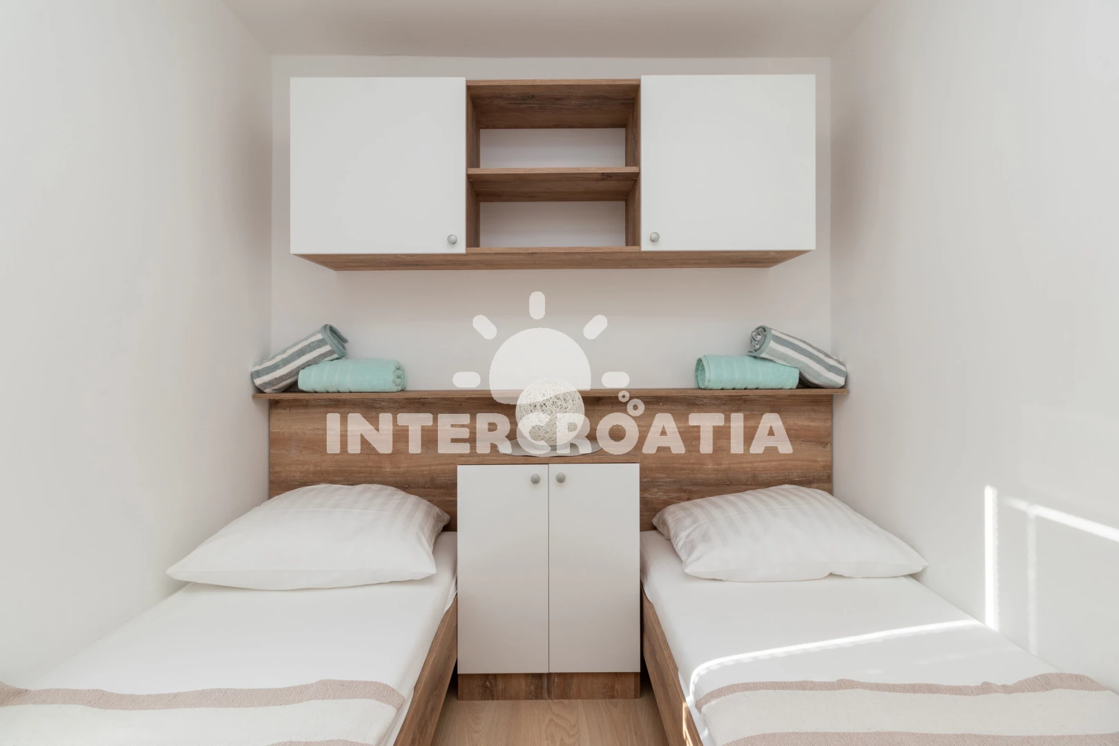 Vzdálenosti: Moře 40 m, pláž 40 m (písčitá, oblázková a skalnatá), centrum 500 m, restaurace 500 m, supermarket 1,5 km, trajekt (Tkon) 1,5 km, lékárna 1,5 km, ambulance 1,5 km, směnárna 1,5 km, pošta 1,5 km, bar 1,5 km, půjčovna kol 1,5 km, letiště (Zadar) 40 km,
