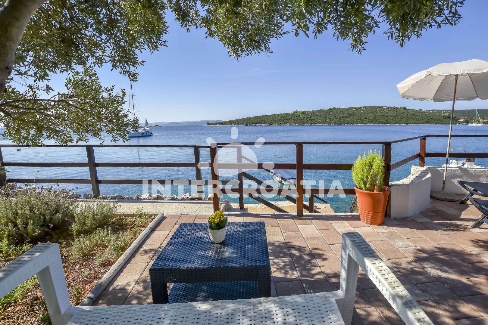 Vzdálenosti: Moře 10 m, pláž 10 m (kamenné a betonové desky), kotviště pro čluny 10 m, restaurace 80 m, centrum 4 km, supermarket 4 km, trajekt (Tkon) 4 km, lékárna 4 km, ambulance 4 km, směnárna 4 km, pošta 4 km, bar 4 km, čerpací stanice 8 km, park Plitvice 30 km, letiště (Zadar) 40 km,