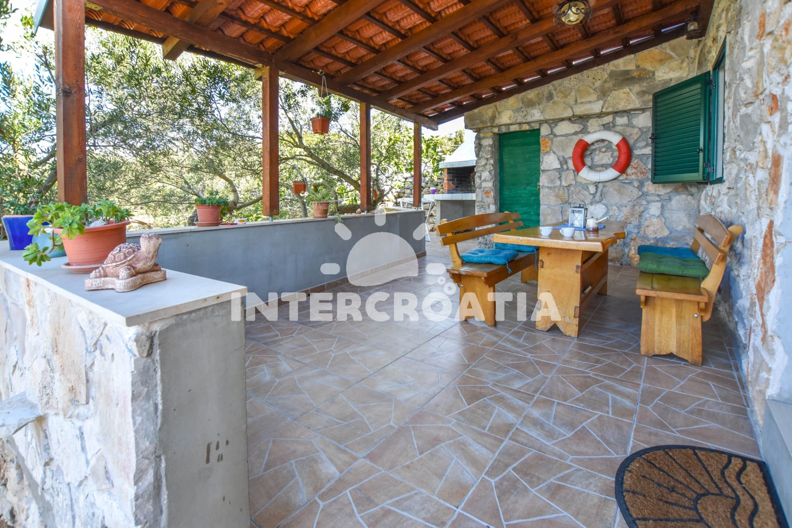Napravili su ovu savršenu kamenu kučicu, sa predivnom verandon i sa vrtom punom maslina. Iz nutra je divno udobno. More je savršeno čisto i puno riba. Kamenja su bila dobra za masažu stopala i promatranje malih rakova i za roniti je lipo. Po danu polako plove razni brodovi i jedrelice i lete galebovi. Noći se vide sve zvijezde koje smo sa mula mogle promatrati.