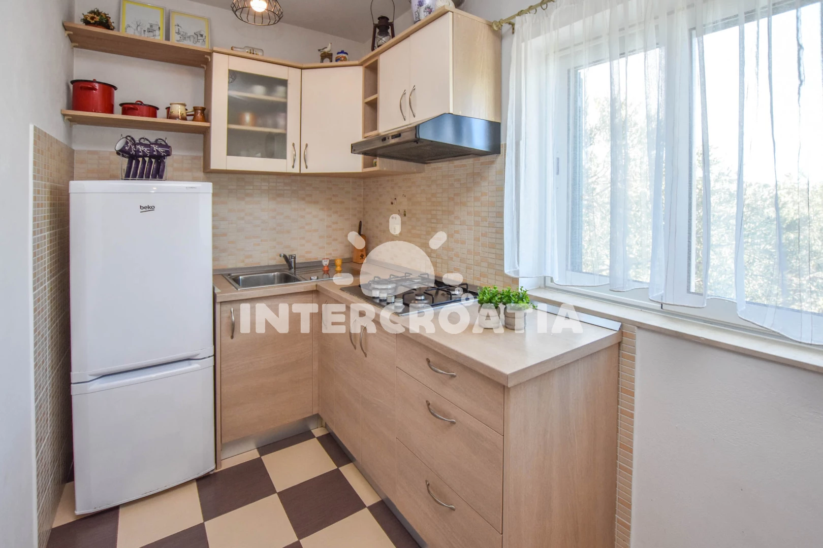 Vzdálenosti: Moře 15 m, pláž 15 m (kamenné a betonové desky), kotviště pro čluny 15 m, ambulance 5 km, centrum 5 km, půjčovna motorových člunů 5 km, marina 5 km, restaurace 5 km, pošta 5 km, bar 5 km, supermarket 5 km, lékárna 5 km, trajekt (Tkon) 5 km, směnárna 5 km, čerpací stanice 8 km, park Plitvice 30 km, letiště (Zadar) 40 km,