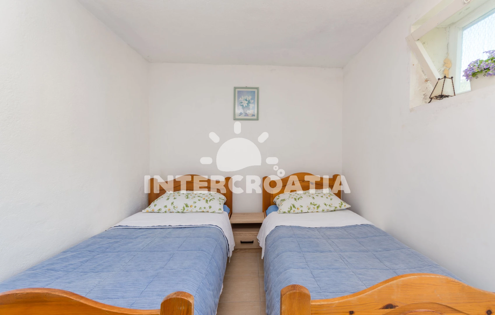 Domek (80 m2) s výhledem na moře. Nachází se v přízemí objektu. Domek má 2 ložnice a je vhodný pro až 6 osob. Kuchyňská linka je vybavena varnou deskou, rychlovarnou konvicí, nádobím, lednicí, mrazákem. V obývací místnosti je rozložitelná pohovka (extra lůžko pro 2 osoby). K dispozici televize. První ložnice s dvoulůžkem. Druhá ložnice se 2 jednolůžky. Koupelna se sprchovým koutem, umyvadlem, fénem a WC. Hostům je k dispozici parkování u objektu zdarma.