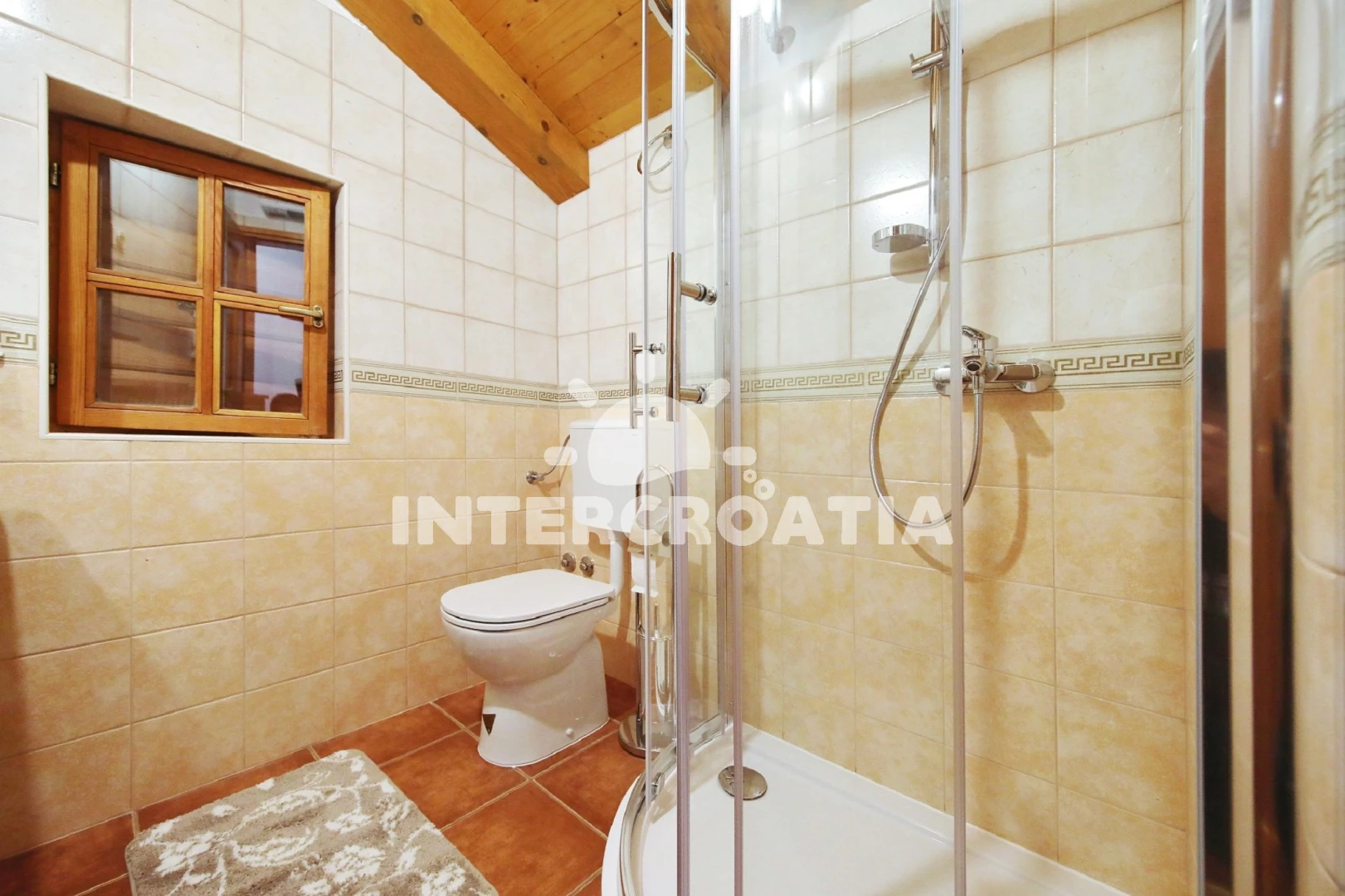 Domek (75 m2). Nachází se ve dvou patrech objektu. Domek má 2 ložnice a je vhodný pro až 5 osob. Kuchyňská linka je vybavena varnou deskou, troubou, toustovačem, kávovarem, mikrovlnnou troubou, rychlovarnou konvicí, nádobím, lednicí, mrazákem. V obývací místnosti je rozložitelná pohovka (extra lůžko pro 1 osobu). K dispozici televize se satelitním programem, žehlička. První ložnice s dvoulůžkem. Druhá ložnice s dvoulůžkem. Koupelna se sprchovým koutem, umyvadlem, WC. Dále samostatné WC.