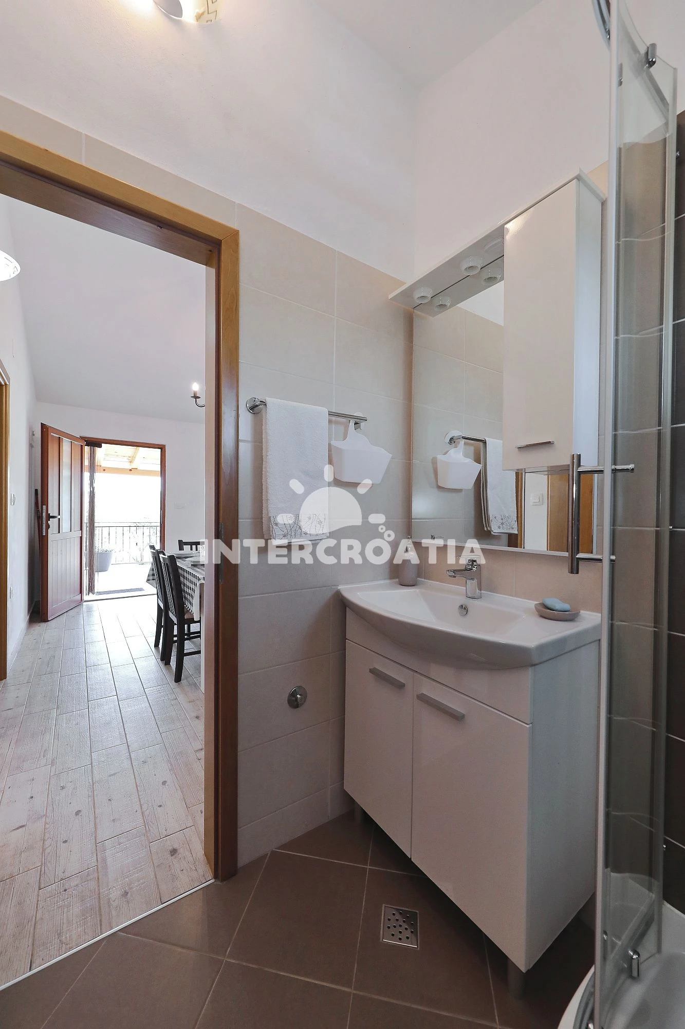 Čistý a pěkný apartmán,krásný sprchový kout,bohužel neteče teplá voda,tak se nevyužívá,pouze venkovní sprcha,když nesvítí slunce,tak není tepla voda vůbec.Tento nedostatek vyvažuje krásné posezení na terase s výhledem na moře a večerním ůžasným západem slunce.