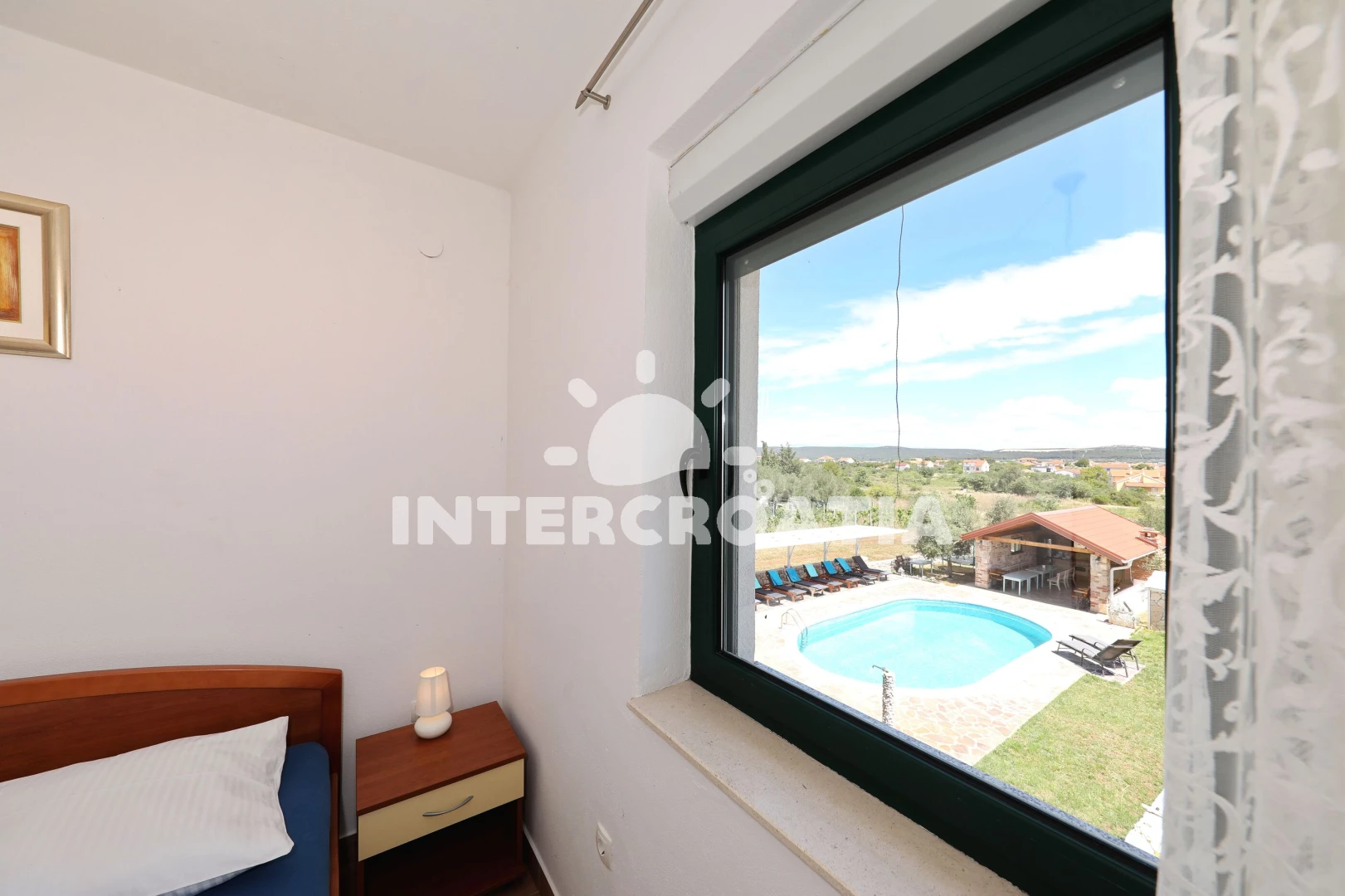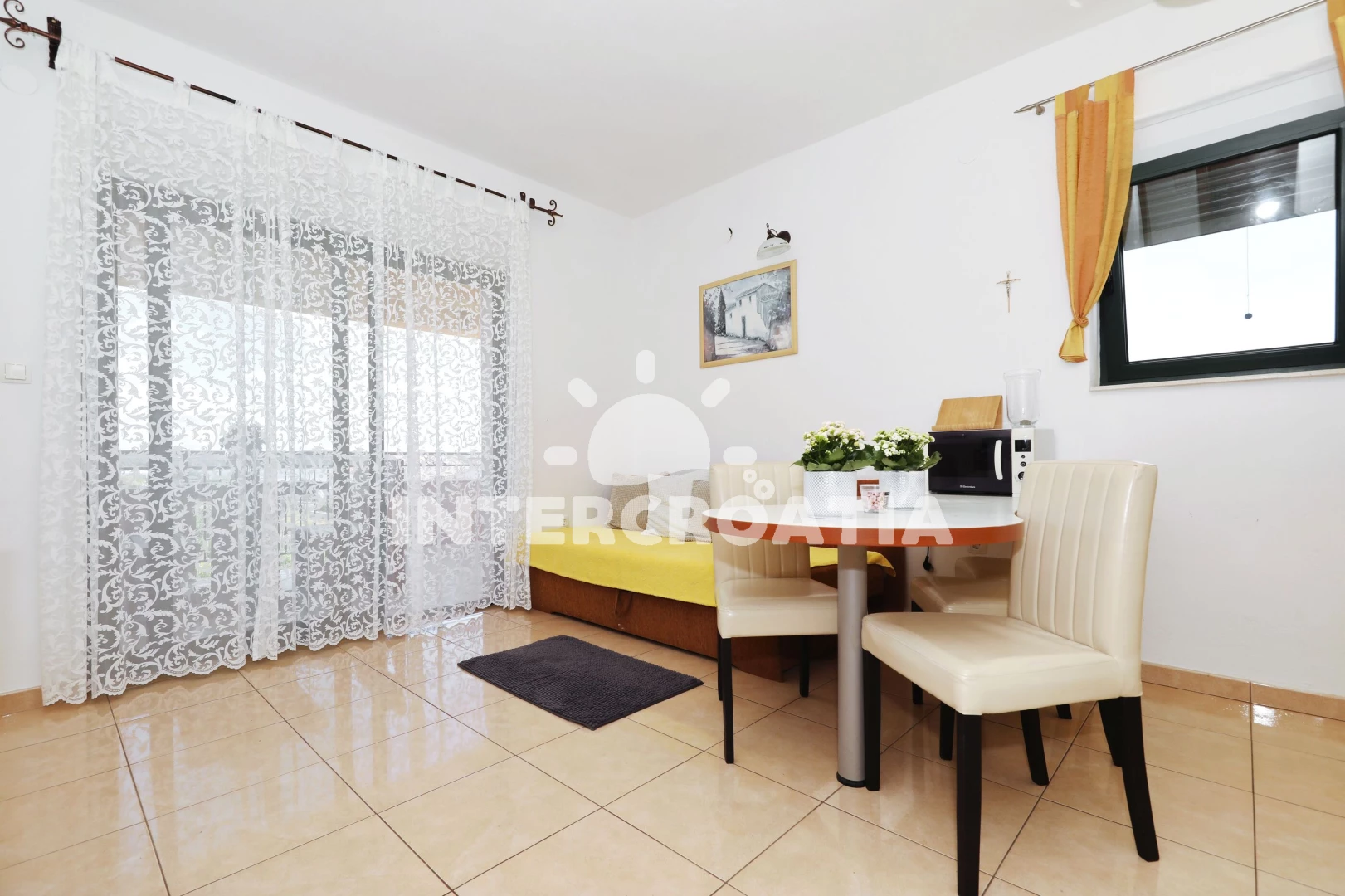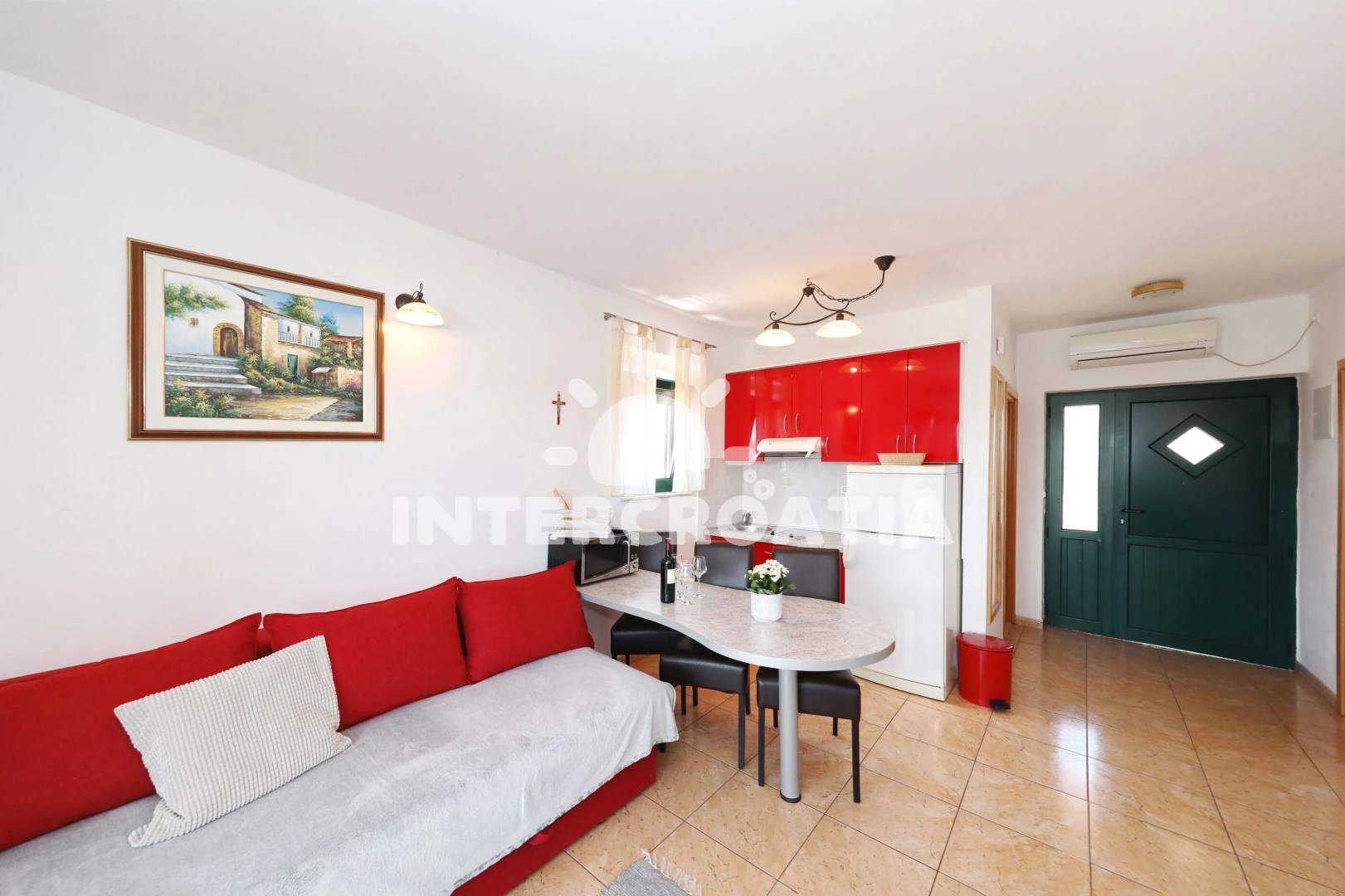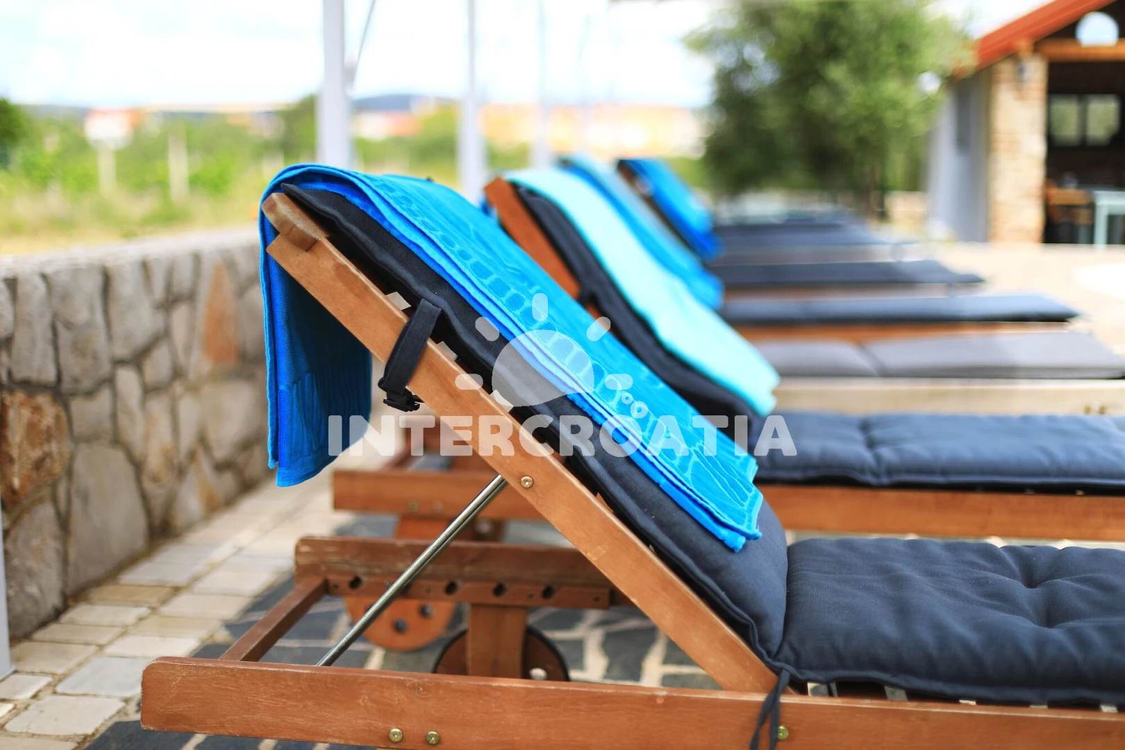 Vzdálenosti: Moře 200 m, pláž 200 m (písek), bar 350 m, restaurace 350 m, supermarket 5 km, trajekt (Tkon) 5 km, lékárna 5 km, centrum 5 km, směnárna 5 km, čerpací stanice 8 km, banka 8 km, pošta 8 km, park Plitvice 20 km, letiště (Zadar) 37,2 km,