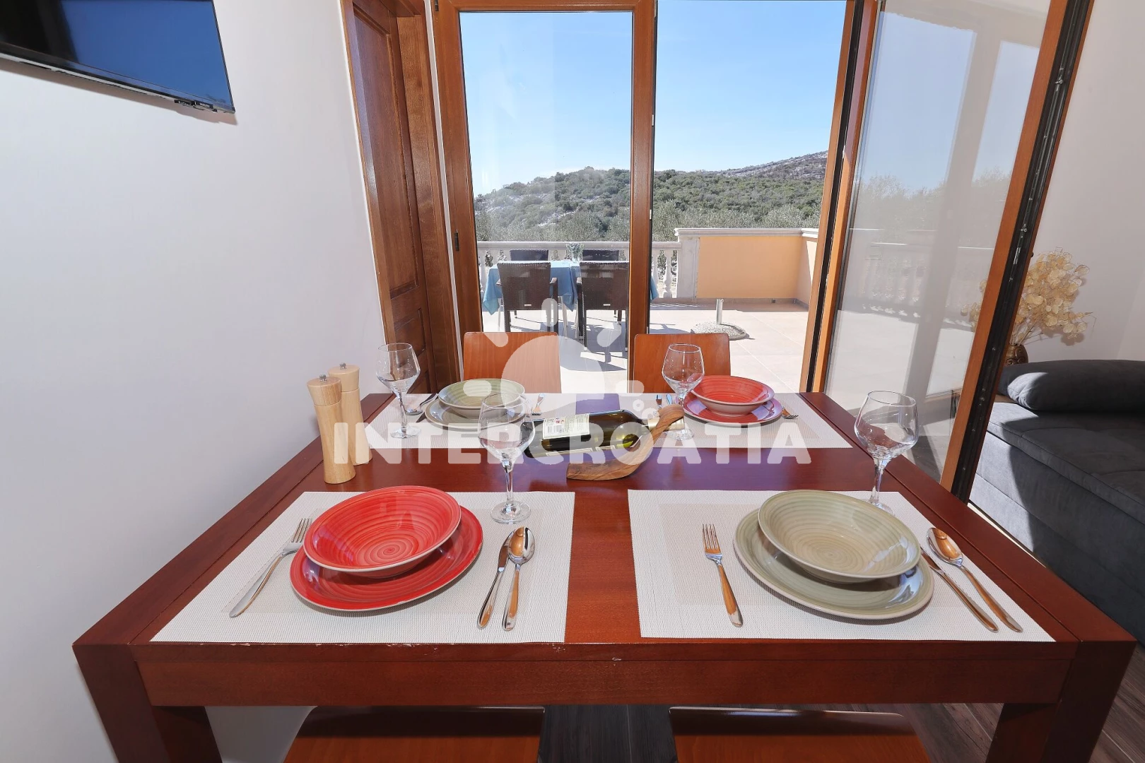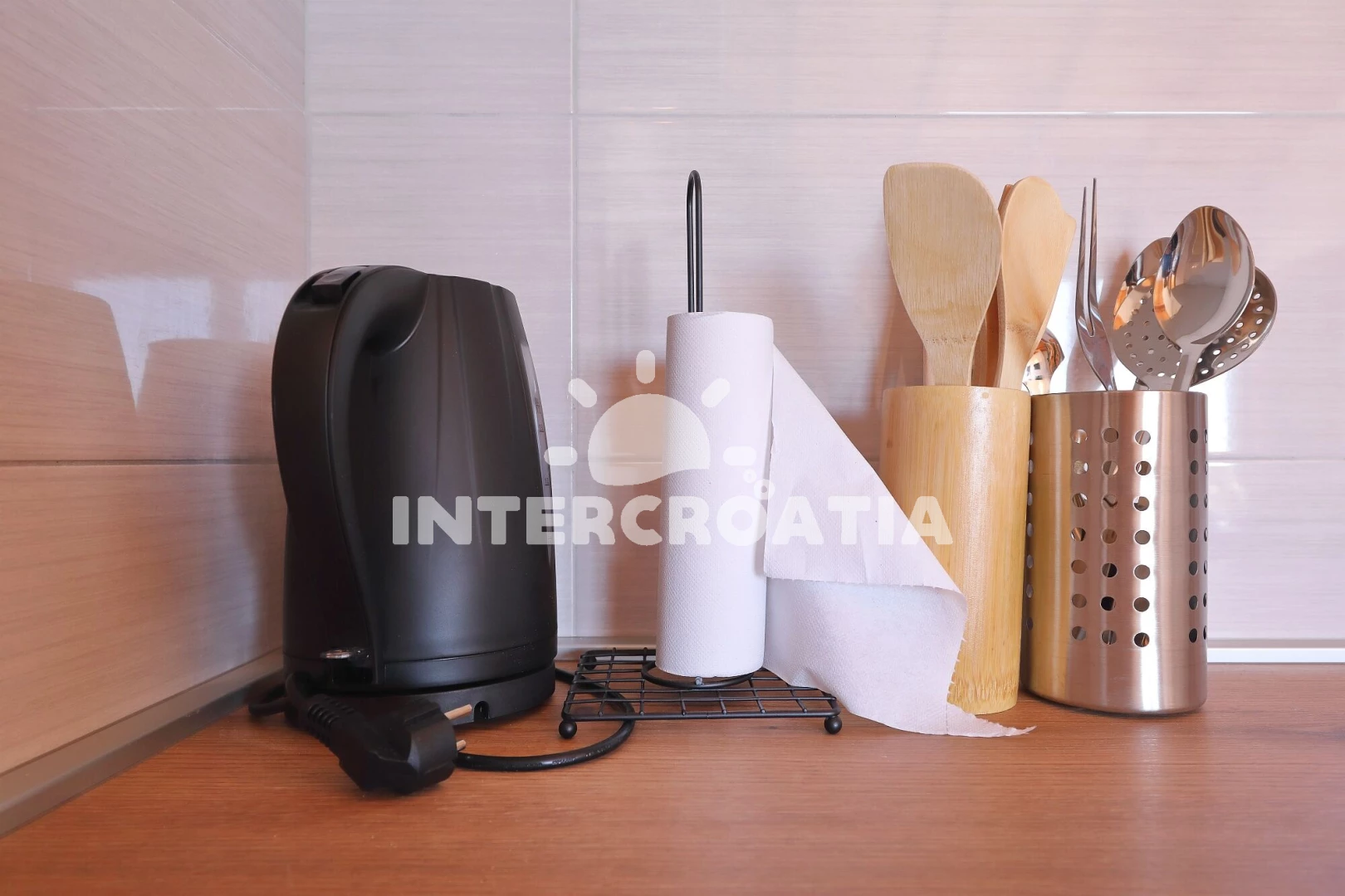 Vzdálenosti: Moře 100 m, pláž 100 m (skály), centrum 3 km, supermarket 3 km, veřejná doprava 3 km, trajekt (Tkon) 3 km, lékárna 3 km, ambulance 3 km, bar 3 km, restaurace 3 km, čerpací stanice 7 km, letiště (Zadar) 40 km,