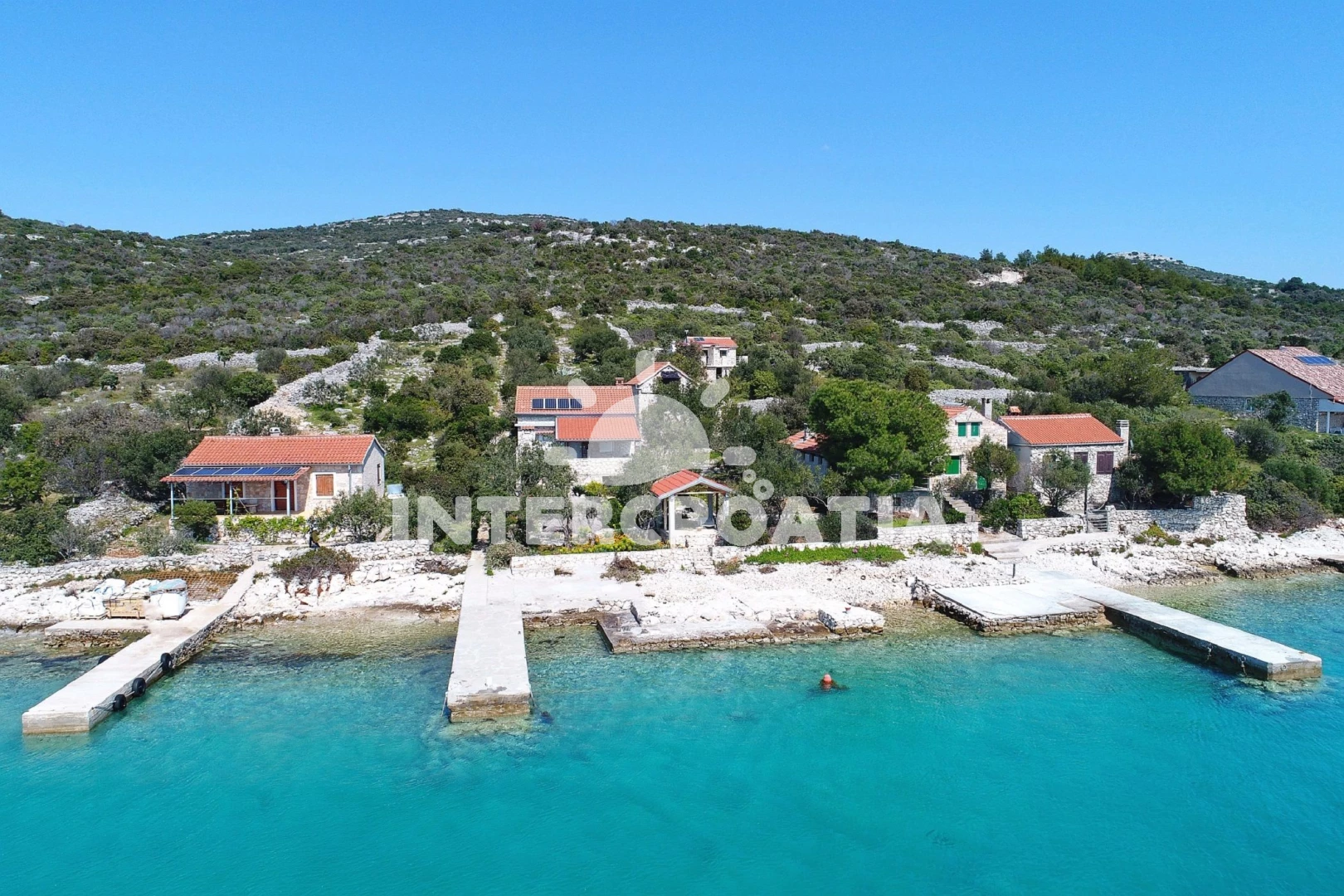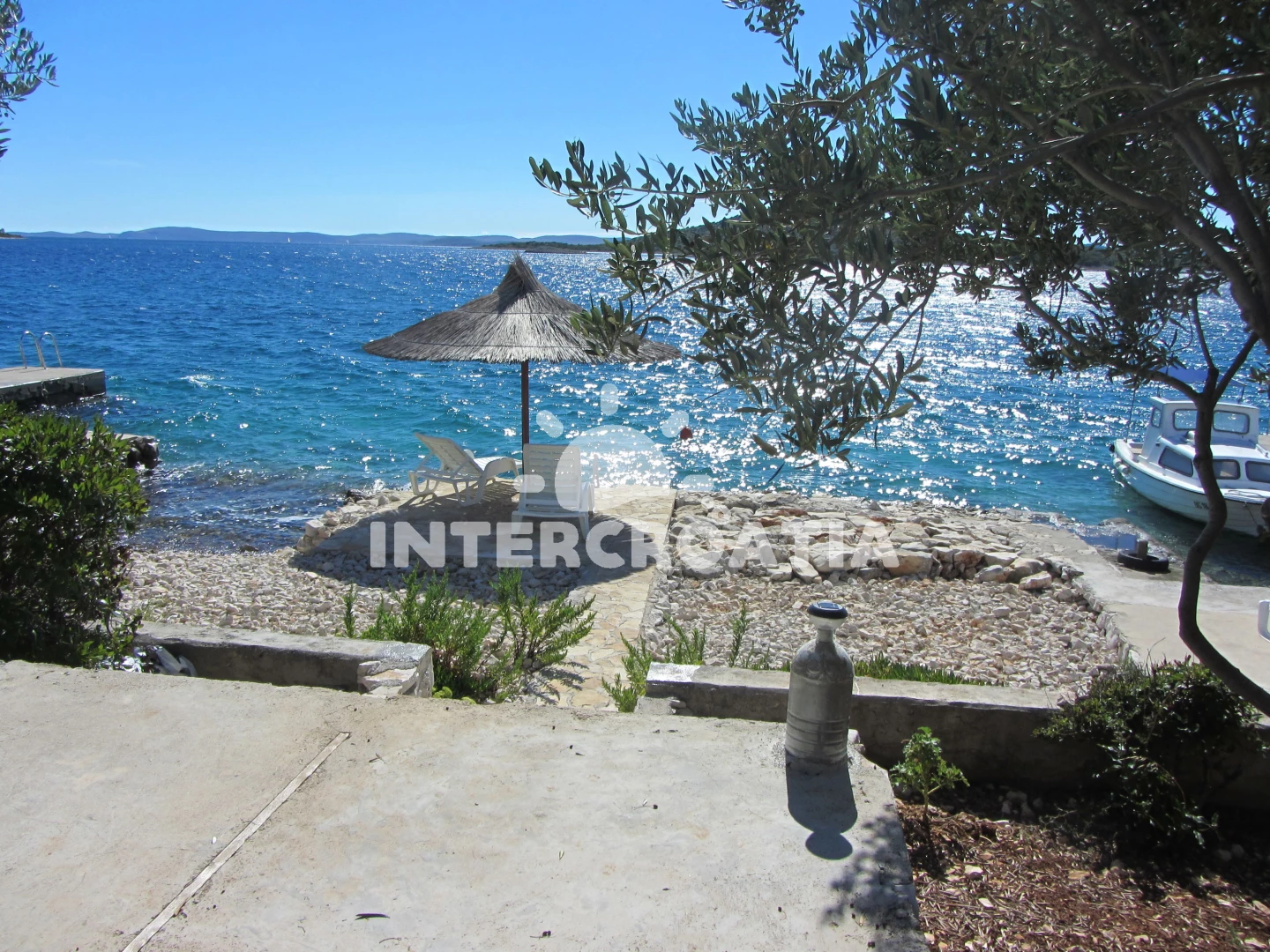 Vzdálenosti: Moře 25 m, pláž 25 m (oblázky), kotviště pro čluny 25 m, centrum 5 km, supermarket 5 km, trajekt (Tkon) 5 km, lékárna 5 km, ambulance 5 km, směnárna 5 km, pošta 5 km, bar 5 km, půjčovna kol 5 km, restaurace 5 km, čerpací stanice 7 km, letiště (Zadar) 40 km,