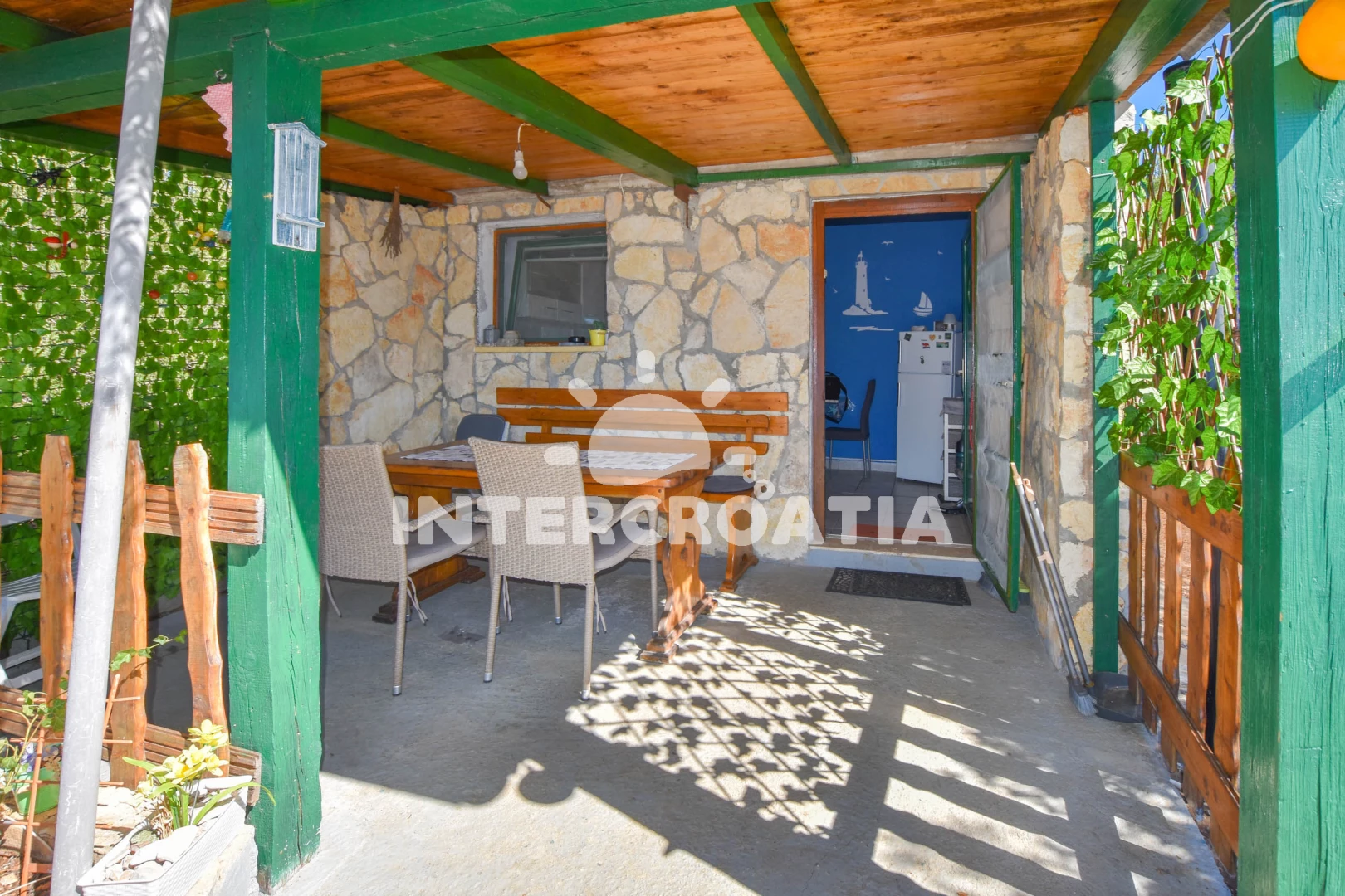 domeček malinký, ale dobře vybavený, přírodní stín,