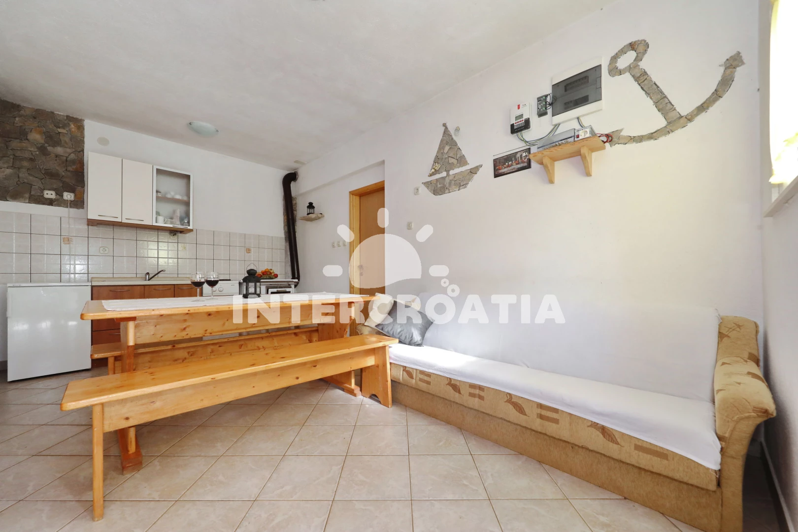 Nezapomeňte na vodu, nemůžete mít vodu v domě uvnitř. Dům také není vhodný pro děti, koupání je rizikové, protože je zde příliš mnoho mořských ježků. Pokud si chcete bezpečně zaplavat, vyberte si dům s malým molem, kde můžete skočit rovnou do vody. Pokud máte problém s autem, máte štěstí, pronajímatelé mají autoservis v Biogradu. Byla naše spása. Stále do ulice, která vede k domu.