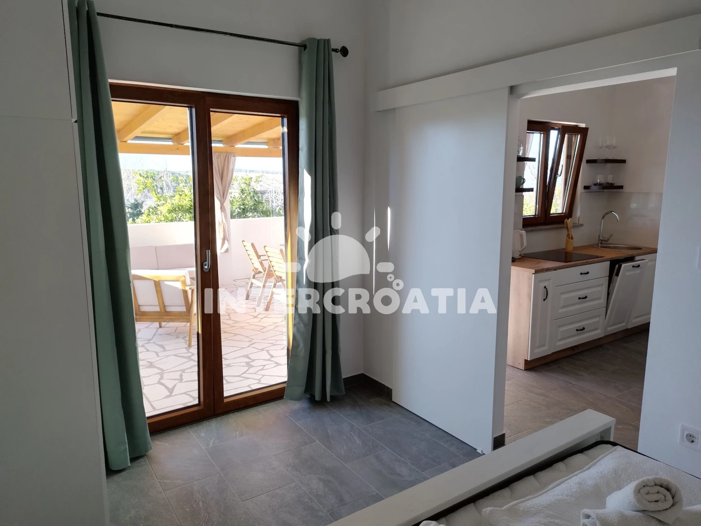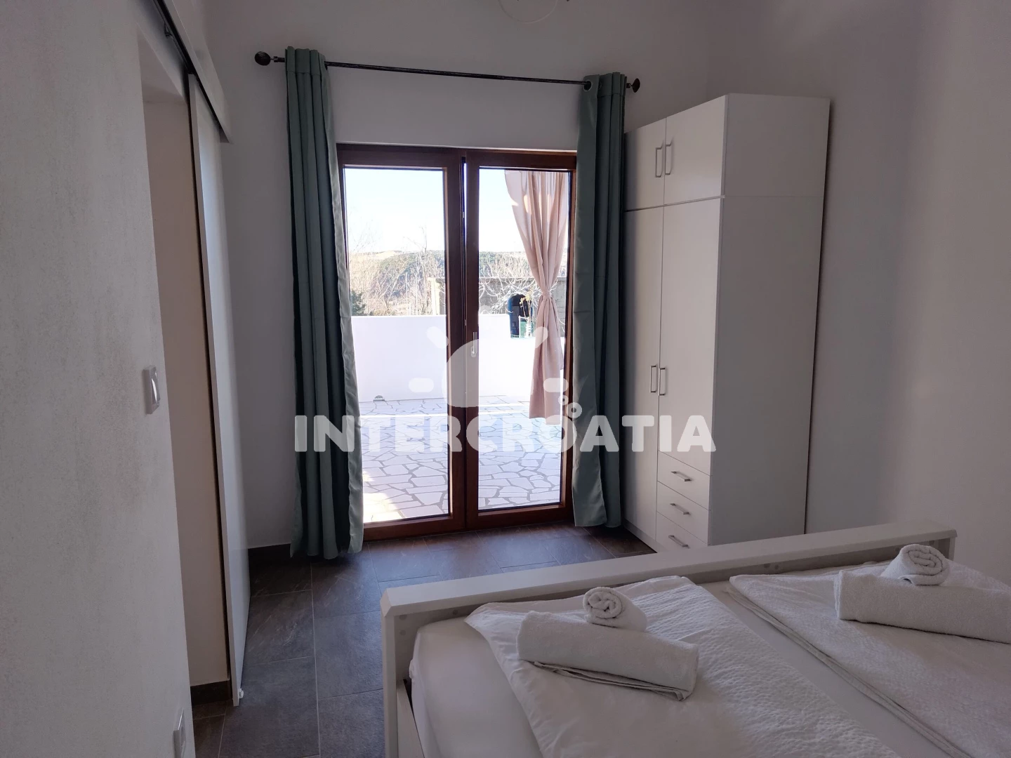 Vzdálenosti: Moře 540 m, pláž 1,2 km (písčitá a oblázková), supermarket 1 km, veřejná doprava 1 km, směnárna 1,1 km, centrum 1,3 km, diskotéka 1,3 km, restaurace 1,3 km, muzeum 1,4 km, bar 1,4 km, pošta 1,4 km, tenisové kurty 1,4 km, ambulance 1,4 km, lékárna 1,4 km, půjčovna motorových člunů 1,5 km, marina 1,5 km, čerpací stanice 2 km, mini golf 2 km, potápění 2 km, kotviště pro čluny 2 km, trajekt (Valbiska (Krk)) 2,5 km, banka 14 km, letiště (Rijeka) 54 km,
