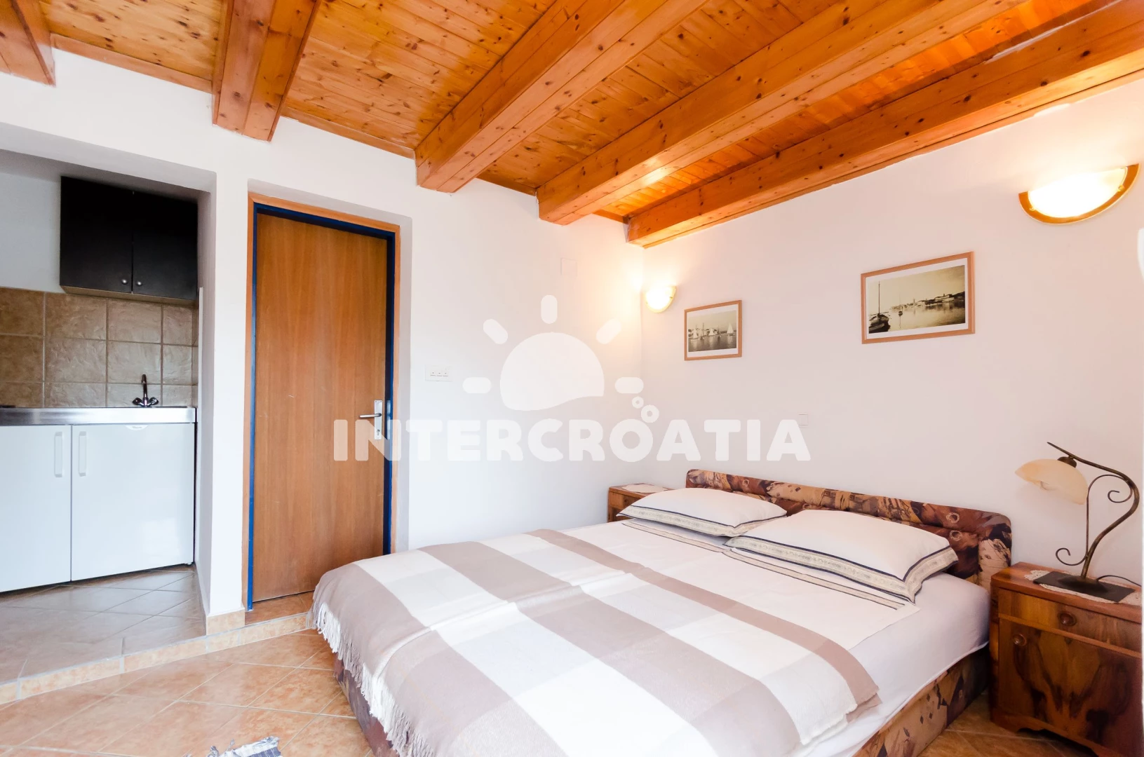 Domek se nachází 500 m od moře a pláže. Pláž je kamenné a betonové desky. U objektu je k dispozici společná zahrada s posezením a grilem. Parkování je před domem.