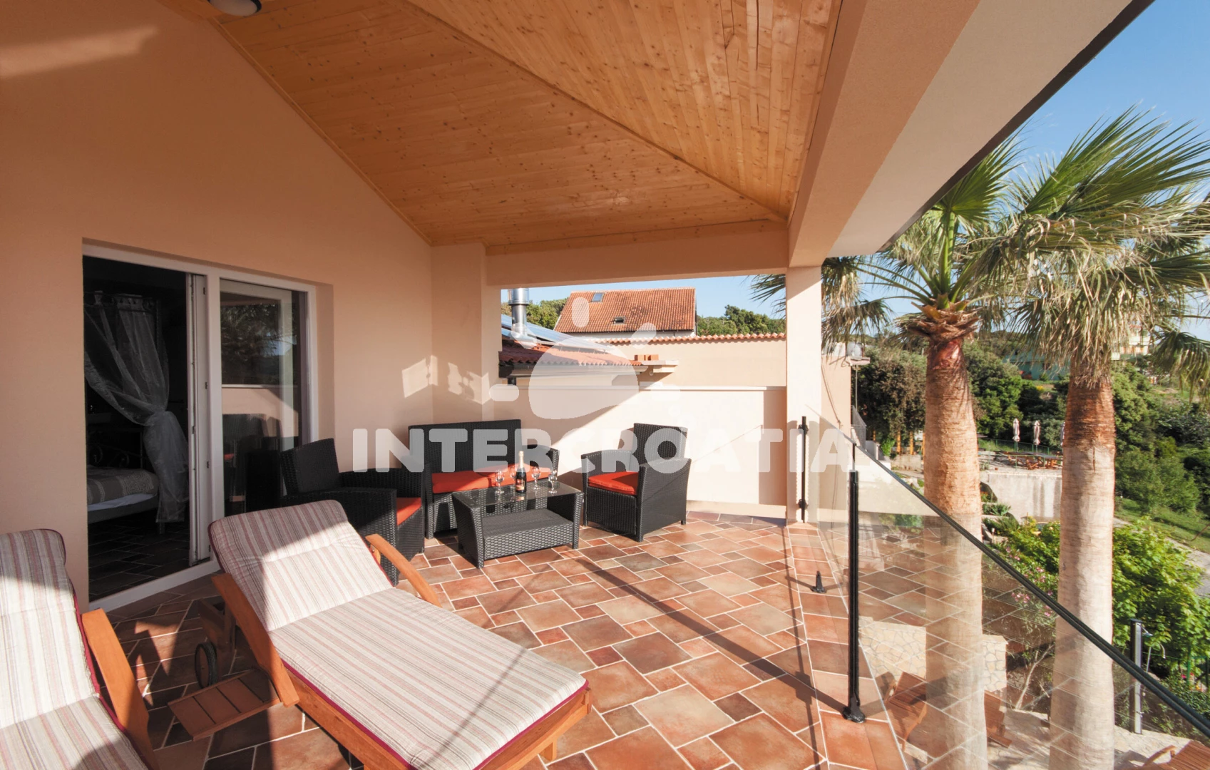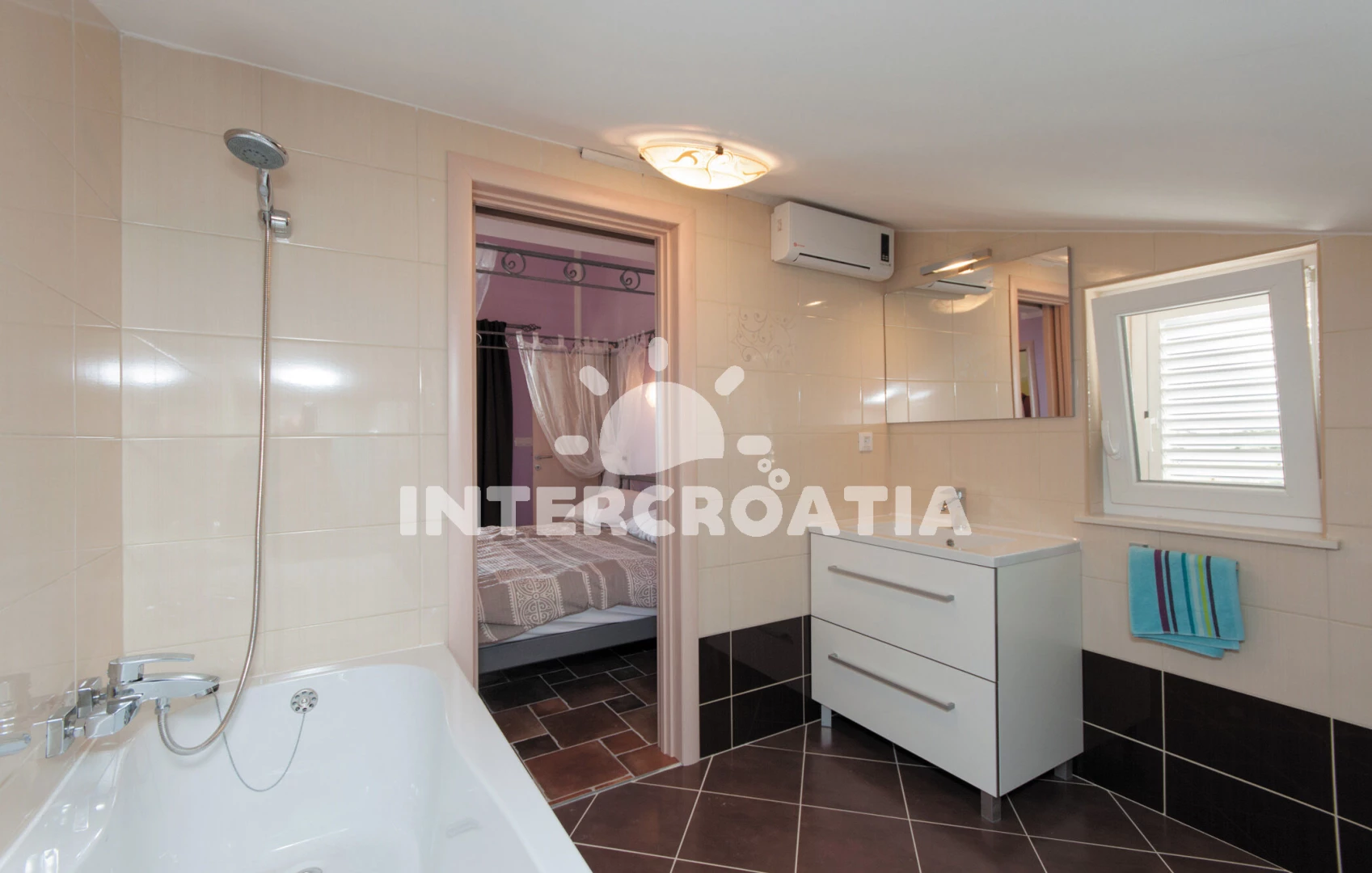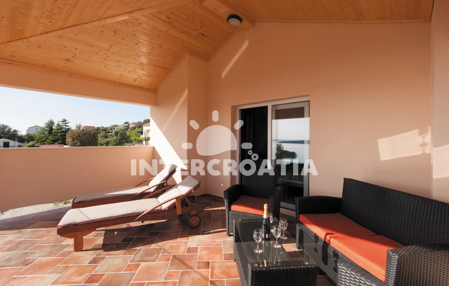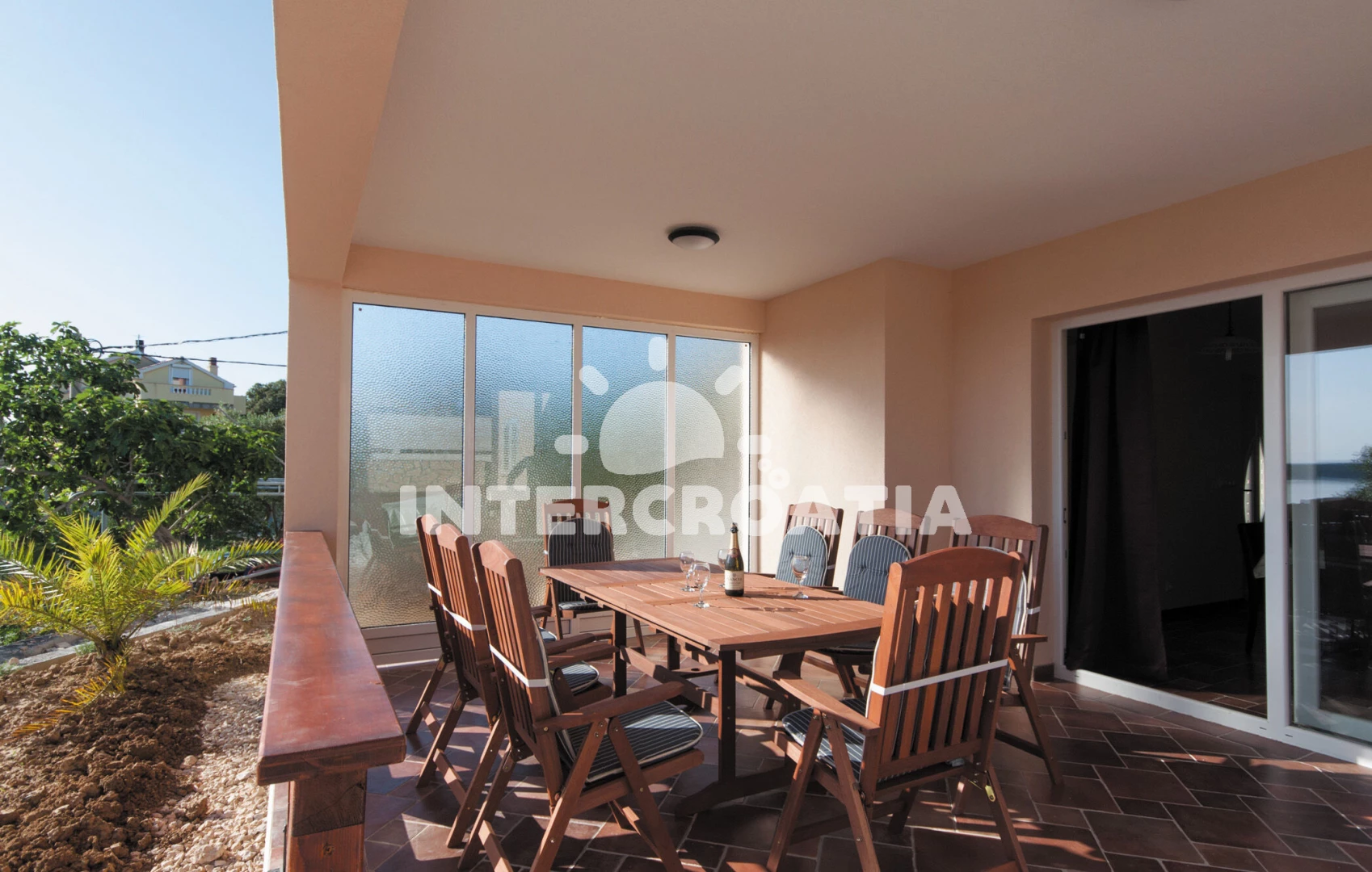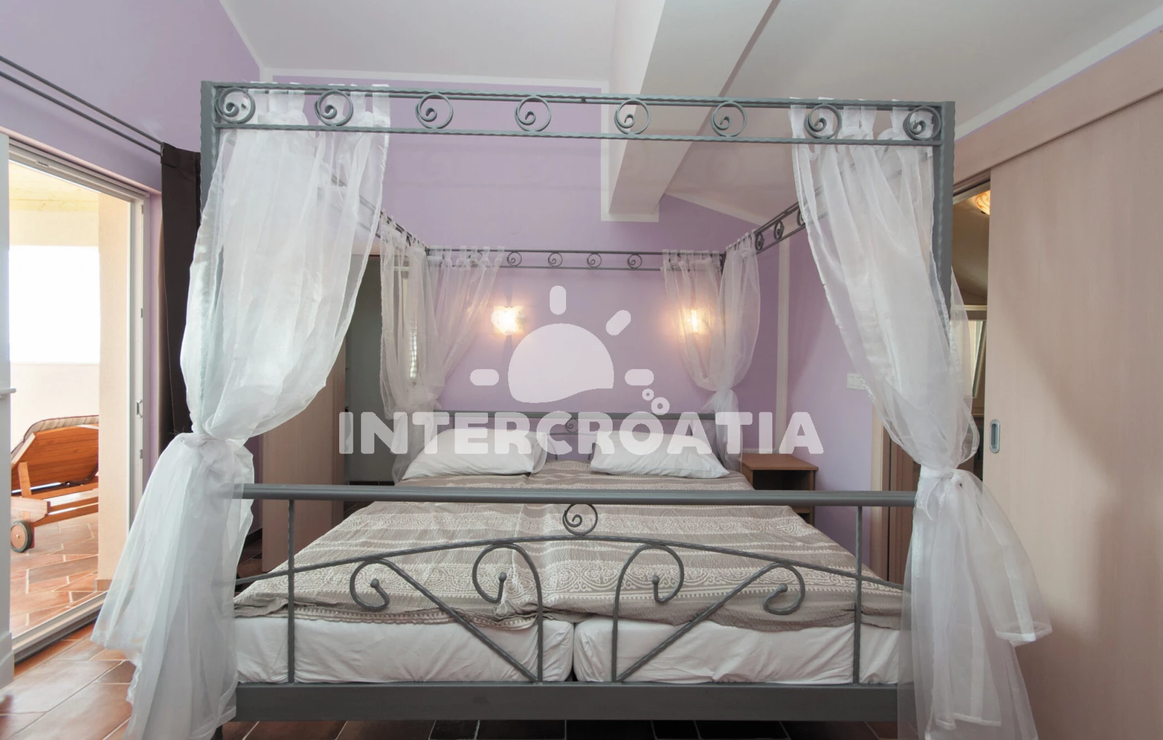Domek (130 m2) s výhledem na moře. Domek má 4 ložnice a je vhodný pro až 8 osob. Kuchyňská linka je vybavena varnou deskou, kávovarem, troubou, myčkou na nádobí, mikrovlnnou troubou, rychlovarnou konvicí, nádobím, lednicí, mrazákem. K dispozici televize se satelitním programem, žehlička. První ložnice s dvoulůžkem. Druhá ložnice s dvoulůžkem. Třetí ložnice s dvoulůžkem. Čtvrtá ložnice se 2 přistýlkami. Koupelna se sprchovým koutem, umyvadlem, fénem a WC. Druhá koupelna s vanou, umyvadlem, fénem a WC. Třetí koupelna s vanou, umyvadlem, fénem a WC. Čtvrtá koupelna s vanou, umyvadlem, fénem a WC.