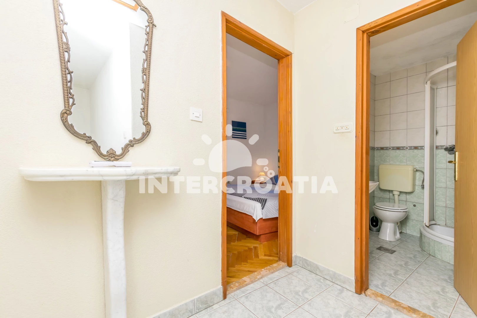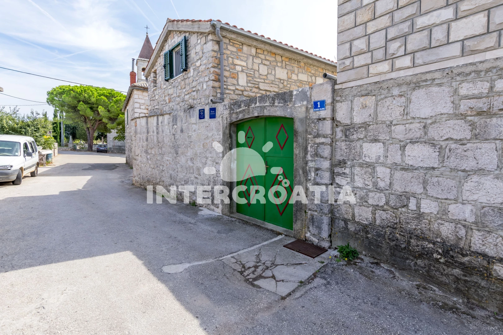 Vzdálenosti: Moře 1,5 km, pláž 2 km (skalnatá, oblázková, větší kamení a betonové desky), veřejná doprava 10 m, centrum 30 m, pošta 50 m, směnárna 100 m, restaurace 100 m, bar 100 m, supermarket 200 m, lékárna 300 m, ambulance 700 m, marina 1,4 km, čerpací stanice 1,5 km, trajekt (Rogač) 1,5 km, půjčovna kol 1,5 km, tenisové kurty 7 km, diskotéka 8 km,