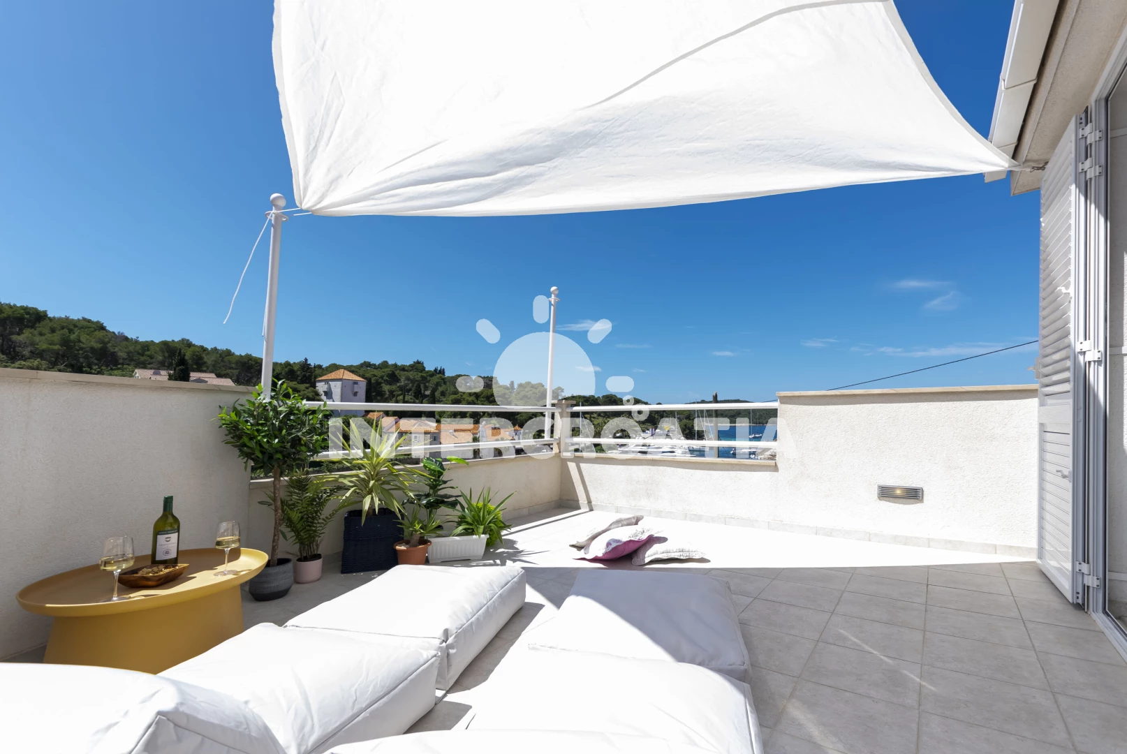 Domek (150 m2) s balkonem. Nachází se ve dvou patrech objektu. Domek má 1 ložnici a je vhodný pro až 6 osob. Kuchyňská linka je vybavena varnou deskou, troubou, kávovarem, myčkou na nádobí, mikrovlnnou troubou, rychlovarnou konvicí, nádobím, lednicí, mrazákem. K dispozici televize, žehlička. Koupelna se sprchovým koutem, umyvadlem, fénem a WC. Druhá koupelna s vanou, umyvadlem, fénem a WC.
