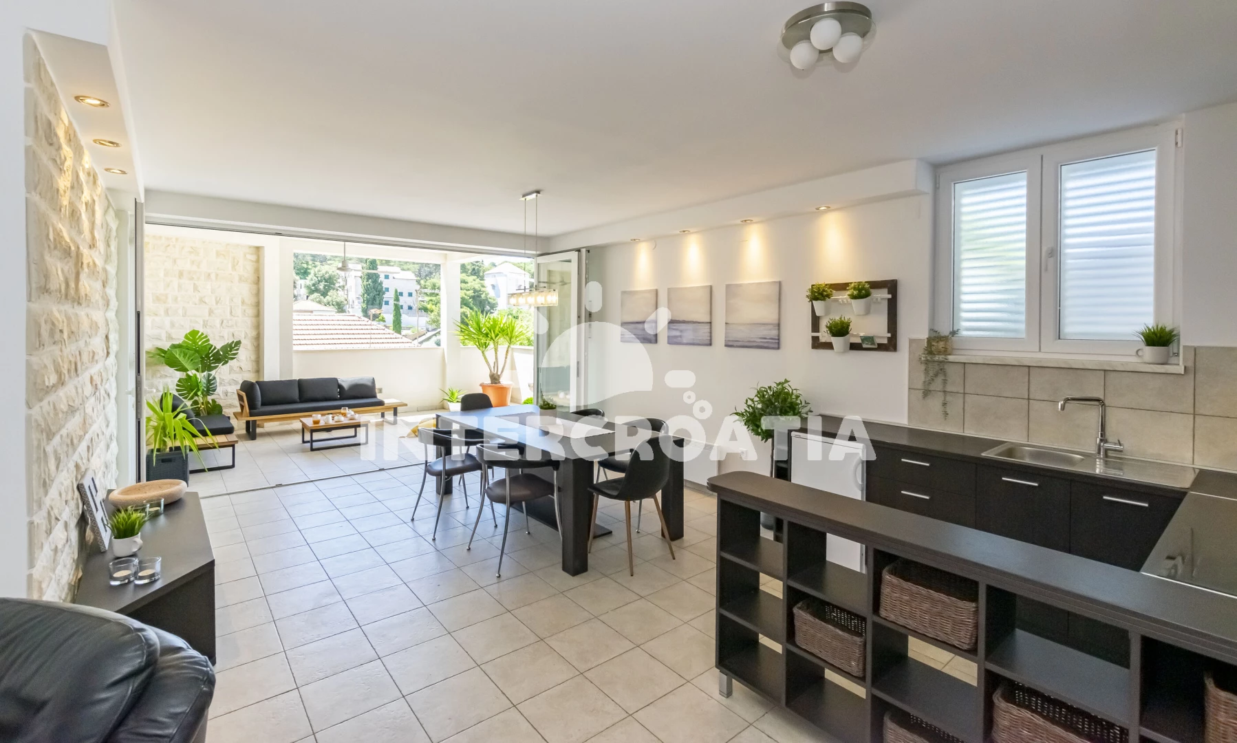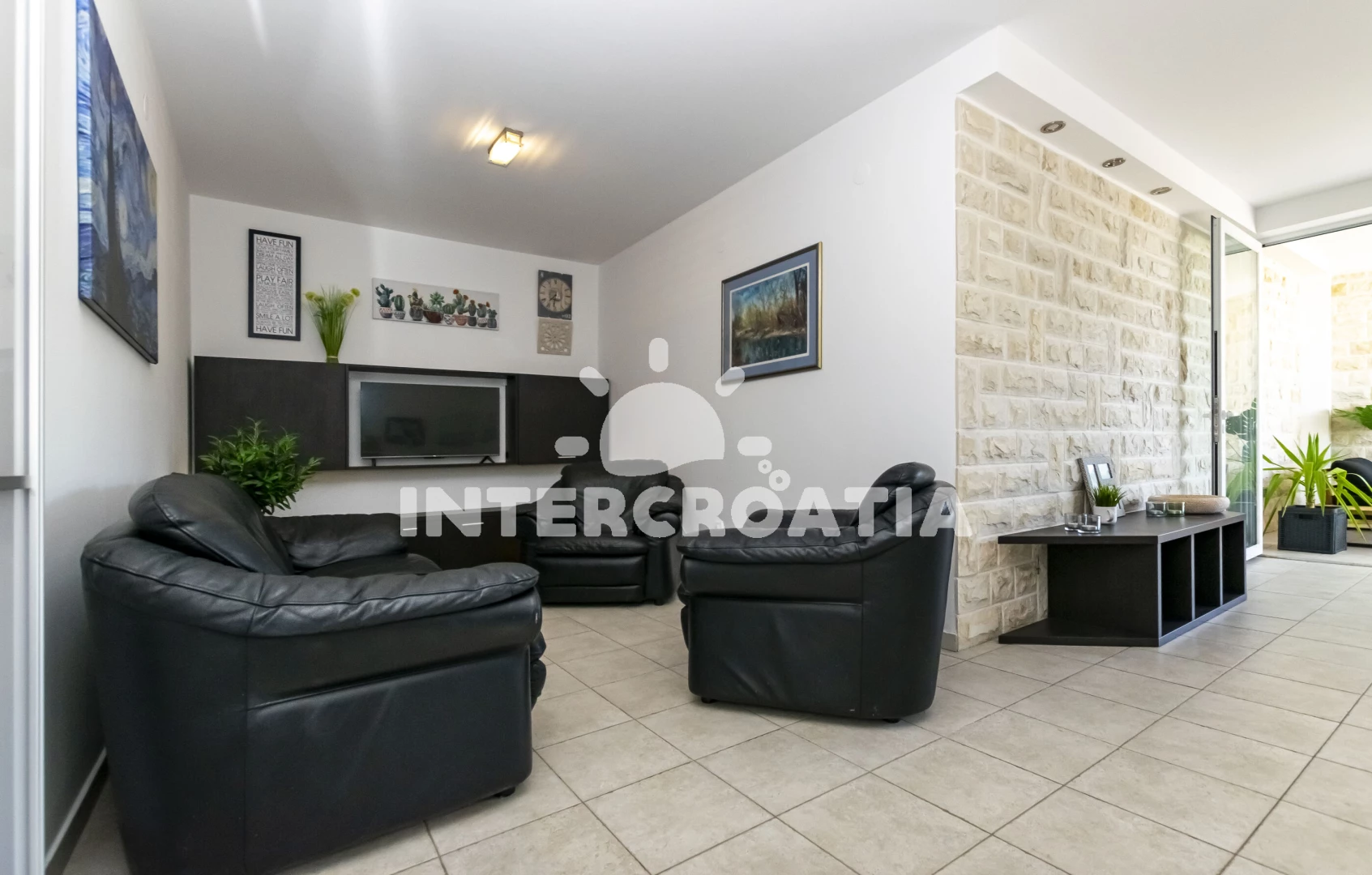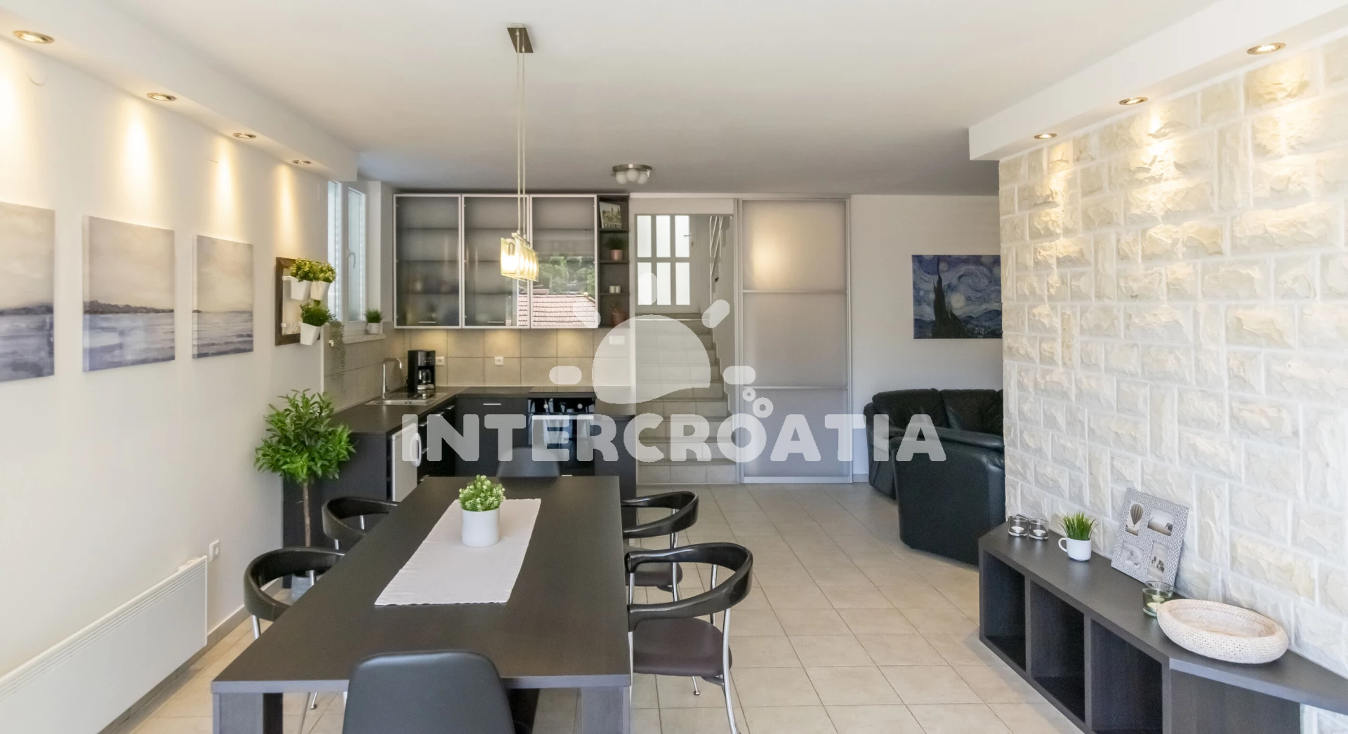 Vzdálenosti: Moře 50 m, pláž 150 m (oblázky), centrum 50 m, restaurace 50 m, bar 50 m, supermarket 100 m, trajekt (Rogač) 8 km, čerpací stanice 8 km, letiště (Split) 30 km,