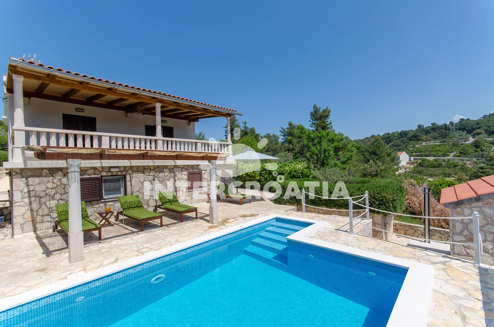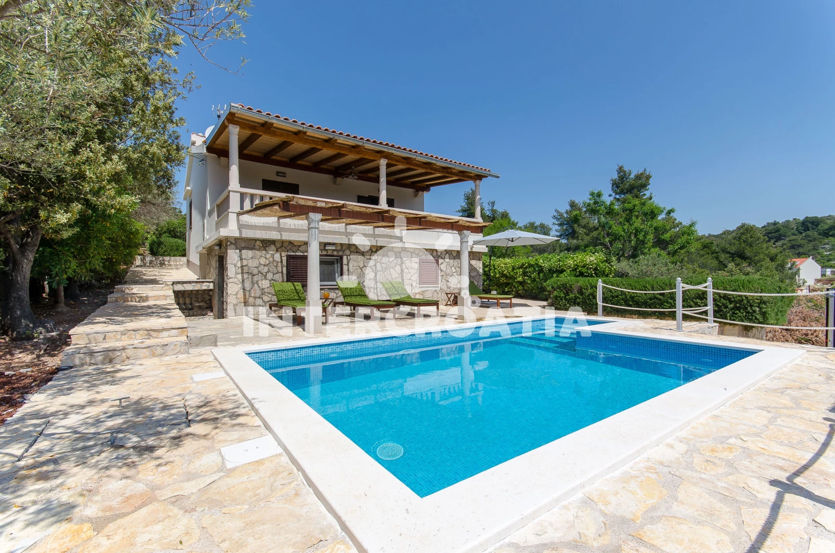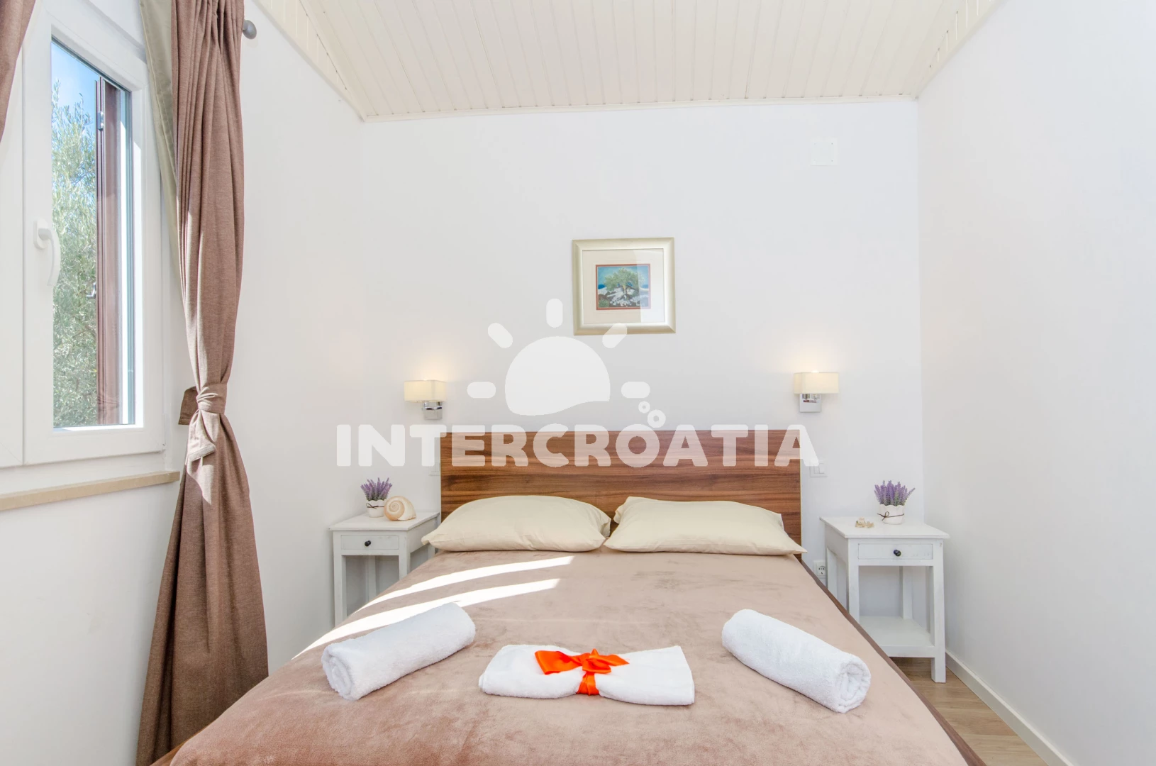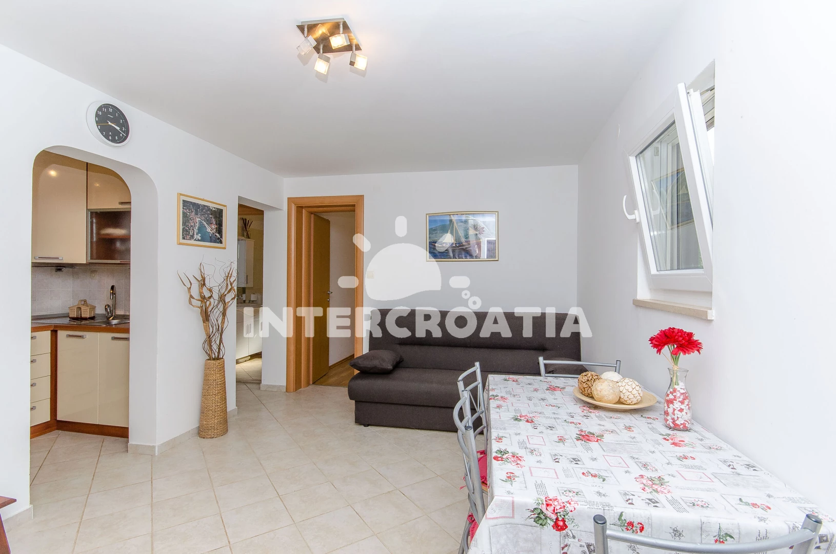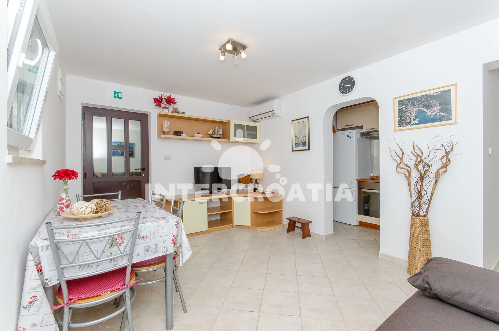 Vzdálenosti: Moře 150 m, pláž 600 m (oblázky), centrum 200 m, bar 300 m, marina 300 m, restaurace 300 m, kotviště pro čluny 300 m, supermarket 300 m, veřejná doprava 500 m, směnárna 500 m, půjčovna motorových člunů 500 m, půjčovna kol 500 m, pošta 6 km, lékárna 6 km, ambulance 6 km, čerpací stanice 8 km, trajekt (Rogač) 8 km,