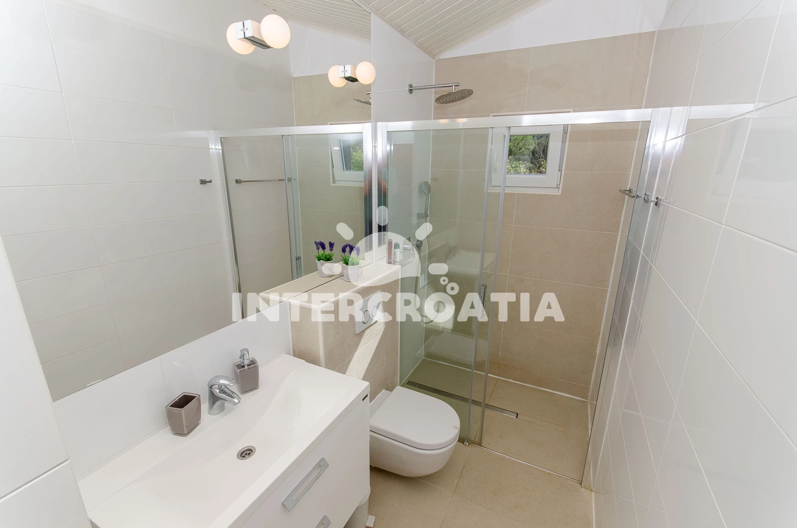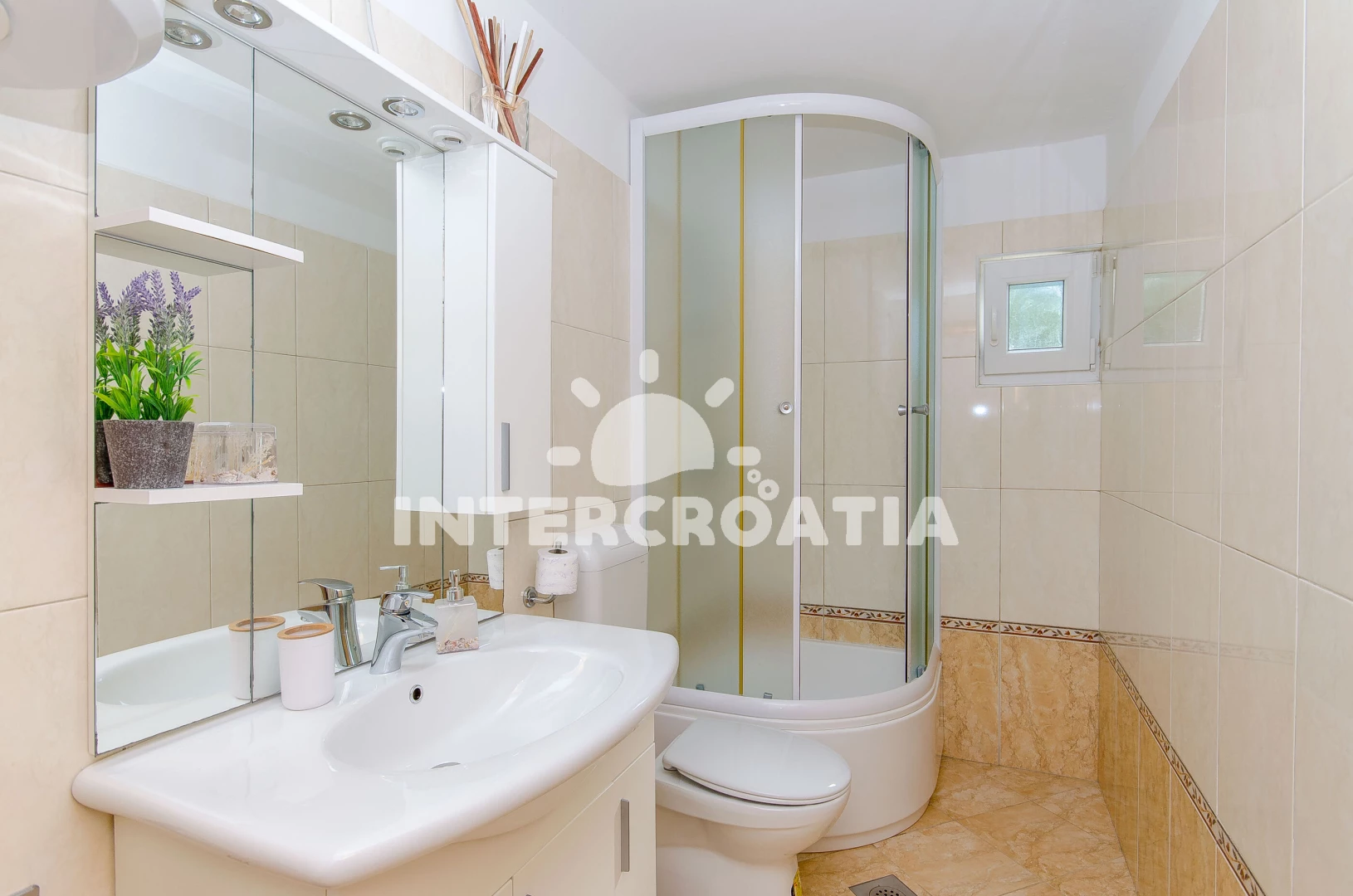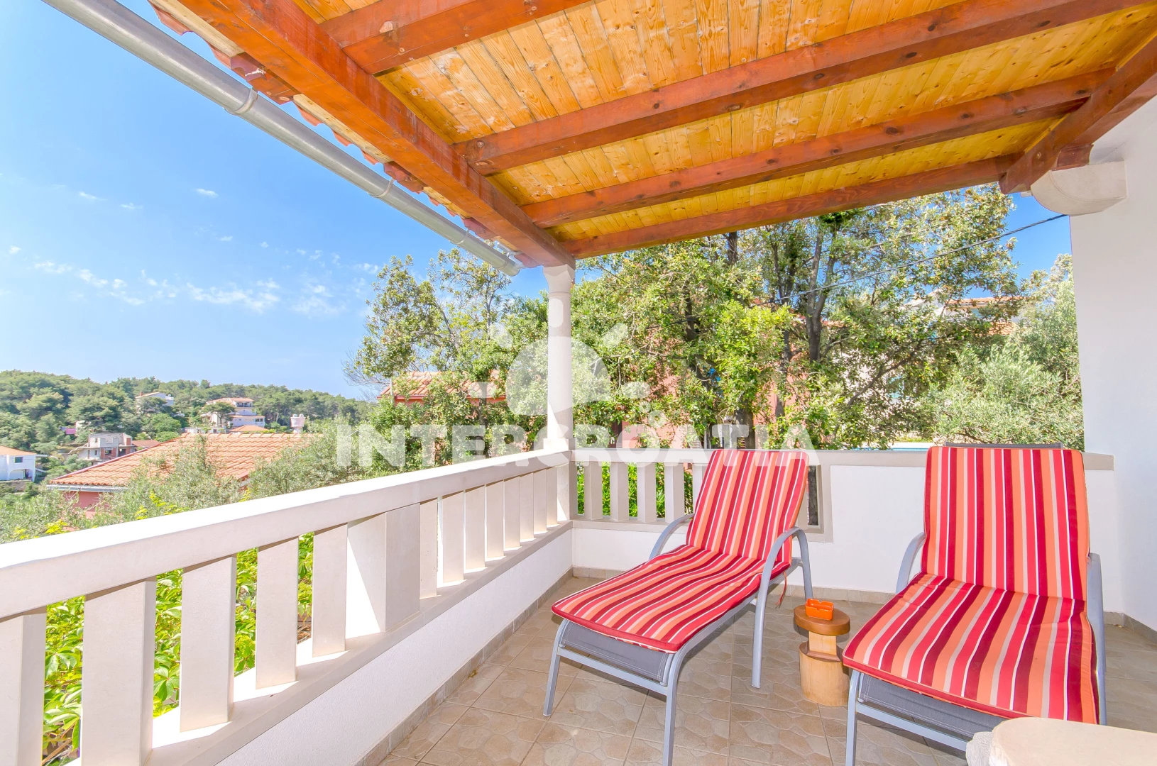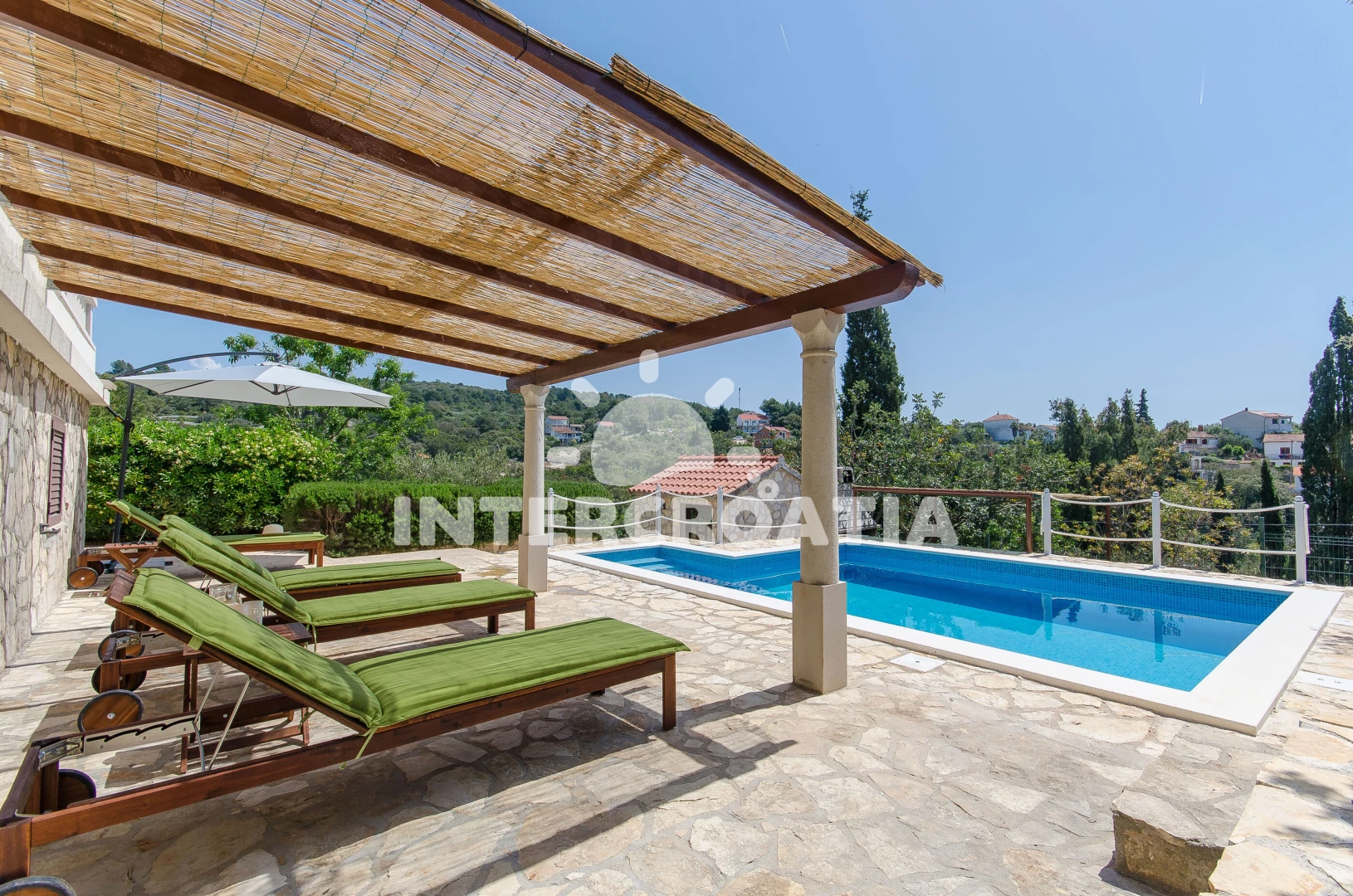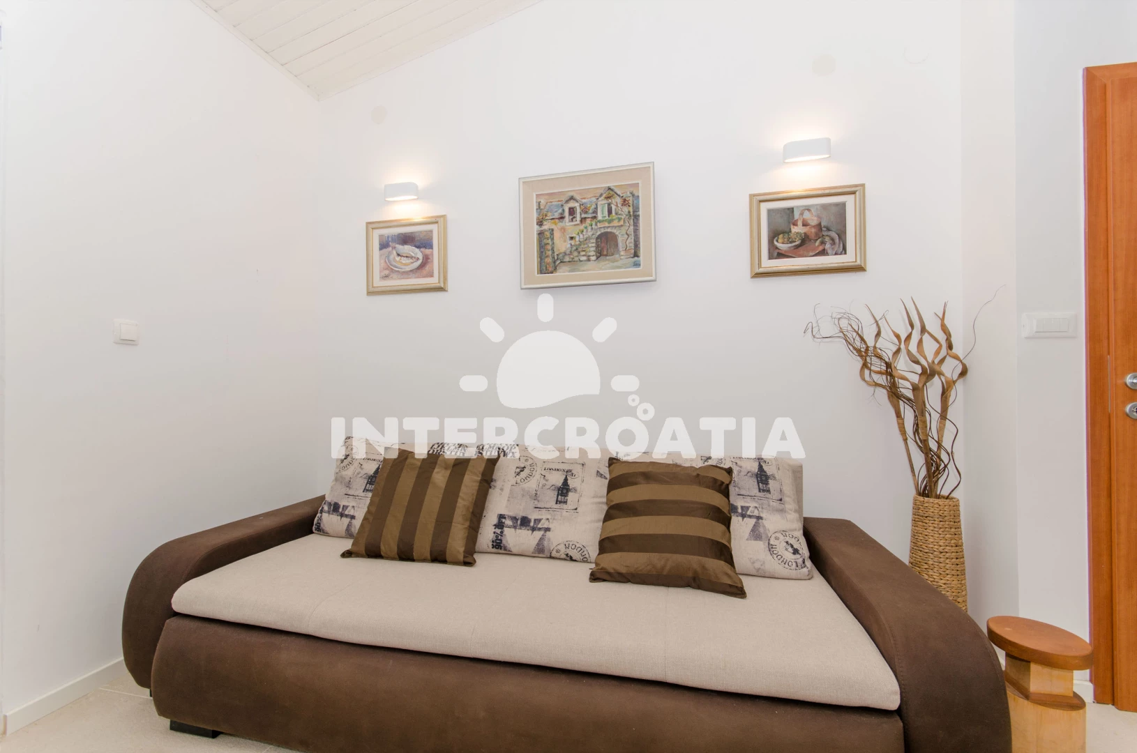 Vzdálenosti: Moře 150 m, pláž 600 m (oblázky), centrum 200 m, bar 300 m, marina 300 m, restaurace 300 m, kotviště pro čluny 300 m, supermarket 300 m, veřejná doprava 500 m, směnárna 500 m, půjčovna motorových člunů 500 m, půjčovna kol 500 m, pošta 6 km, lékárna 6 km, ambulance 6 km, čerpací stanice 8 km, trajekt (Rogač) 8 km,