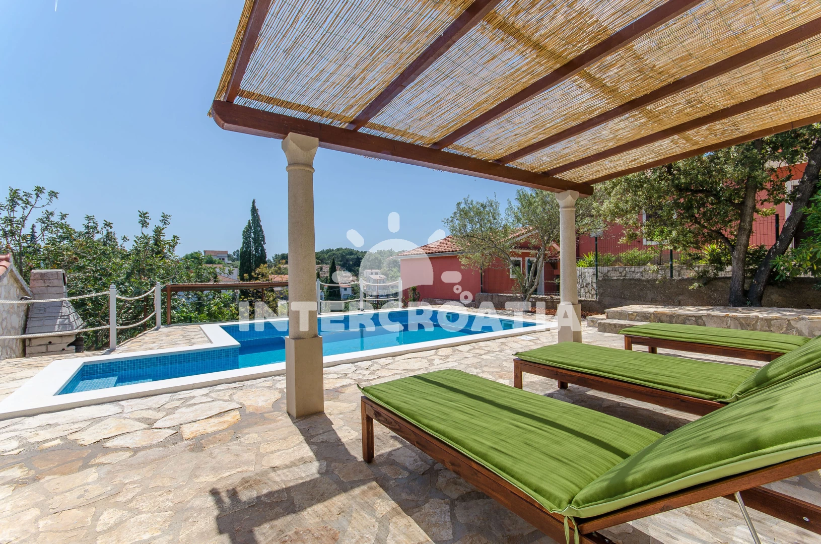 Domek se nachází 600 m od moře a pláže. Pláž je oblázková. Domek disponuje bazénem s lehátky pro ubytované hosty. U objektu je k dispozici společná zahrada s posezením a grilem. Parkování je před domem.