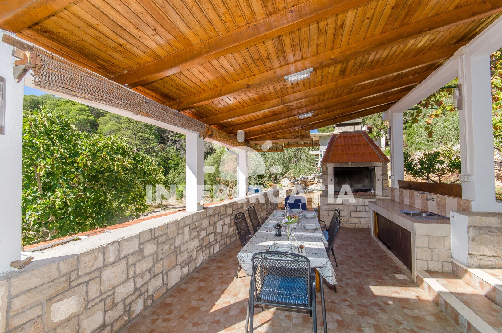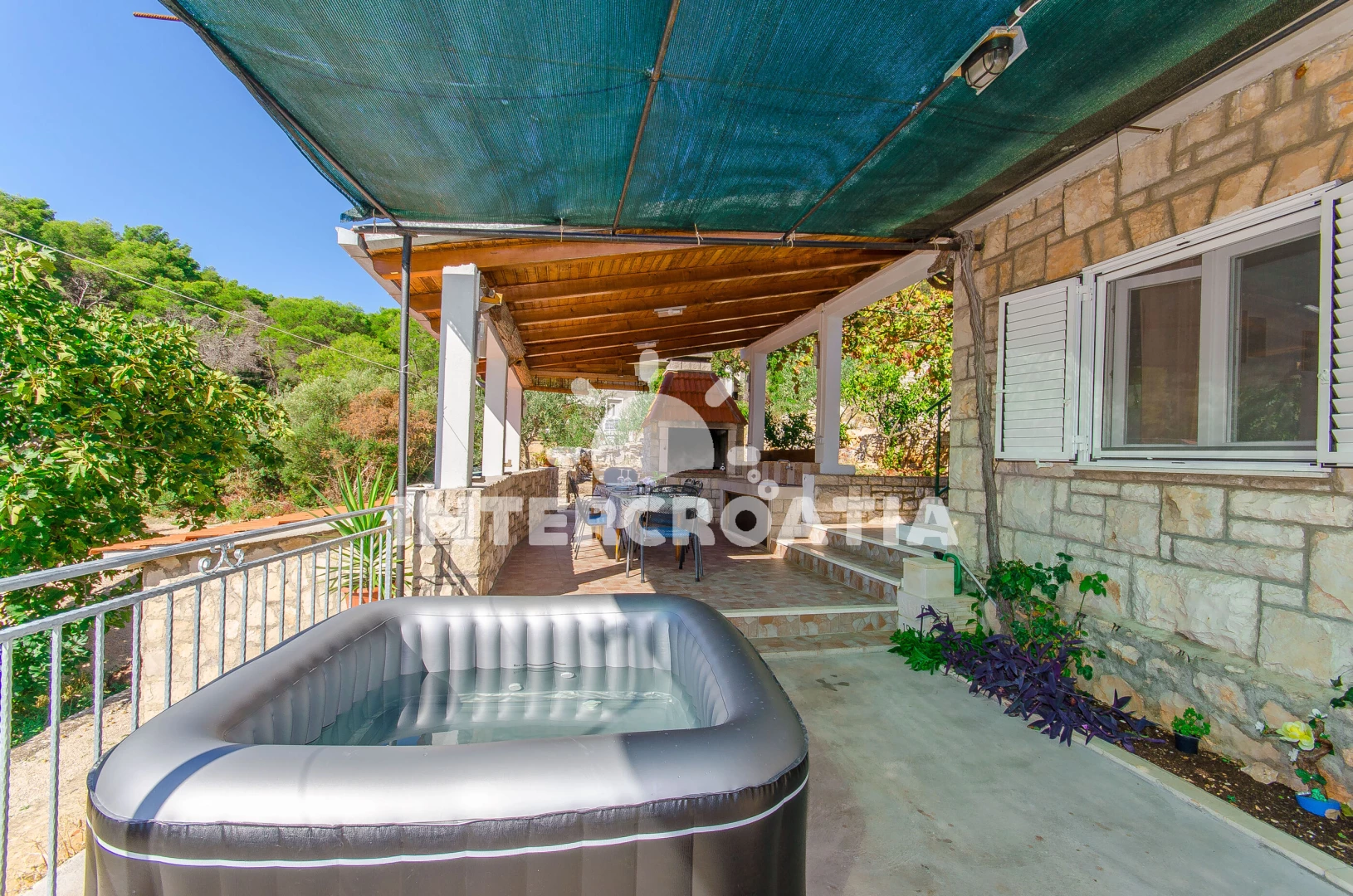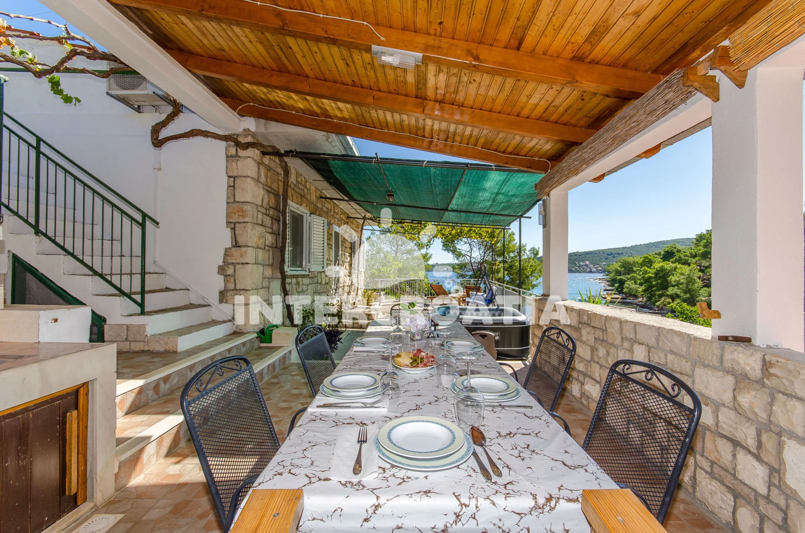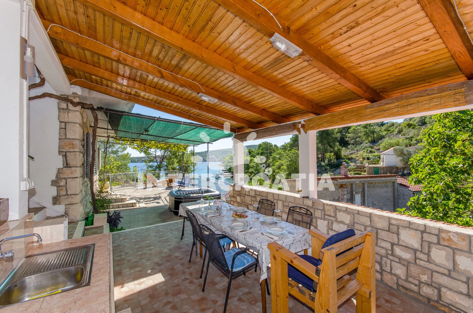 Vzdálenosti: Moře 30 m, pláž 30 m (oblázky), směnárna 2 km, ambulance 2 km, supermarket 2 km, lékárna 2 km, bar 2 km, veřejná doprava 2 km, centrum 2 km, restaurace 2 km, pošta 2 km, marina 3 km, půjčovna motorových člunů 3 km, půjčovna kol 3 km, čerpací stanice 3 km, potápění 3 km, trajekt (Rogač) 3 km, tenisové kurty 5 km,