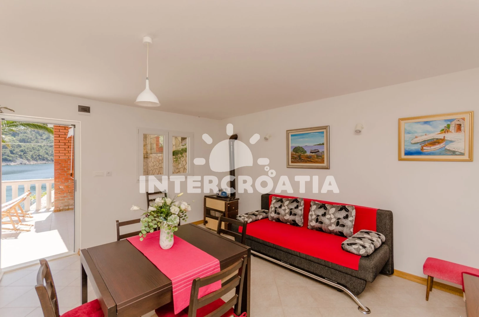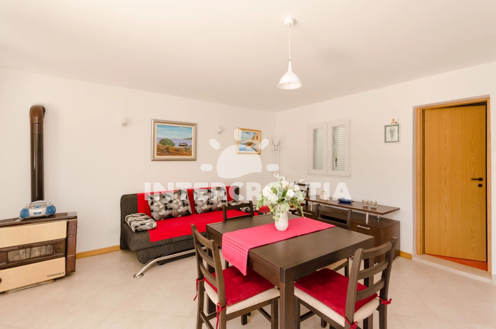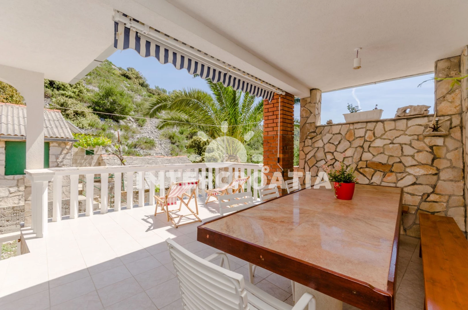 Vzdálenosti: Moře 30 m, pláž 30 m (písčitá, oblázková a skalnatá), kotviště pro čluny 25 m, centrum 2,5 km, supermarket 2,5 km, veřejná doprava 2,5 km, bar 2,5 km, restaurace 2,5 km, pošta 5,5 km, diskotéka 8,5 km, lékárna 10 km, ambulance 10 km, směnárna 10 km, trajekt (Rogač) 11 km, čerpací stanice 11 km,