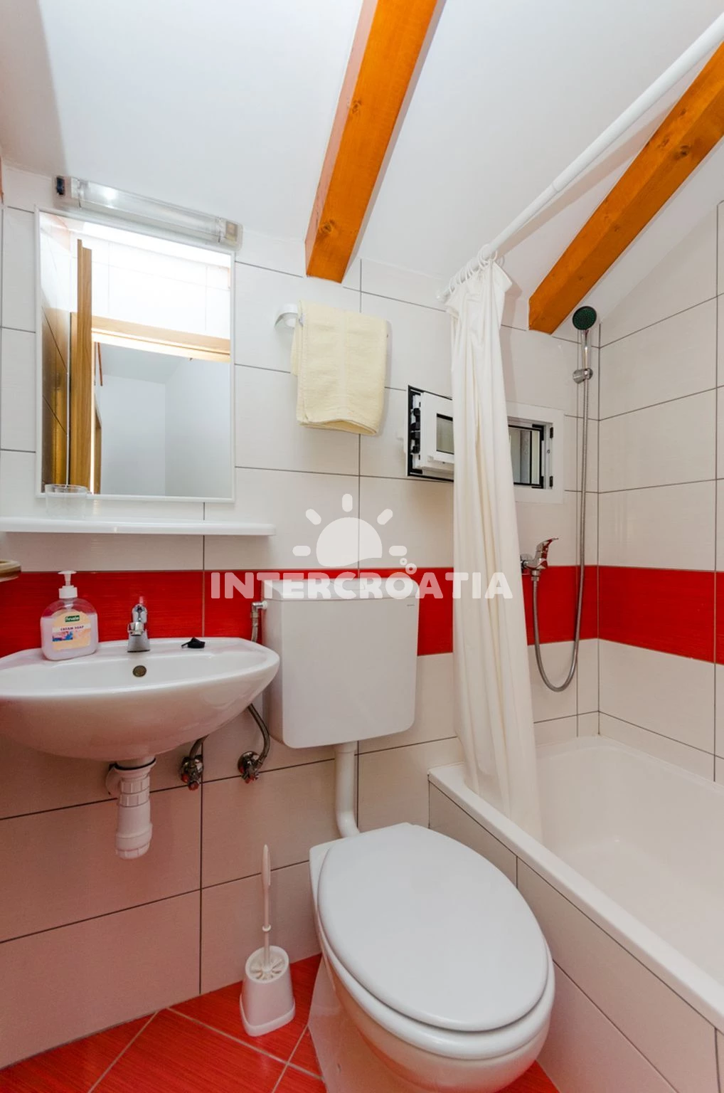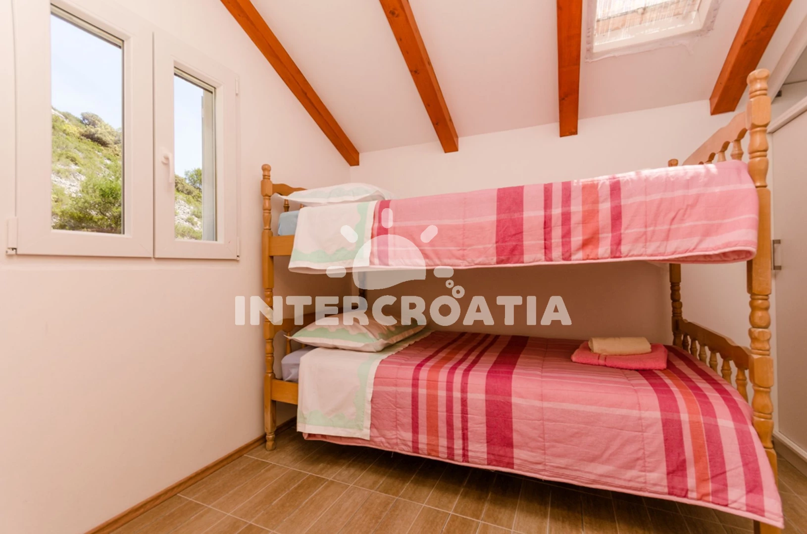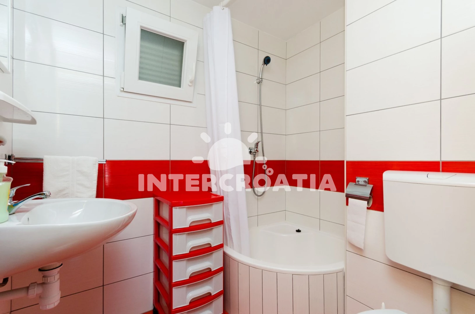 Vzdálenosti: Moře 30 m, pláž 30 m (písčitá, oblázková a skalnatá), kotviště pro čluny 25 m, centrum 2,5 km, supermarket 2,5 km, veřejná doprava 2,5 km, bar 2,5 km, restaurace 2,5 km, pošta 5,5 km, diskotéka 8,5 km, lékárna 10 km, ambulance 10 km, směnárna 10 km, trajekt (Rogač) 11 km, čerpací stanice 11 km,