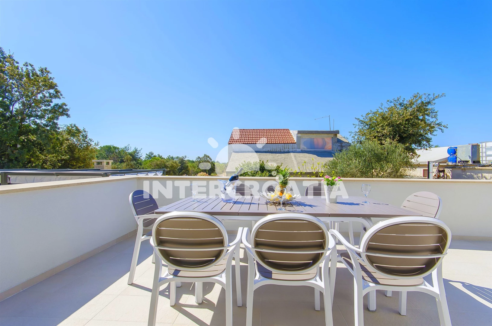 Domek se nachází od moře a pláže. Pláž je . Domek disponuje bazénem s lehátky pro ubytované hosty. U objektu je k dispozici společná zahrada s posezením a grilem. Parkování je .