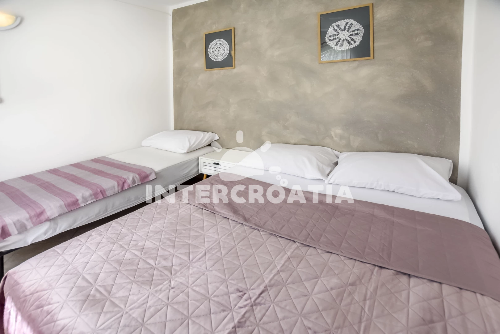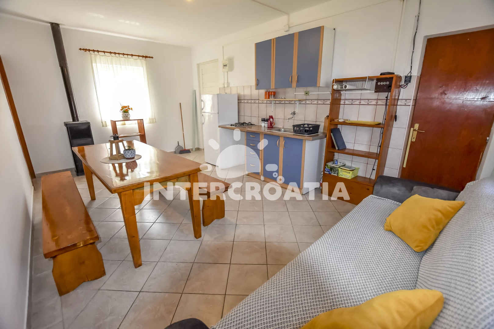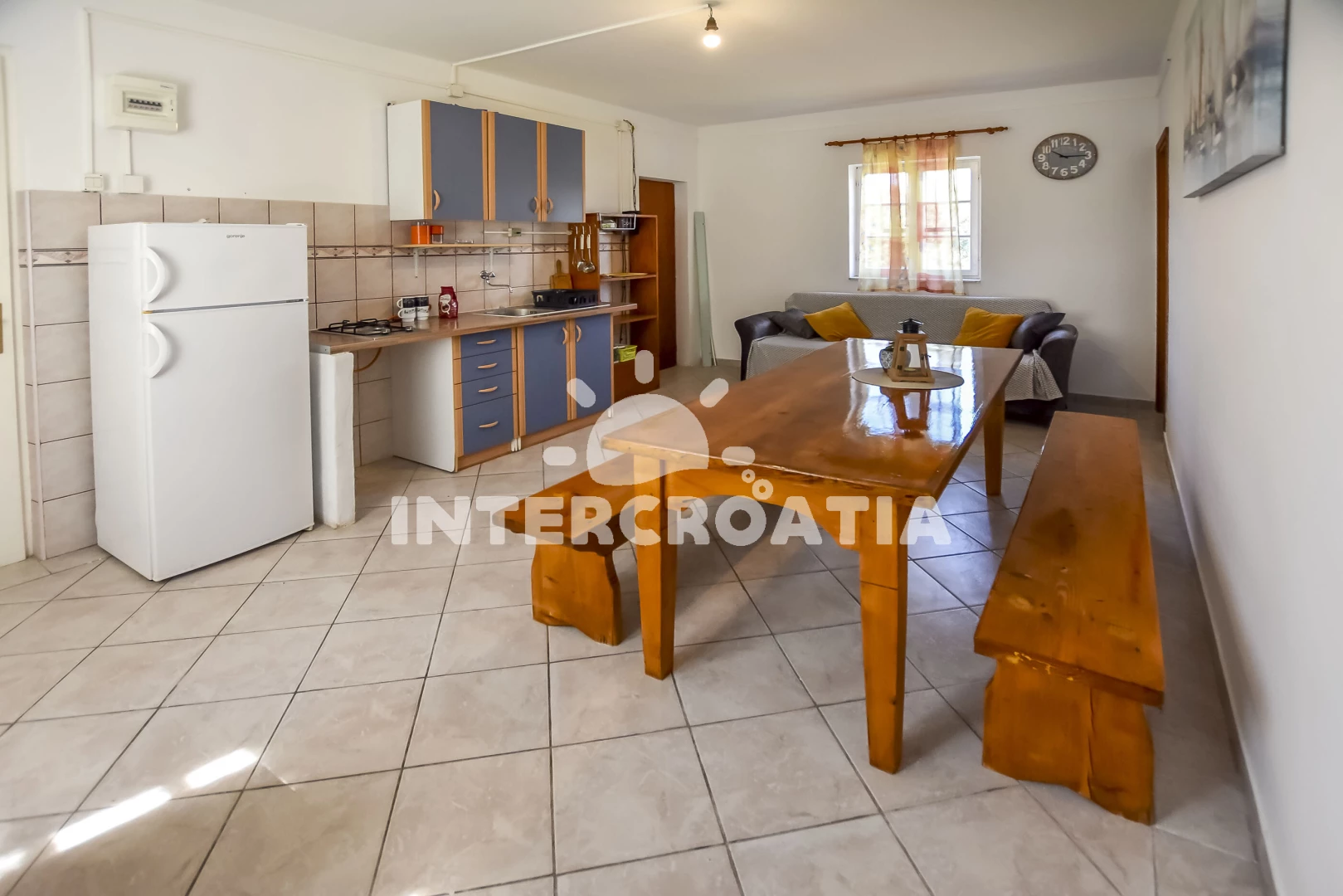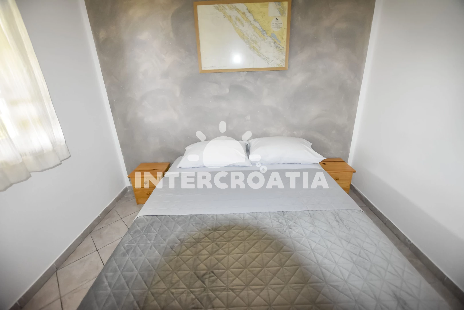 Vzdálenosti: Moře 15 m, pláž 15 m (oblázková a větší kamení), bar 10 m, restaurace 10 m, centrum 8 km, supermarket 8 km, veřejná doprava 8 km, trajekt (Tkon) 8 km, lékárna 8 km, ambulance 8 km, směnárna 8 km, čerpací stanice 11 km, park Plitvice 20 km, letiště (Zadar) 40 km,
