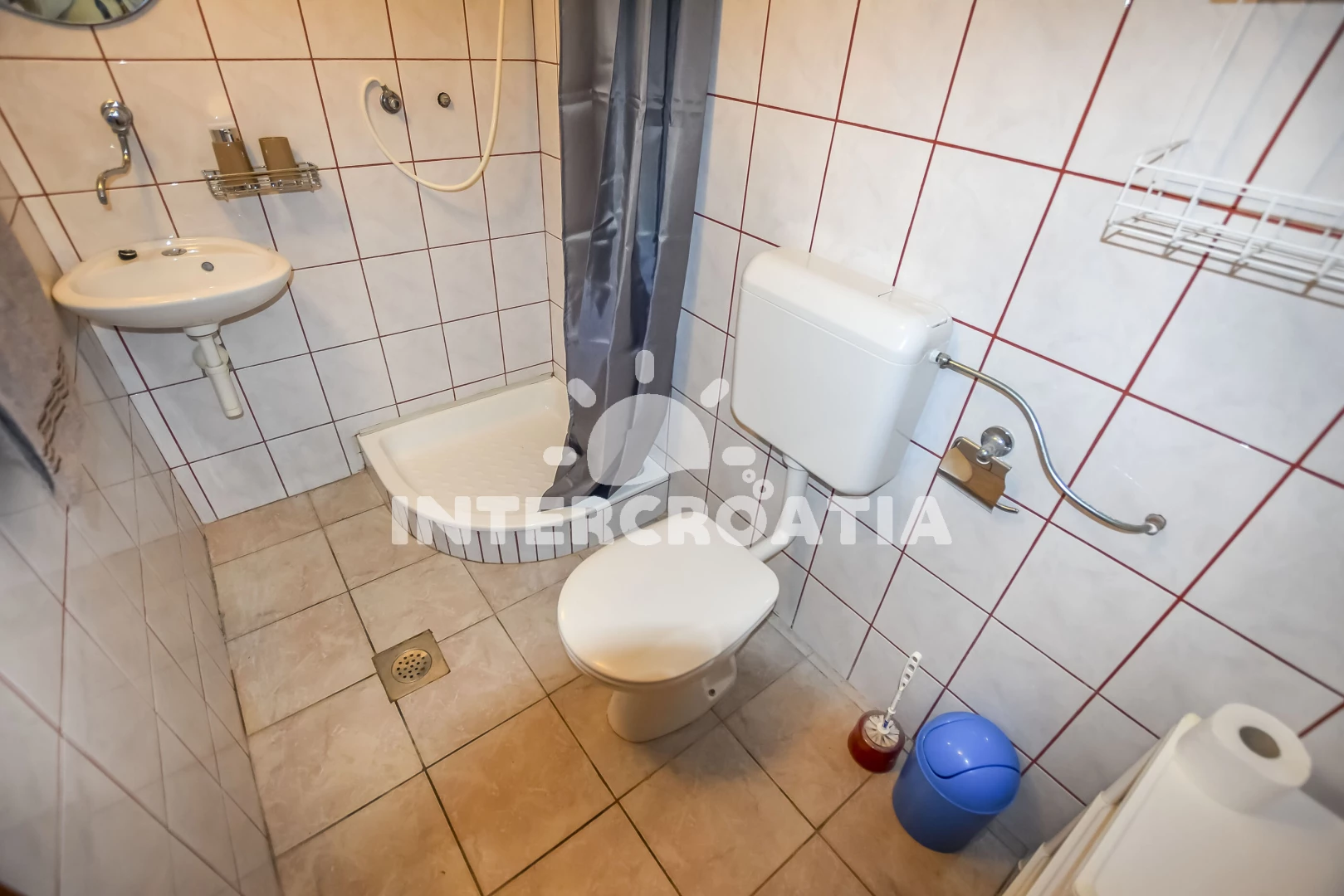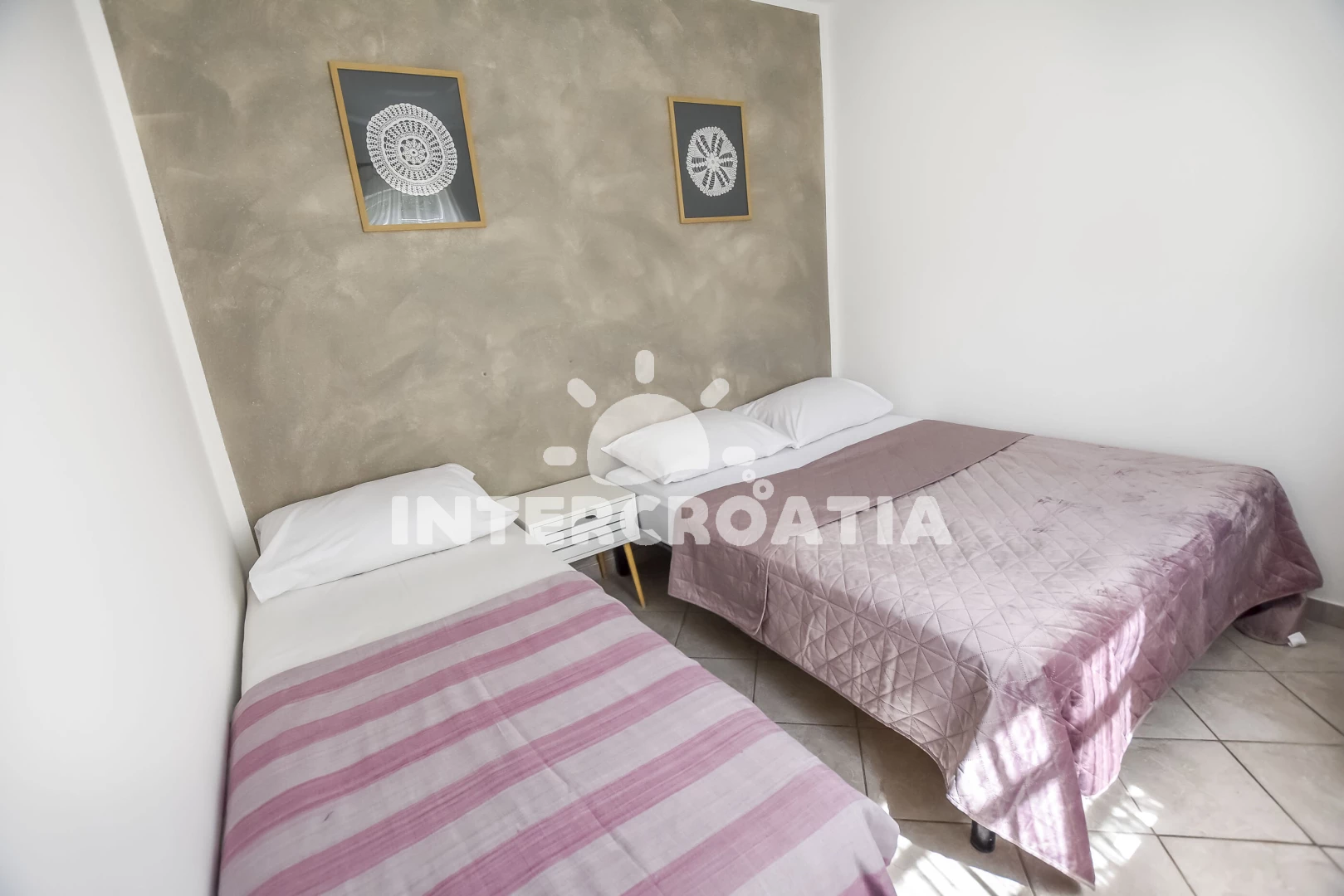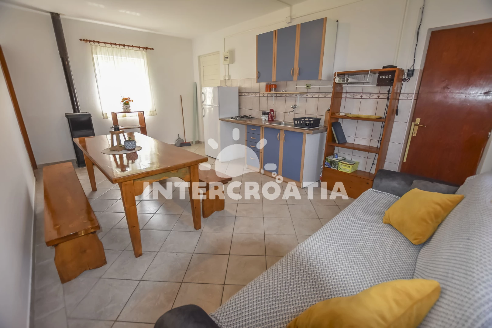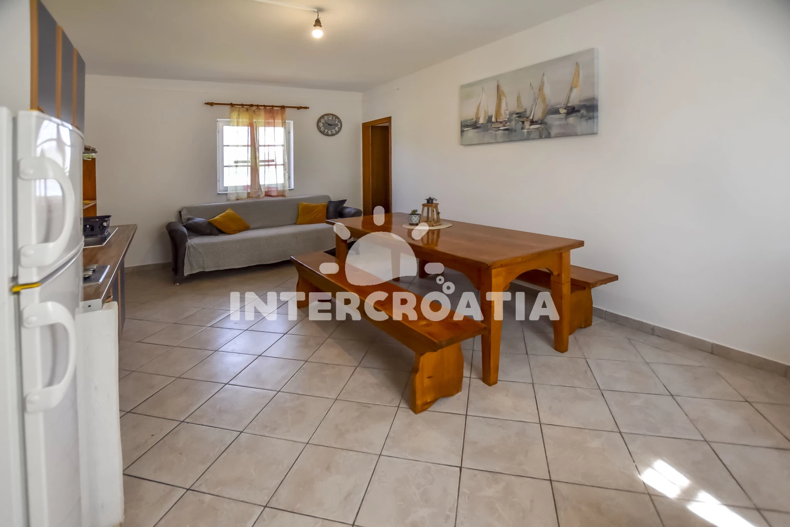 Vzdálenosti: Moře 15 m, pláž 15 m (oblázková a větší kamení), bar 10 m, restaurace 10 m, centrum 8 km, supermarket 8 km, veřejná doprava 8 km, trajekt (Tkon) 8 km, lékárna 8 km, ambulance 8 km, směnárna 8 km, čerpací stanice 11 km, park Plitvice 20 km, letiště (Zadar) 40 km,