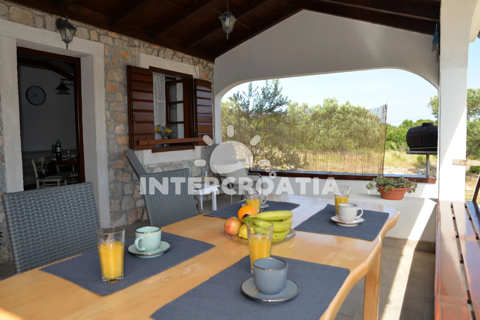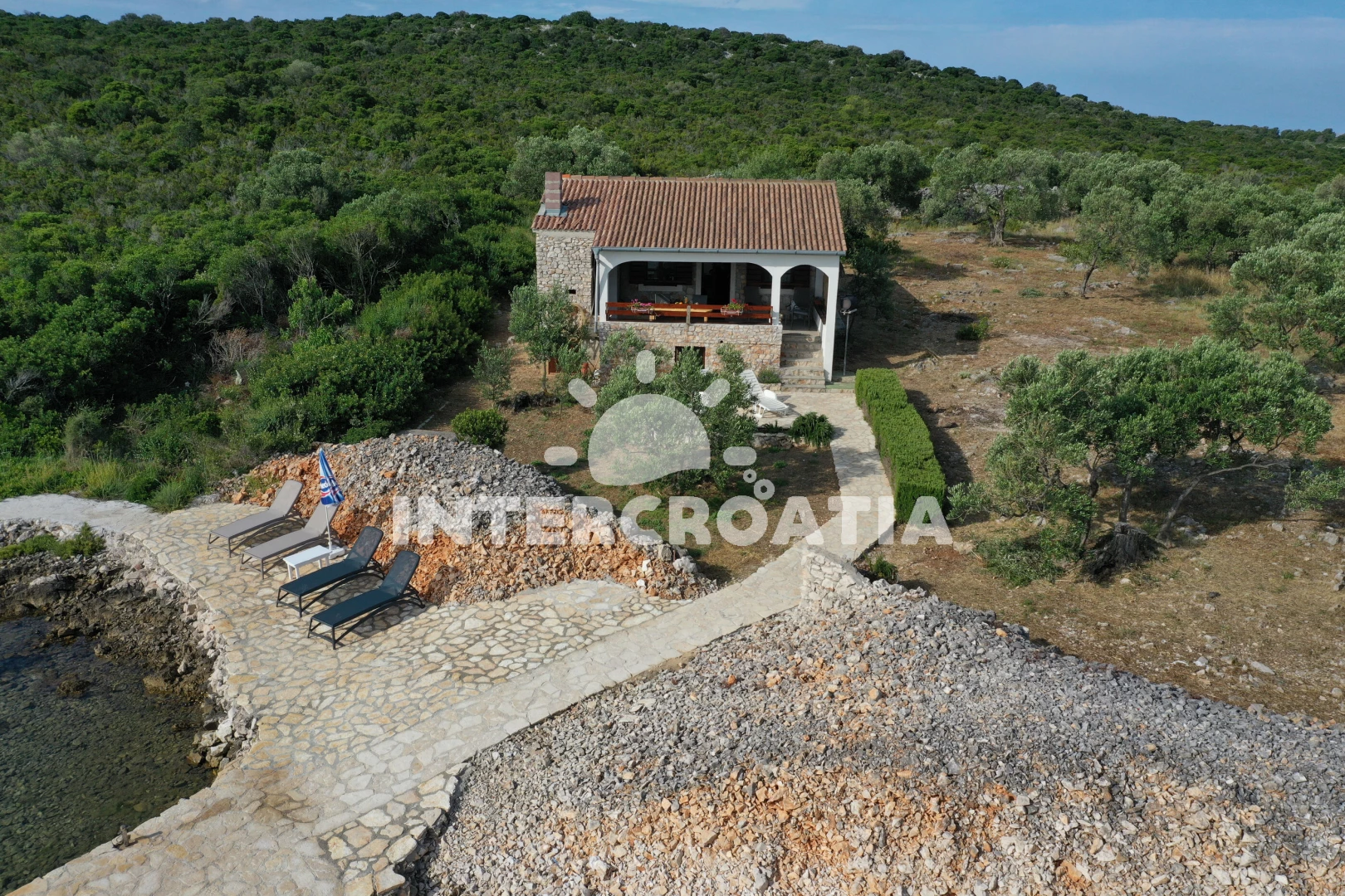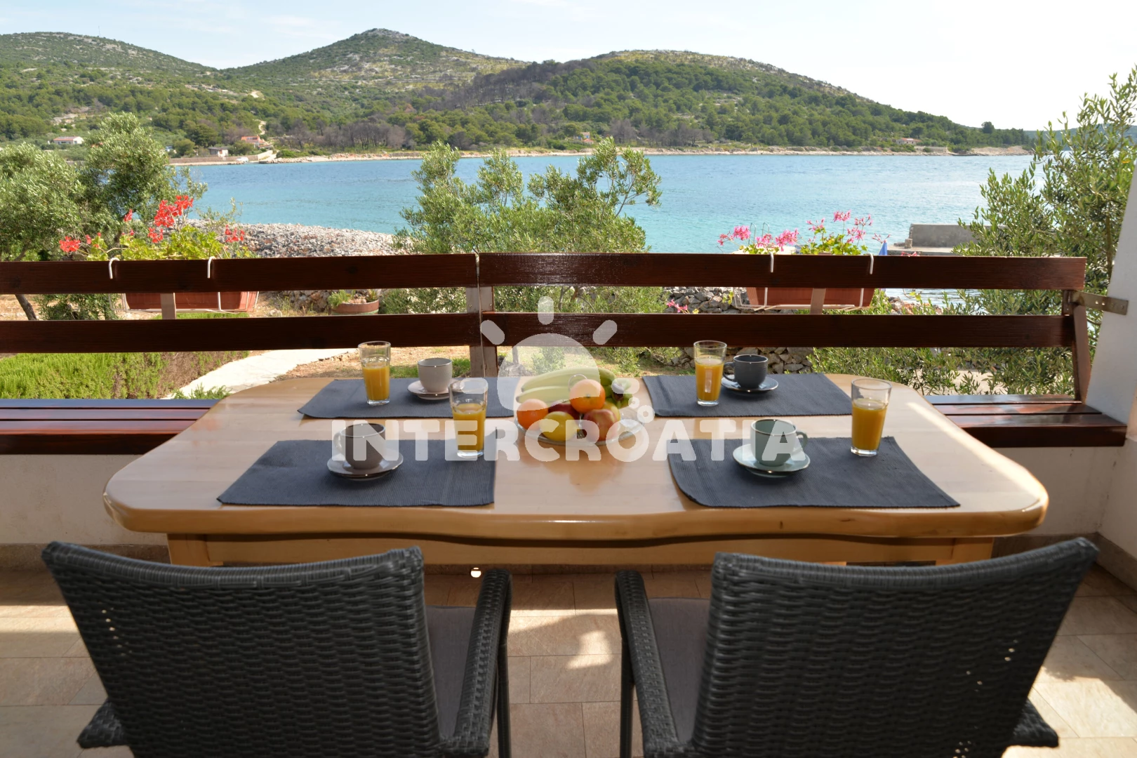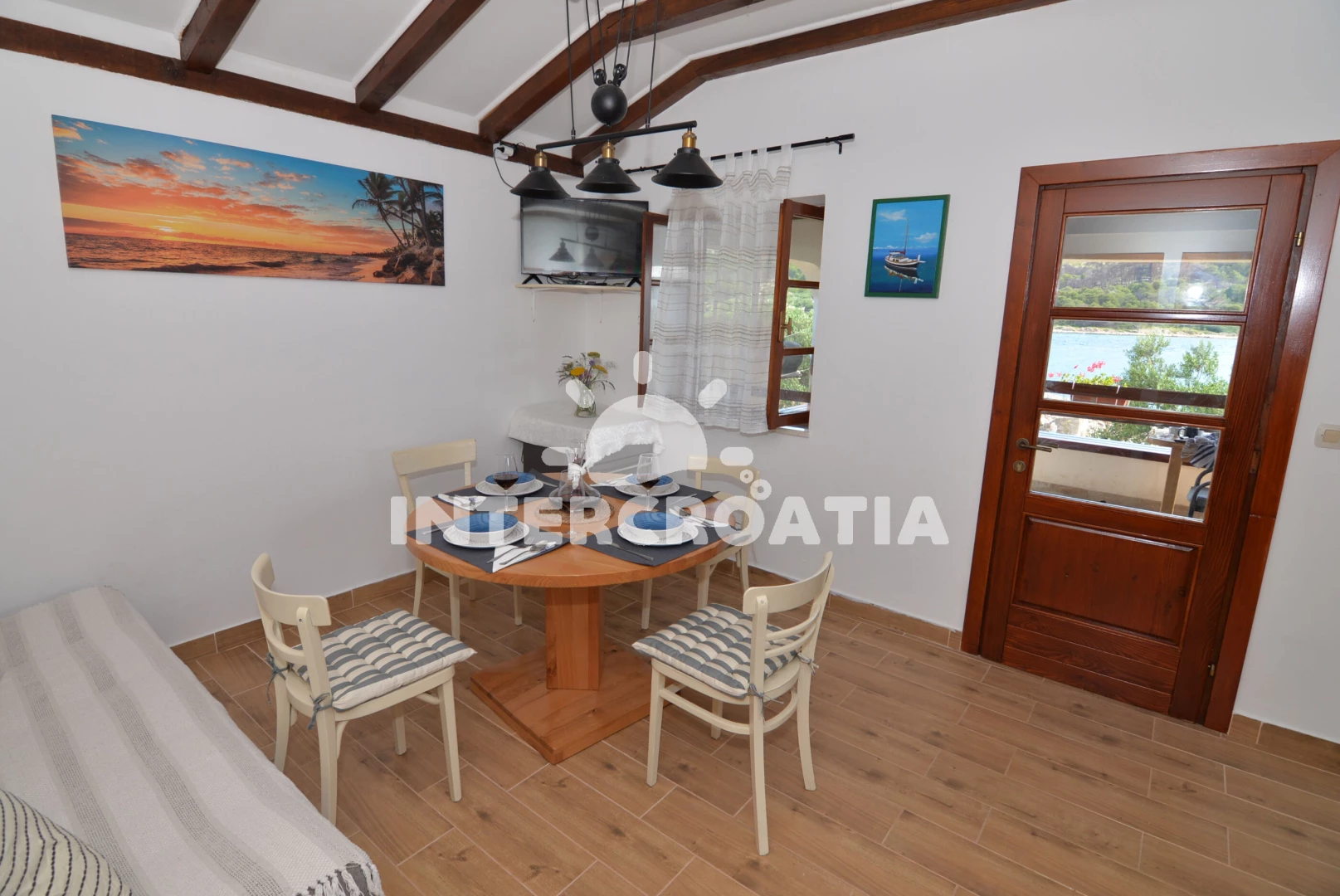 Vzdálenosti: Moře 20 m, pláž 20 m (větší kamení), kotviště pro čluny 20 m, restaurace 300 m, centrum 8 km, trajekt (Tkon) 8 km, lékárna 8 km, ambulance 8 km, pošta 8 km, směnárna 8 km, bar 8 km, supermarket 8 km, čerpací stanice 9 km, letiště (Zadar) 45 km,