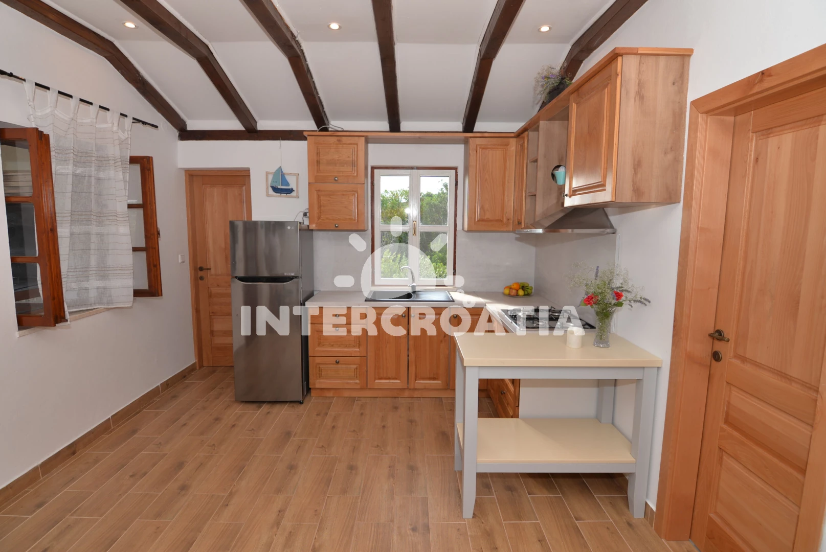 Domek se nachází 20 m od moře a pláže. Pláž je větší kamení. U objektu je k dispozici společná zahrada s posezením a grilem. Parkování je 150m - 300 m od domu.