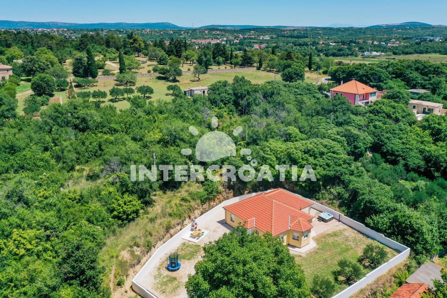 Vzdálenosti: Moře 16 km, pláž 20 km (písčitá, oblázková a skalnatá), centrum 1,3 km, bar 1,3 km, restaurace 1,3 km, lékárna 1,4 km, ambulance 1,4 km, banka 1,4 km, supermarket 1,7 km, letiště (Zadar) 27 km,