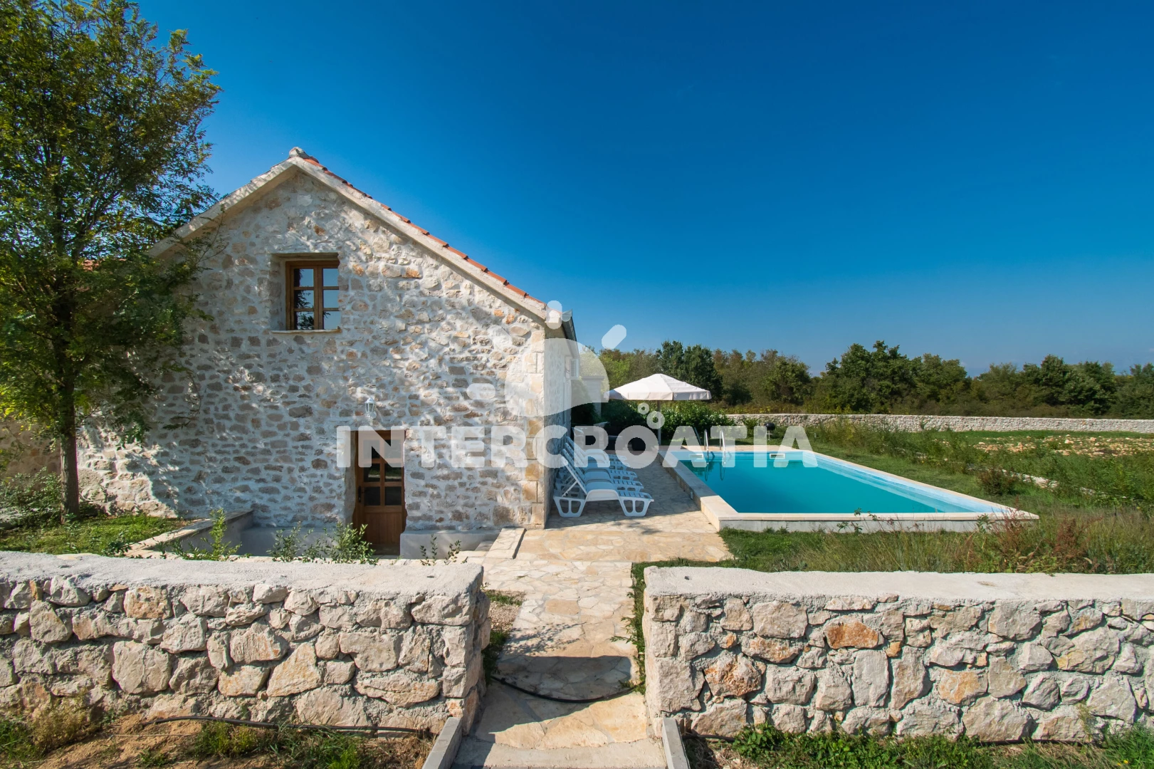 Domek se nachází 11000 m od moře a pláže. Pláž je písčitá a oblázková. Domek disponuje bazénem s lehátky pro ubytované hosty. U objektu je k dispozici společná zahrada s posezením a grilem. Parkování je před domem.