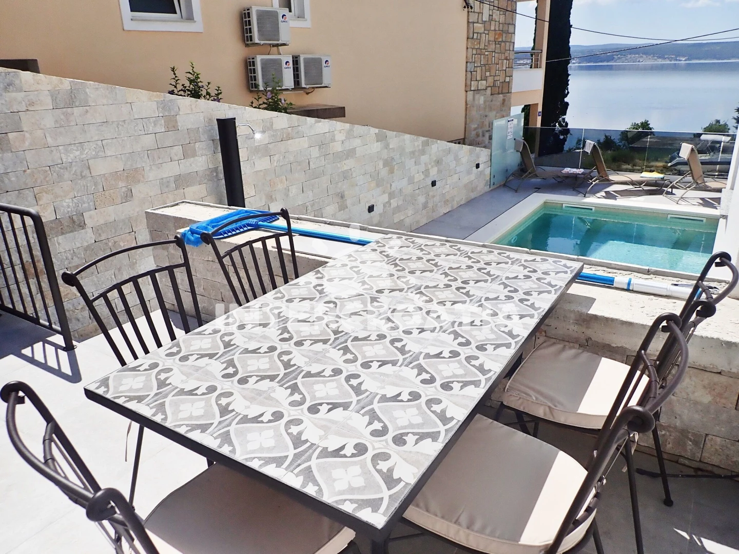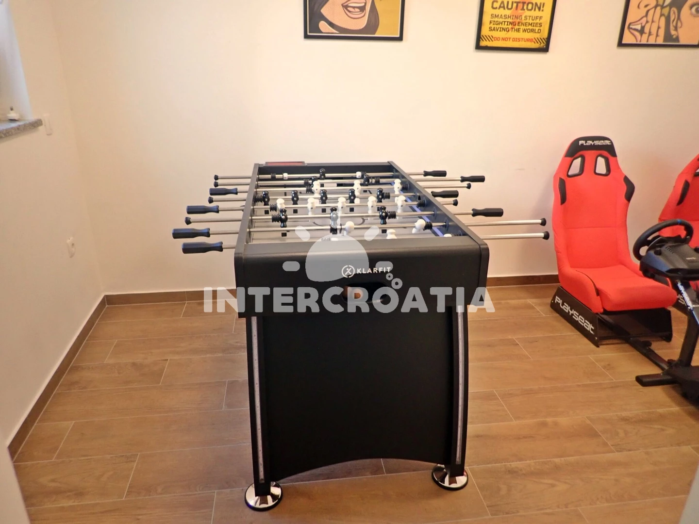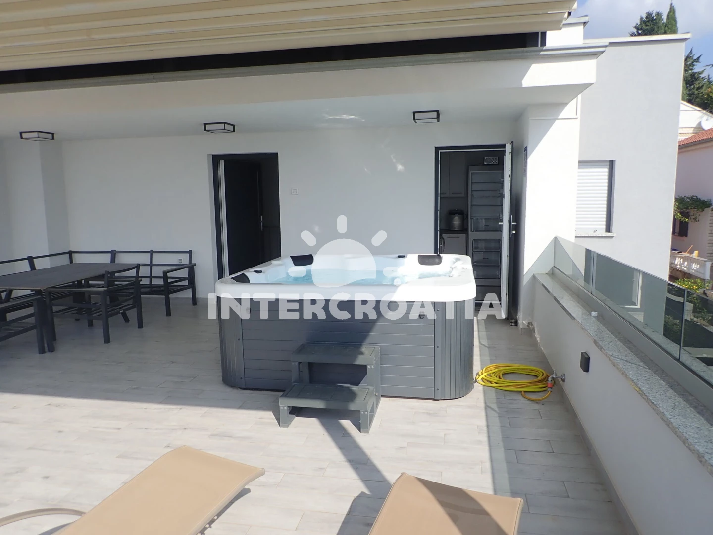 Domek se nachází 100 m od moře a pláže. Pláž je skalnatá a oblázková. Domek disponuje bazénem s lehátky pro ubytované hosty. K dispozici vířivka. U objektu je k dispozici společná zahrada s posezením a grilem. Parkování je před domem.