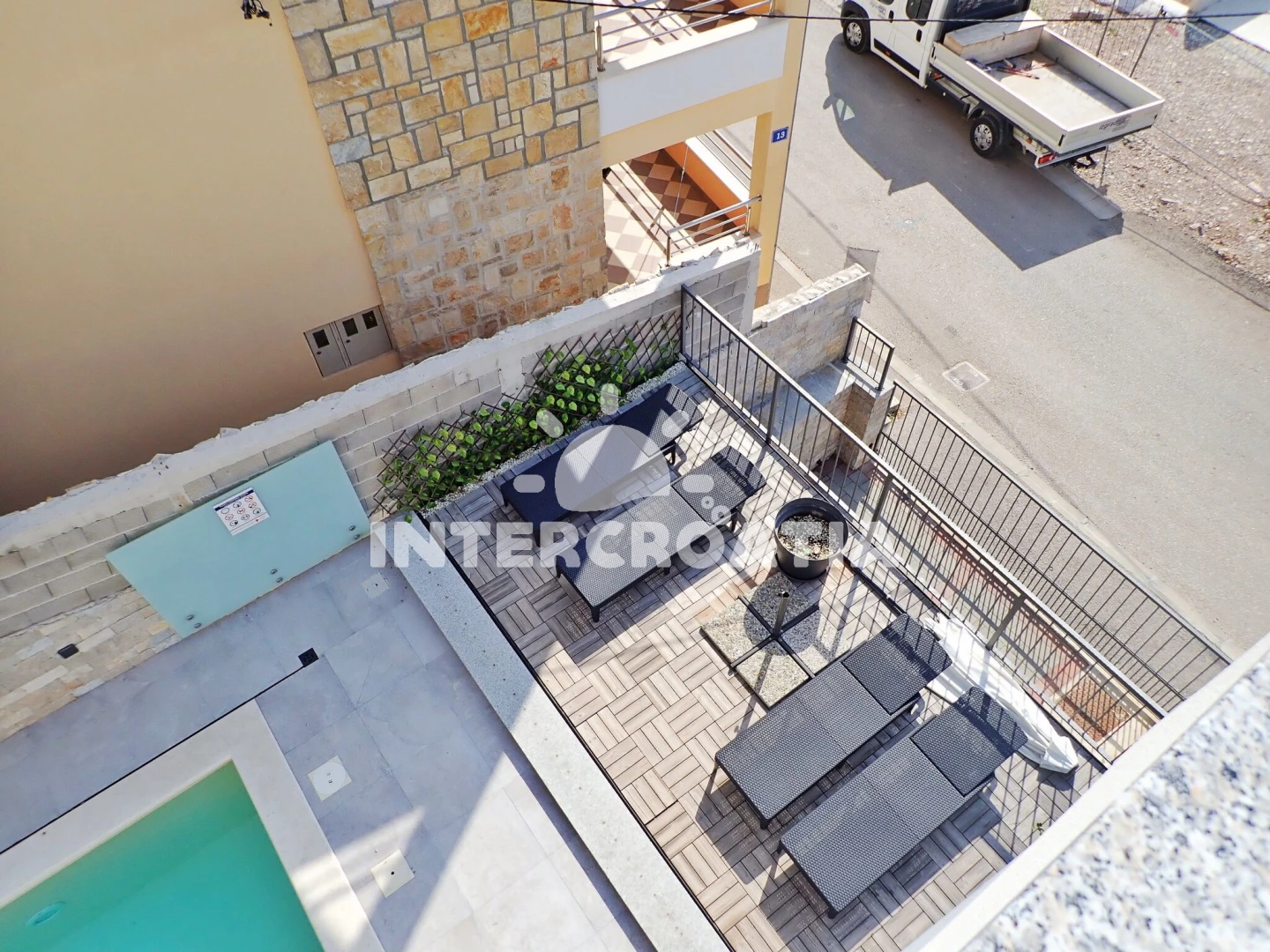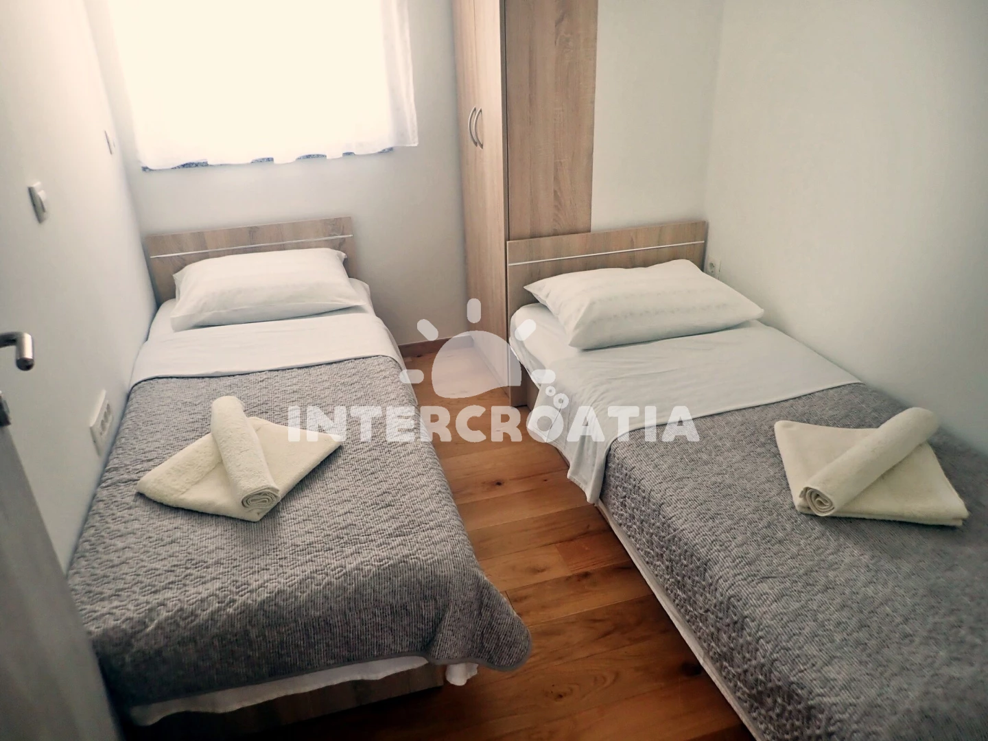Vzdálenosti: Moře 70 m, pláž 100 m (skalnatá a oblázková), supermarket 50 m, bar 350 m, půjčovna motorových člunů 350 m, restaurace 350 m, centrum 350 m, veřejná doprava 700 m, ambulance 800 m, pošta 800 m, lékárna 5 km, diskotéka 5 km, čerpací stanice 7 km, tenisové kurty 10 km, park Plitvice 12 km, směnárna 12 km, letiště (Zadar) 25 km, banka 33 km, trajekt (Zadar) 33 km, potápění 33 km, muzeum 33 km, marina 33 km,