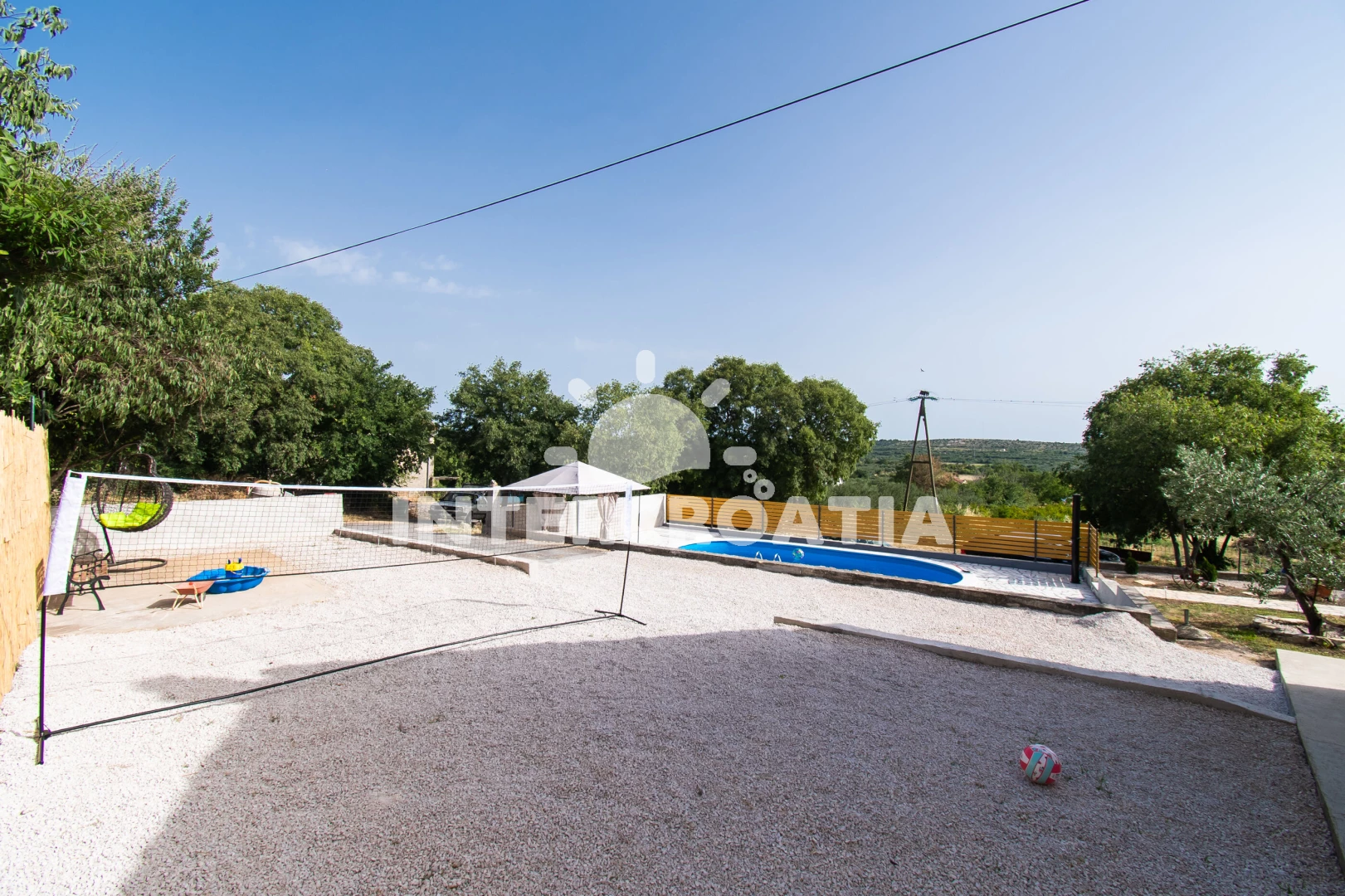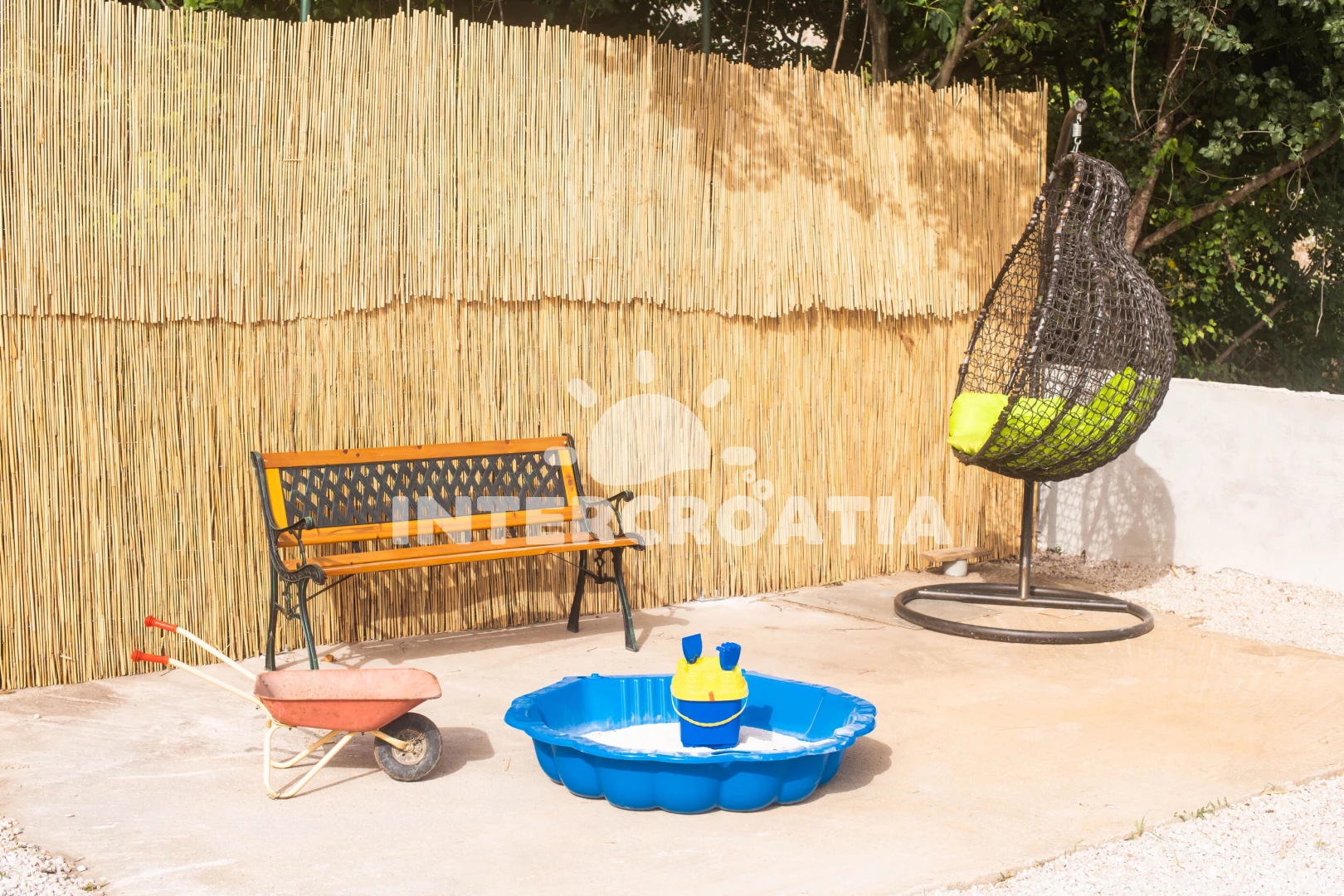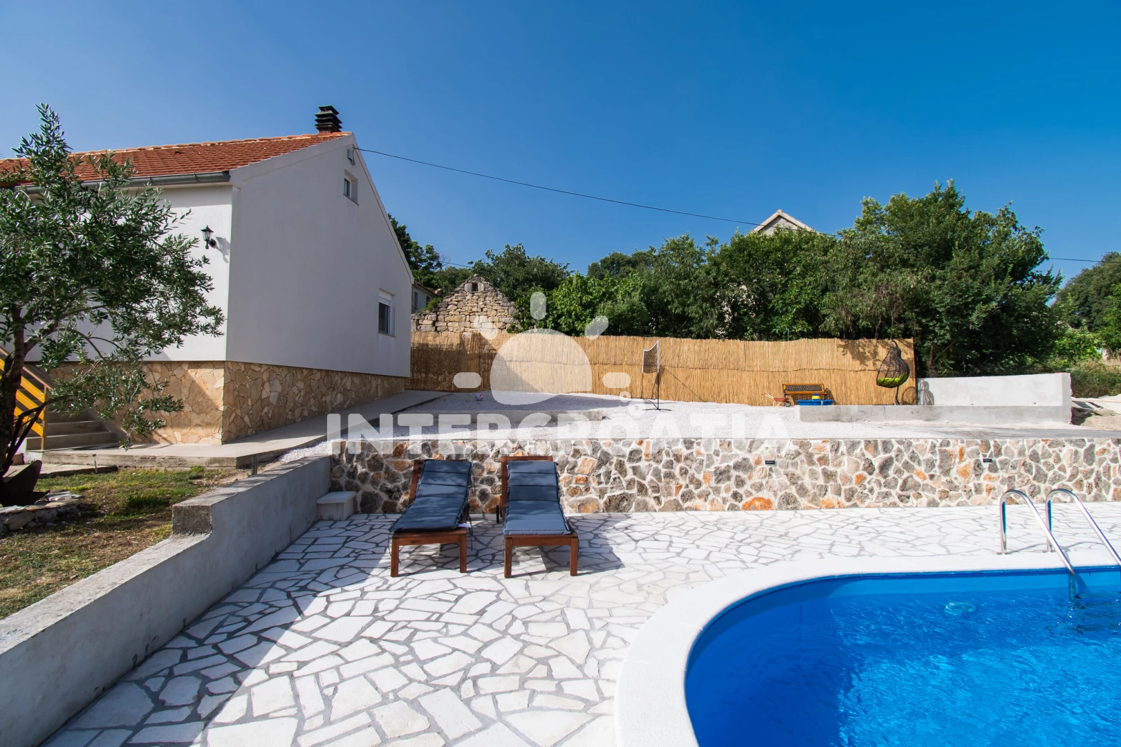 Domek se nachází 10000 m od moře a pláže. Pláž je písčitá, oblázková a skalnatá. Domek disponuje bazénem s lehátky pro ubytované hosty. U objektu je k dispozici společná zahrada s posezením a grilem. Parkování je před domem.