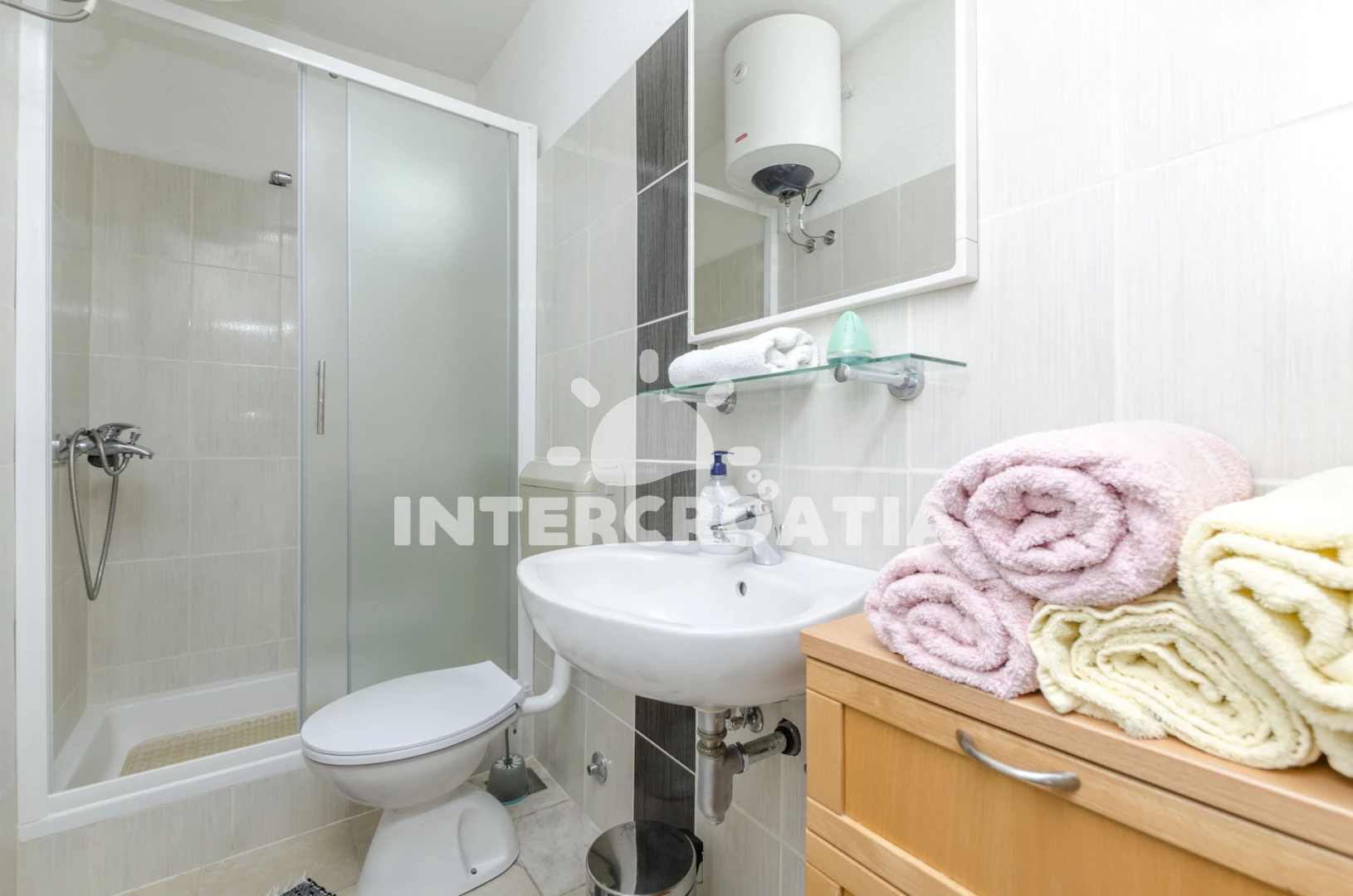 Vzdálenosti: Moře 135 m, pláž 200 m (oblázková a větší kamení), banka 25 m, směnárna 50 m, veřejná doprava 50 m, půjčovna kol 50 m, lékárna 65 m, restaurace 70 m, pošta 75 m, supermarket 90 m, bar 135 m, půjčovna motorových člunů 190 m, tenisové kurty 190 m, čerpací stanice 230 m, centrum 255 m, mini golf 270 m, potápění 560 m, ambulance 1,4 km, diskotéka 1,7 km, marina 2,2 km, letiště (Split) 30 km, park Plitvice 45 km, trajekt (Split) 60 km,